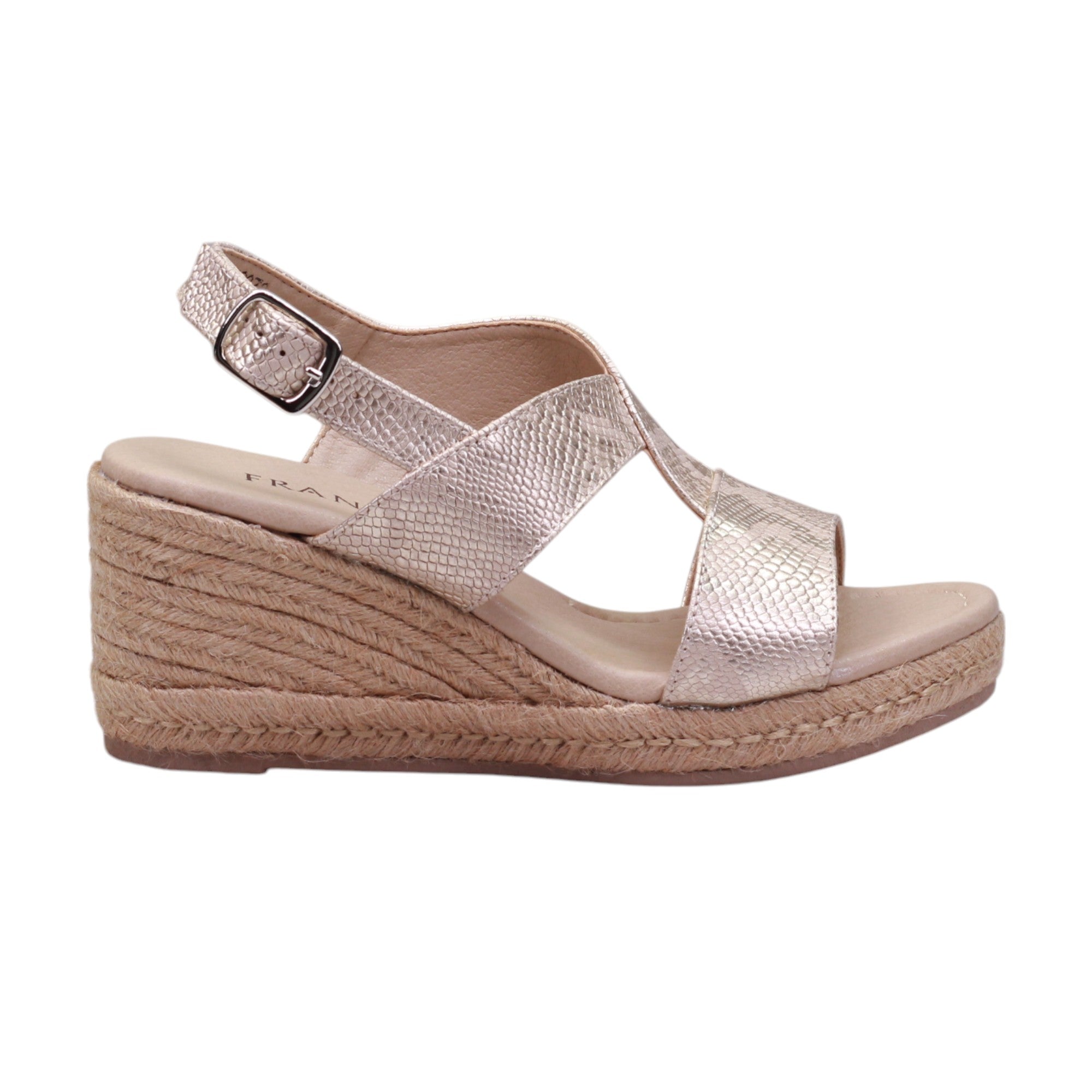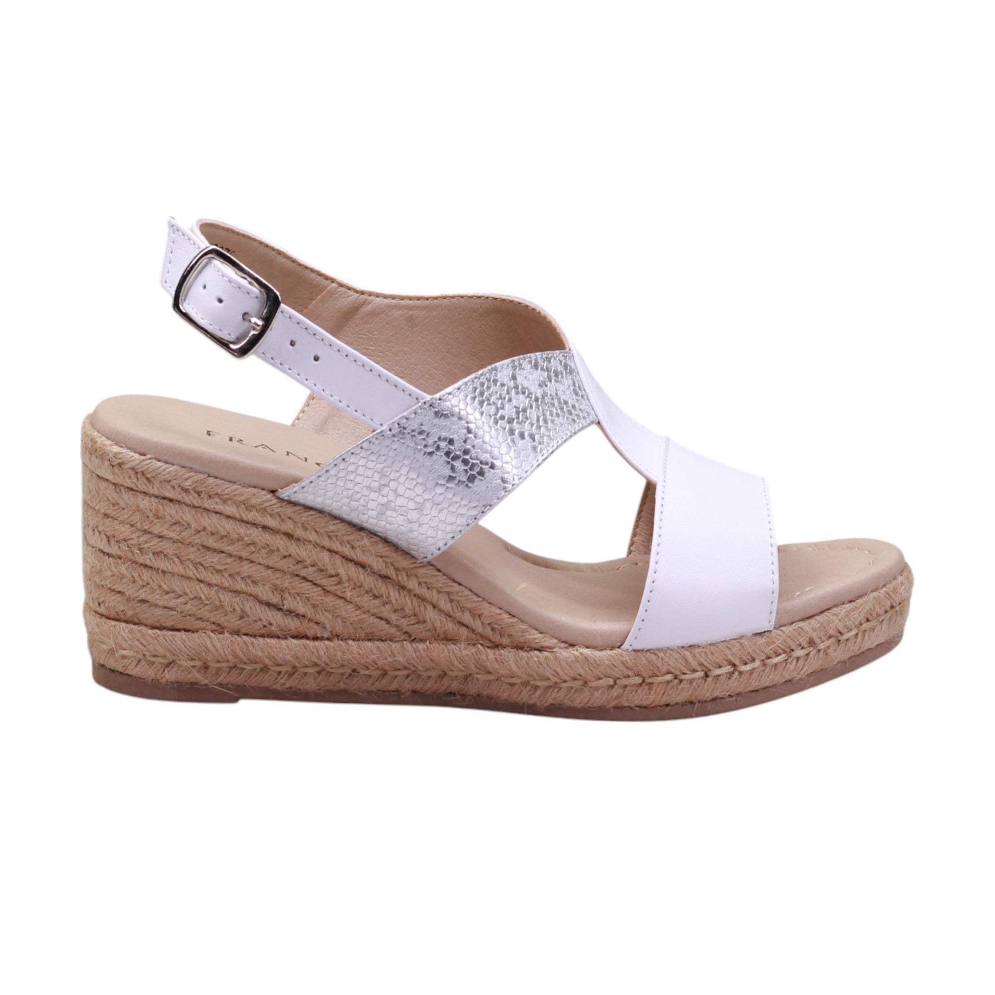 Plataforma para dama marca Francis en colores blanco y oro. Este modelo de zapato cuenta con una tira trasera ajustable con hebilla, lo que garantiza un ajuste perfecto para cualquier pie. Además, su diseño atractivo y moderno de piel artificial con textura de serpiente lo hace único. La plataforma de 7.00 cm proporciona una mayor altura sin sacrificar la comodidad. ¡Ideal para cualquier ocasión!