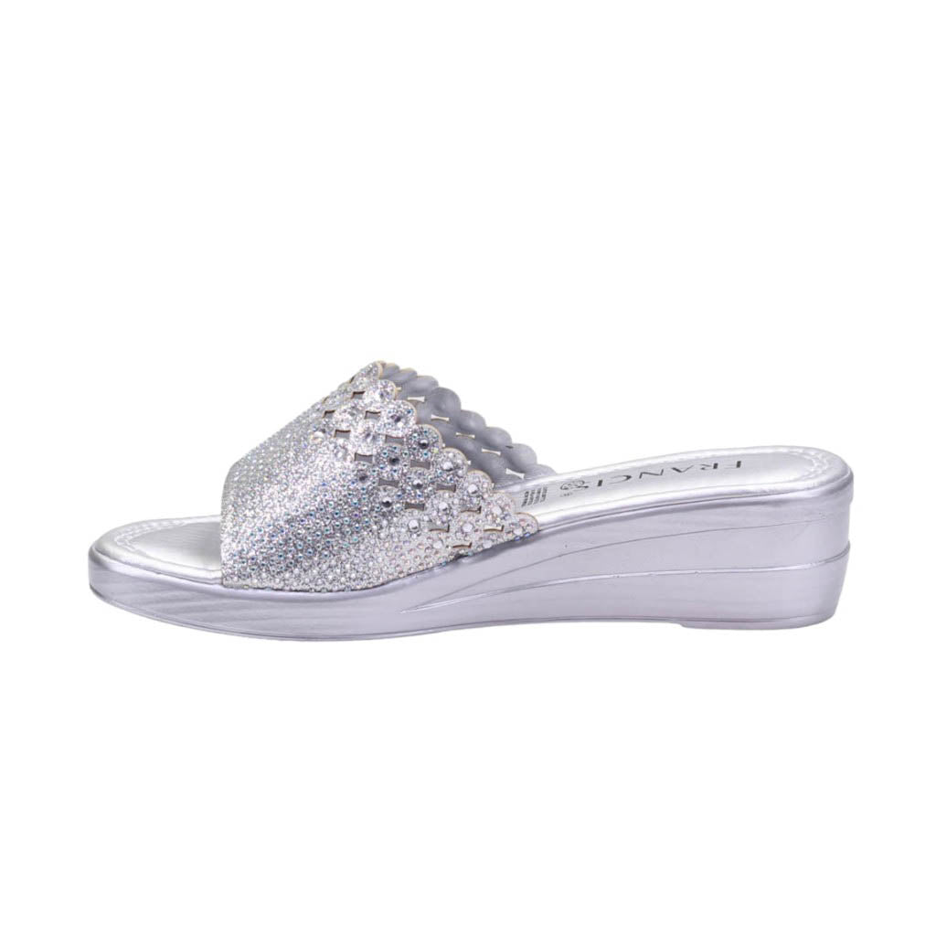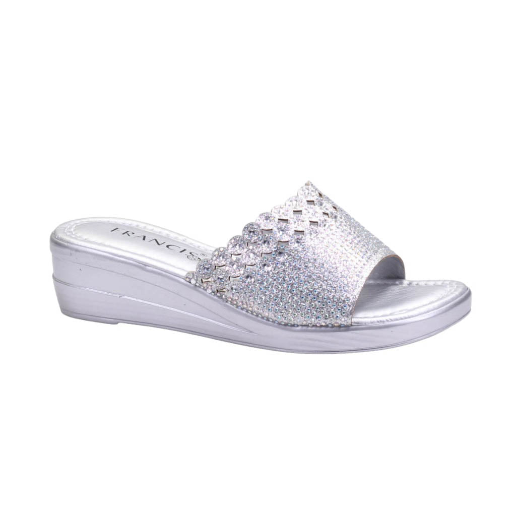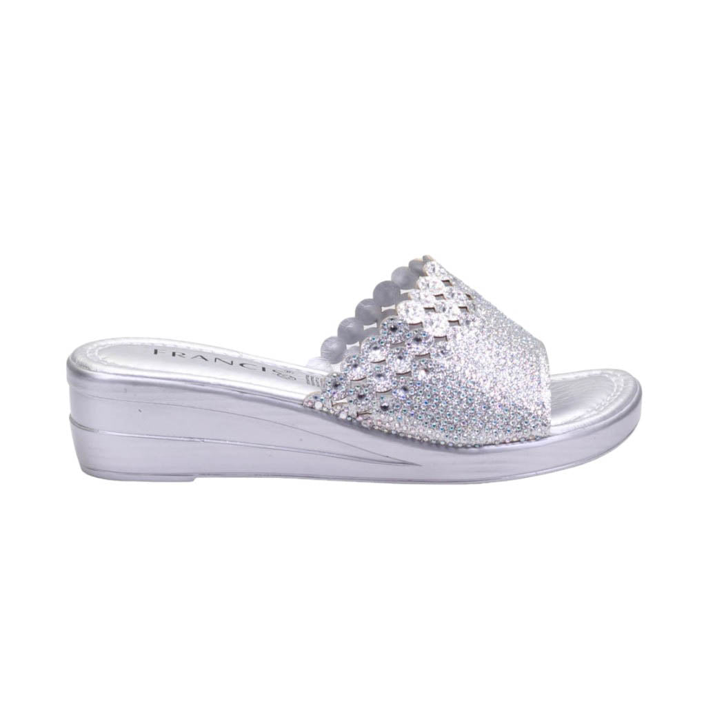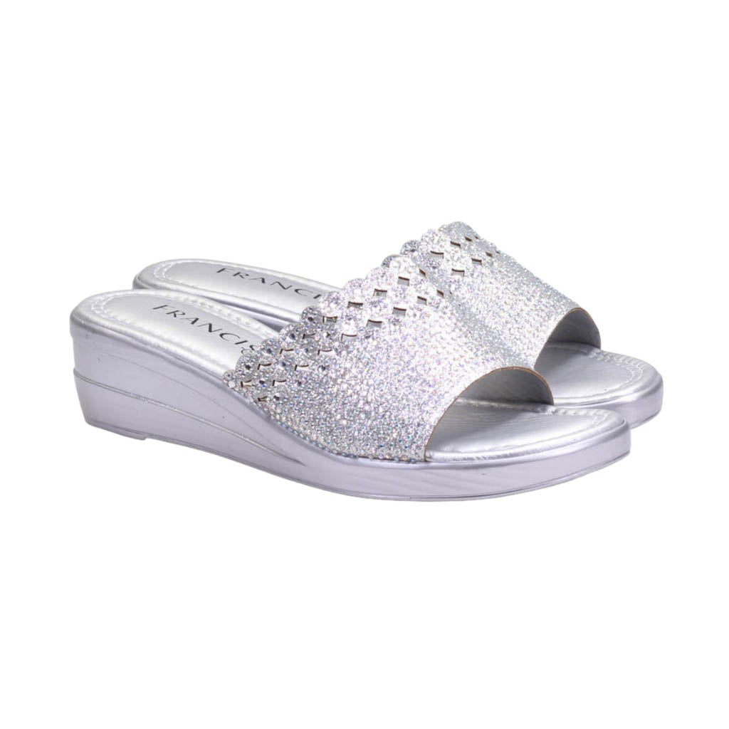 Plataforma para dama marca Francis en color plata. Disfruta de nuestro atractivo modelo de plataforma. Con su altura de 4.00 cm, te brindará comodidad y un toque de altura. El corte con pedrería incrustada le da un toque de glamour y sofisticación a tus pies. ¡Atrévete a lucir increíble con este calzado único!