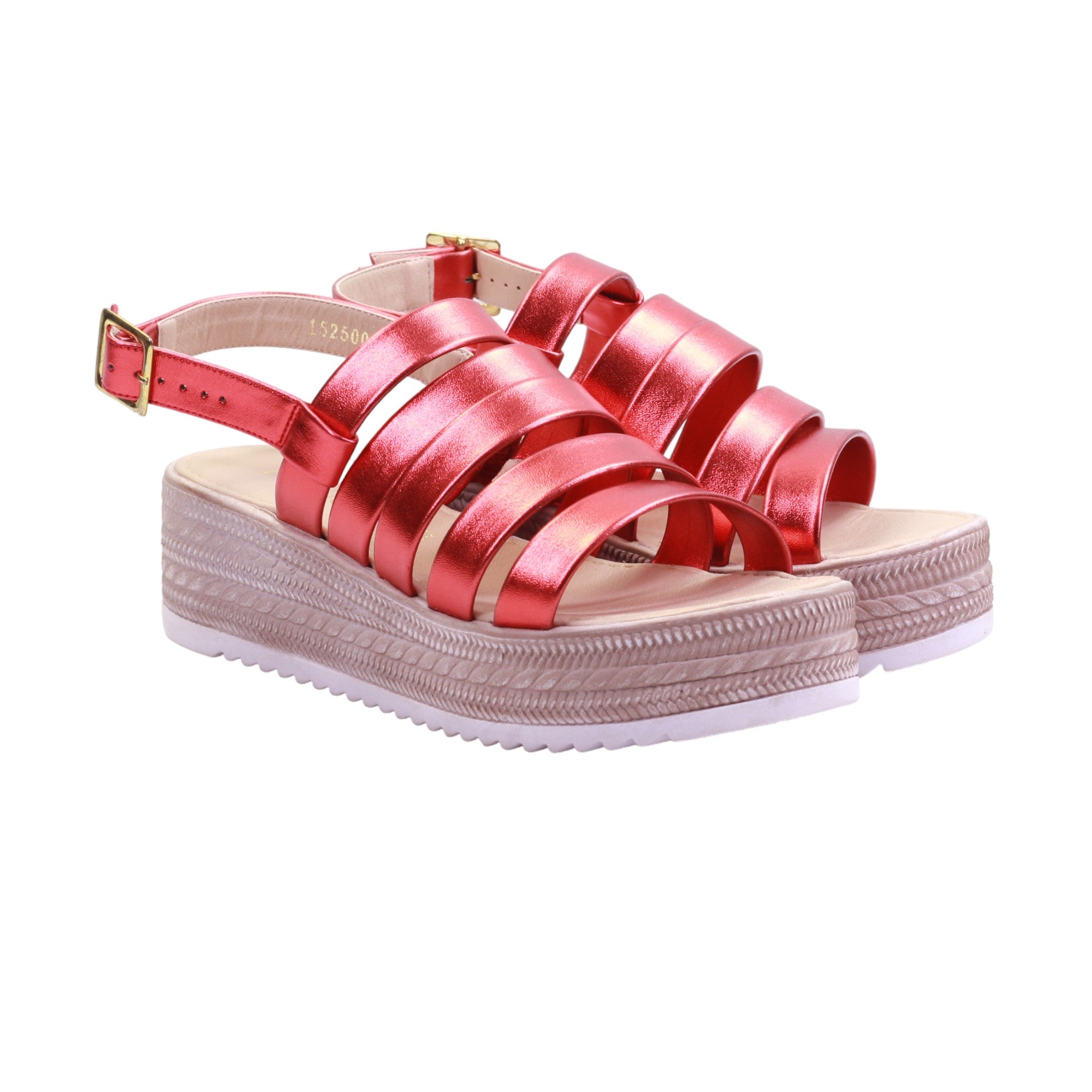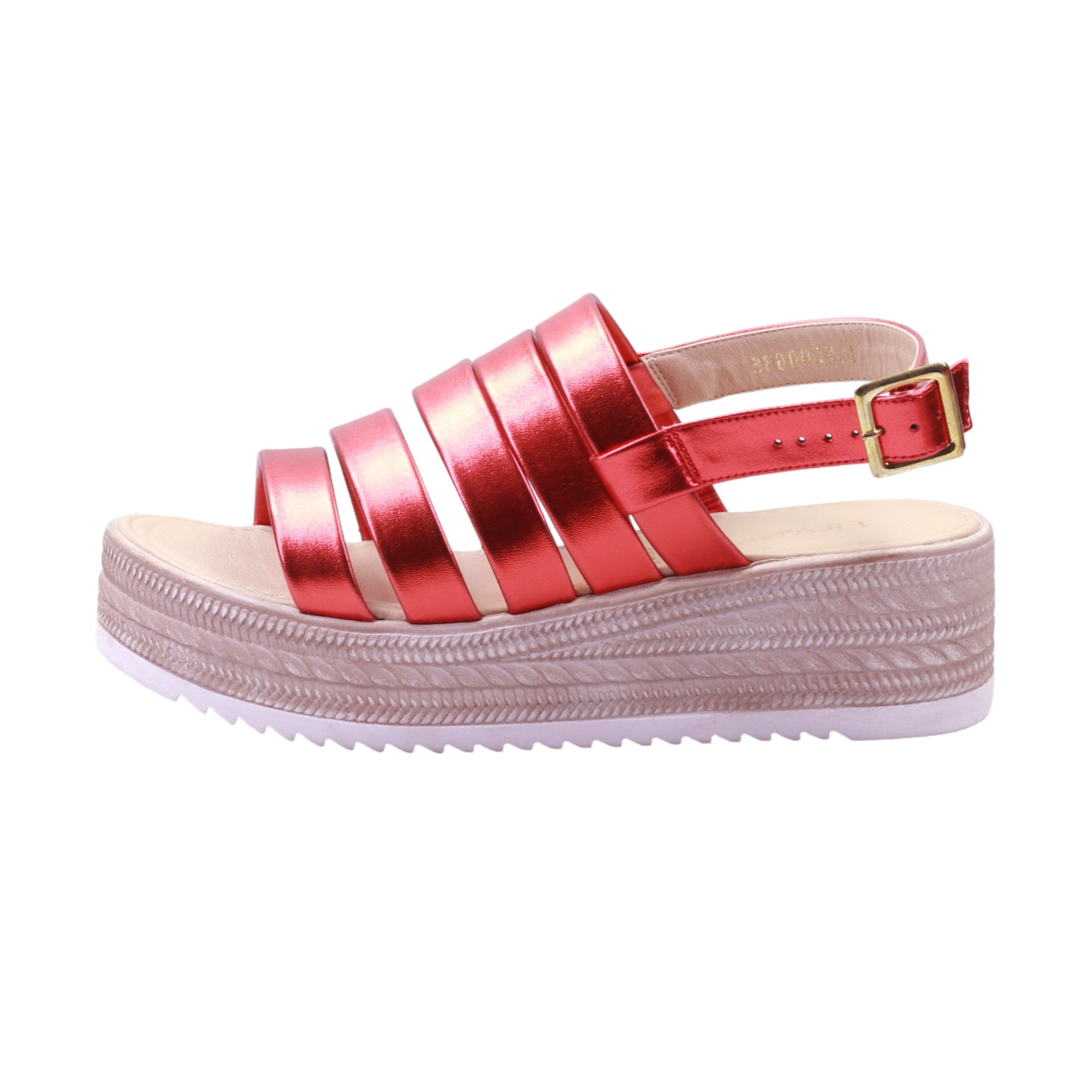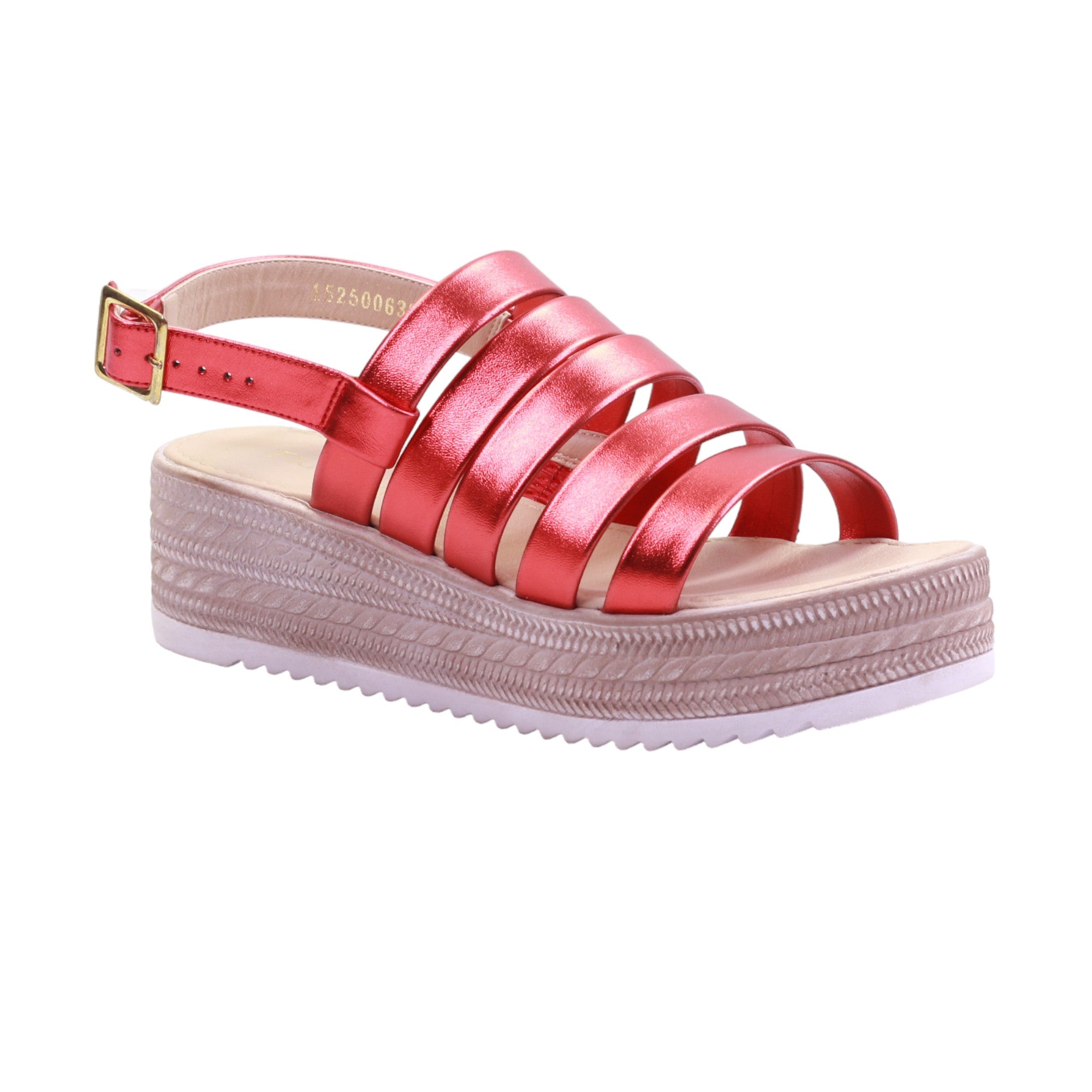 Sandalia con plataforma para dama marca Francis en colores blanco, elemental y escarlata. Este zapato de diseño exclusivo tiene una altura de 4.5 cm para mayor comodidad y una plataforma con diseño en tejido de alta calidad. La plantilla de confort brinda un ajuste perfecto y se ajusta fácilmente con la hebilla trasera. Con 5 tiras de sujeción, ofrecen un soporte seguro para caminar con confianza.