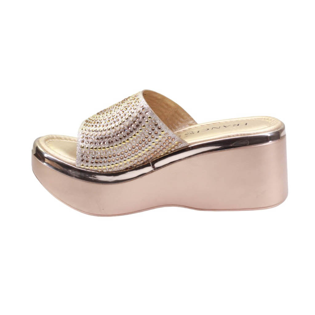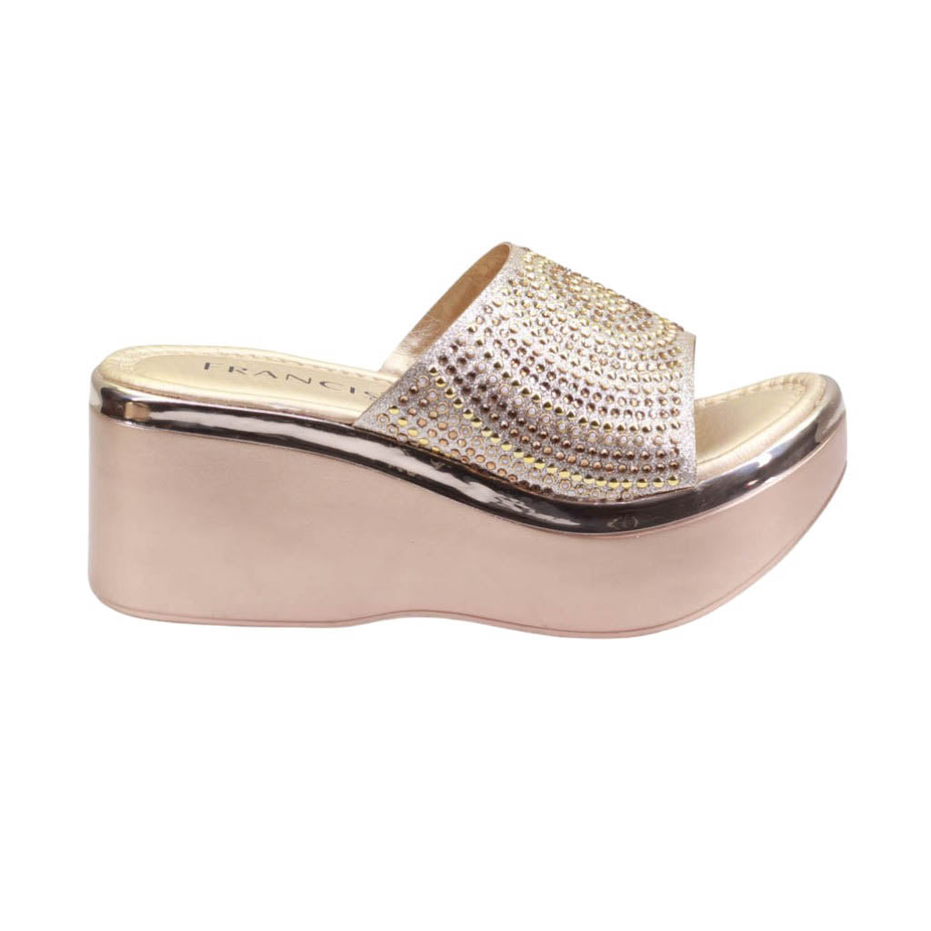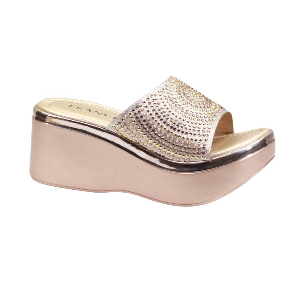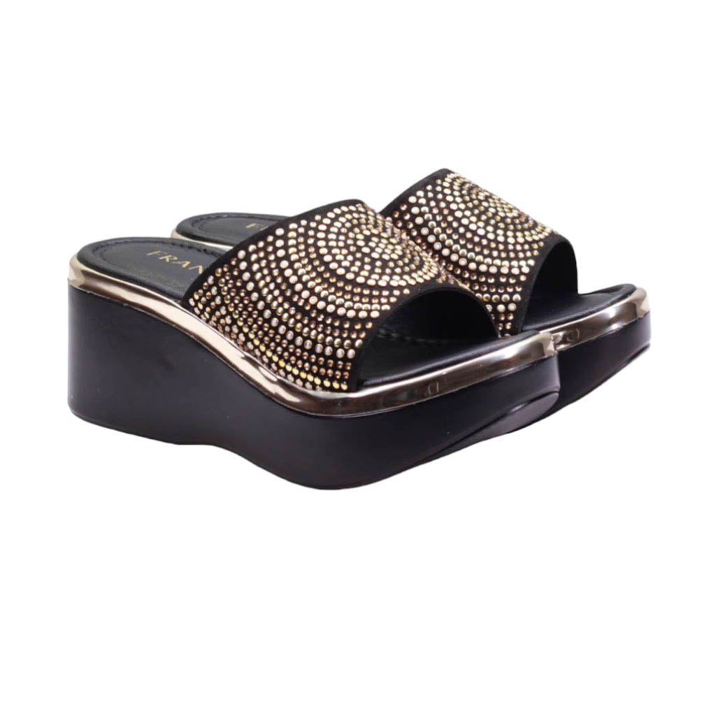 Plataforma para dama marca Francis en colores negro y oro. Bonito diseño con pedrería, este modelo se destaca por sus atractivas y llamativas piedras.