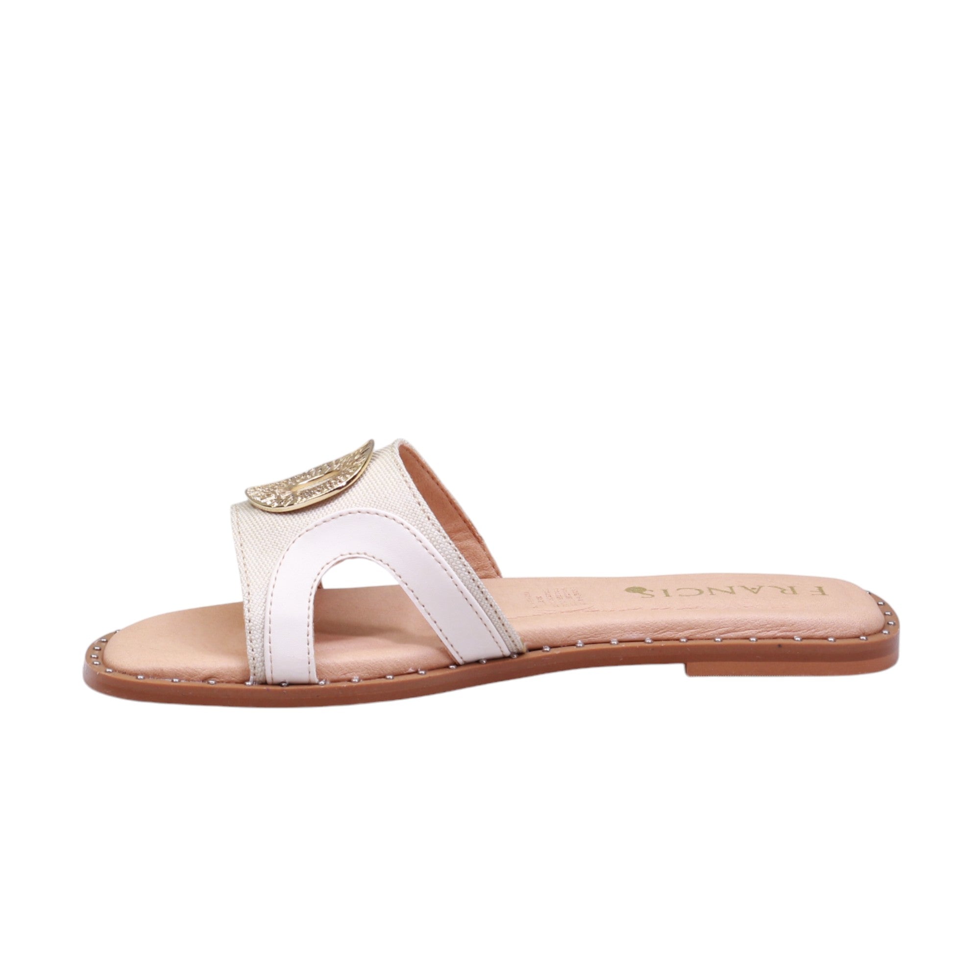 Sandalia para dama marca Francis en colores late y negro. Con un elegante modelo de terminado en piel lisa y grabado, esta sandalia cuenta con adorno en el corte y una suela adornada con estoperoles para un toque de estilo adicional. Además, su plantilla cómoda ofrece un ajuste y soporte óptimo para todo el día. Perfecto para un look sofisticado y confortable.