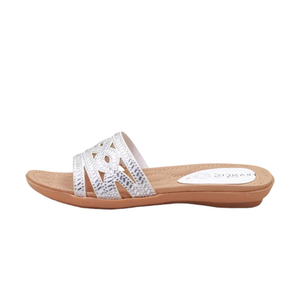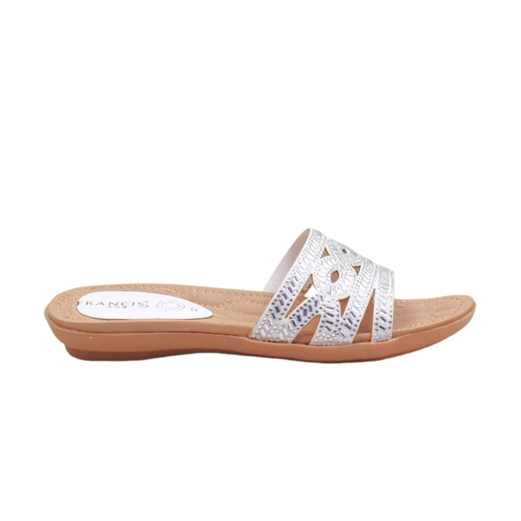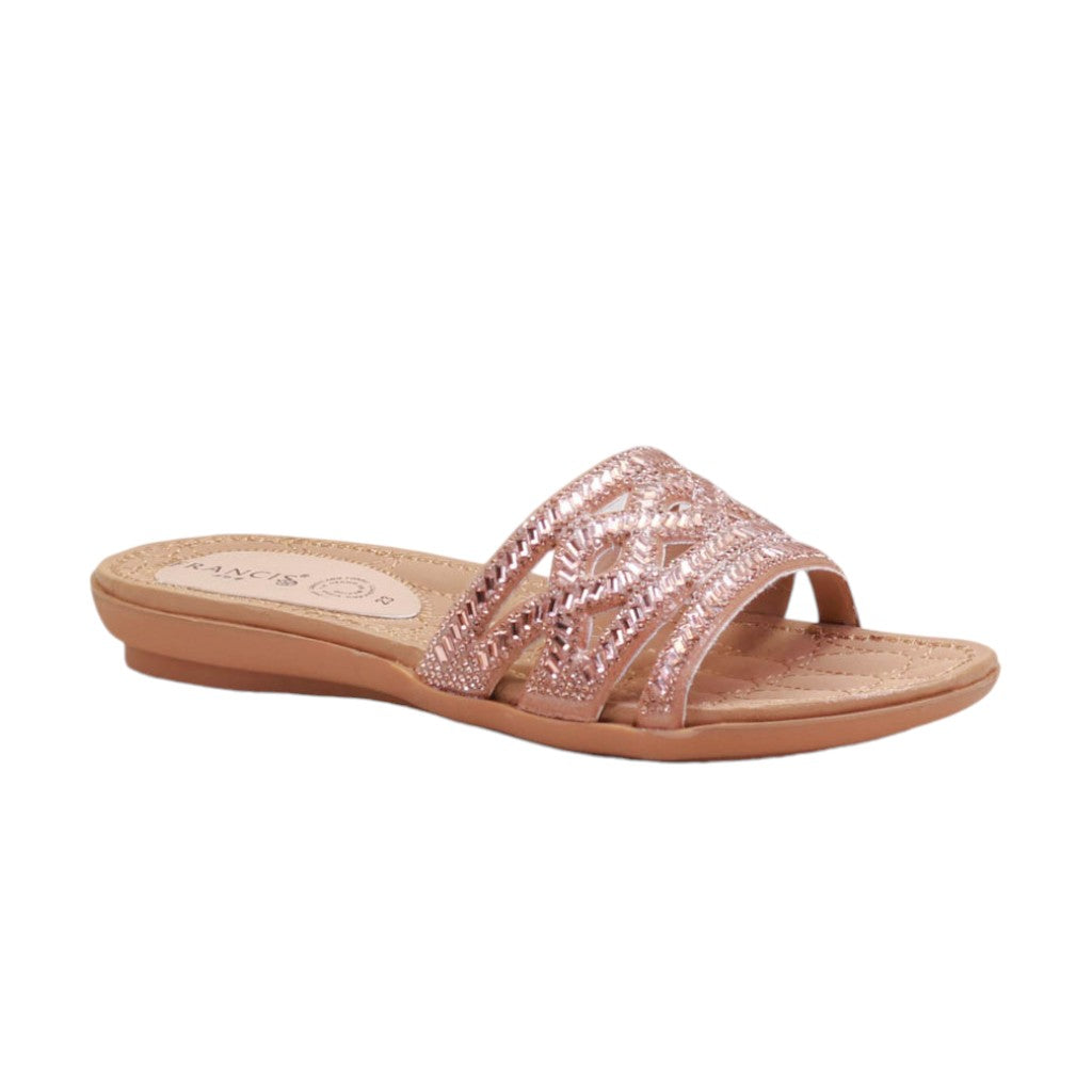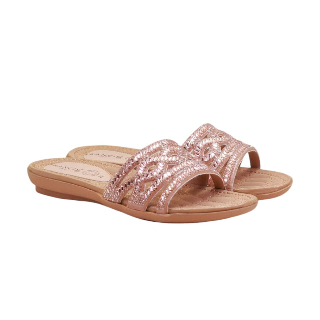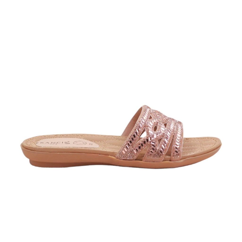 Sandalia para dama marca Francis en colores oro rosado y plata. Este modelo cuenta con una plantilla de confort para brindar una sensación acolchada en cada paso. El corte de estas zapatillas incluye pedrería incrustada para añadir un toque de elegancia. La suela ligera permite un uso cómodo para estar en casa o para simples caminatas.