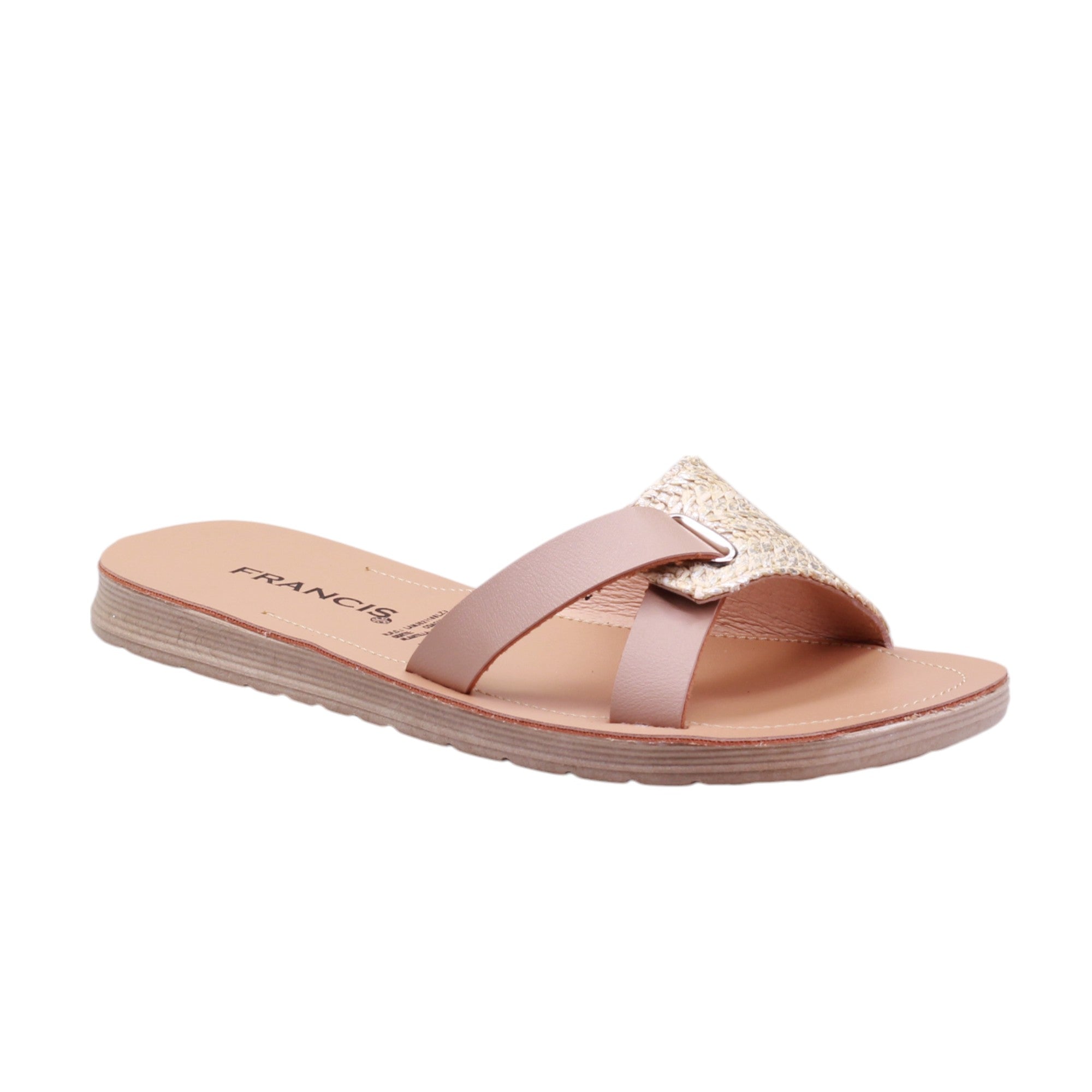 Sandalia para dama marca Francis en color nuty. Con este modelo de suela corrida de 1.5 cm de altura, corte en tiras y tejido, disfruta de paseos cómodos y relajantes, ya sea en la calle o en casa. ¡Siente la suavidad y frescura en tus pies con este modelo perfecto para caminar!