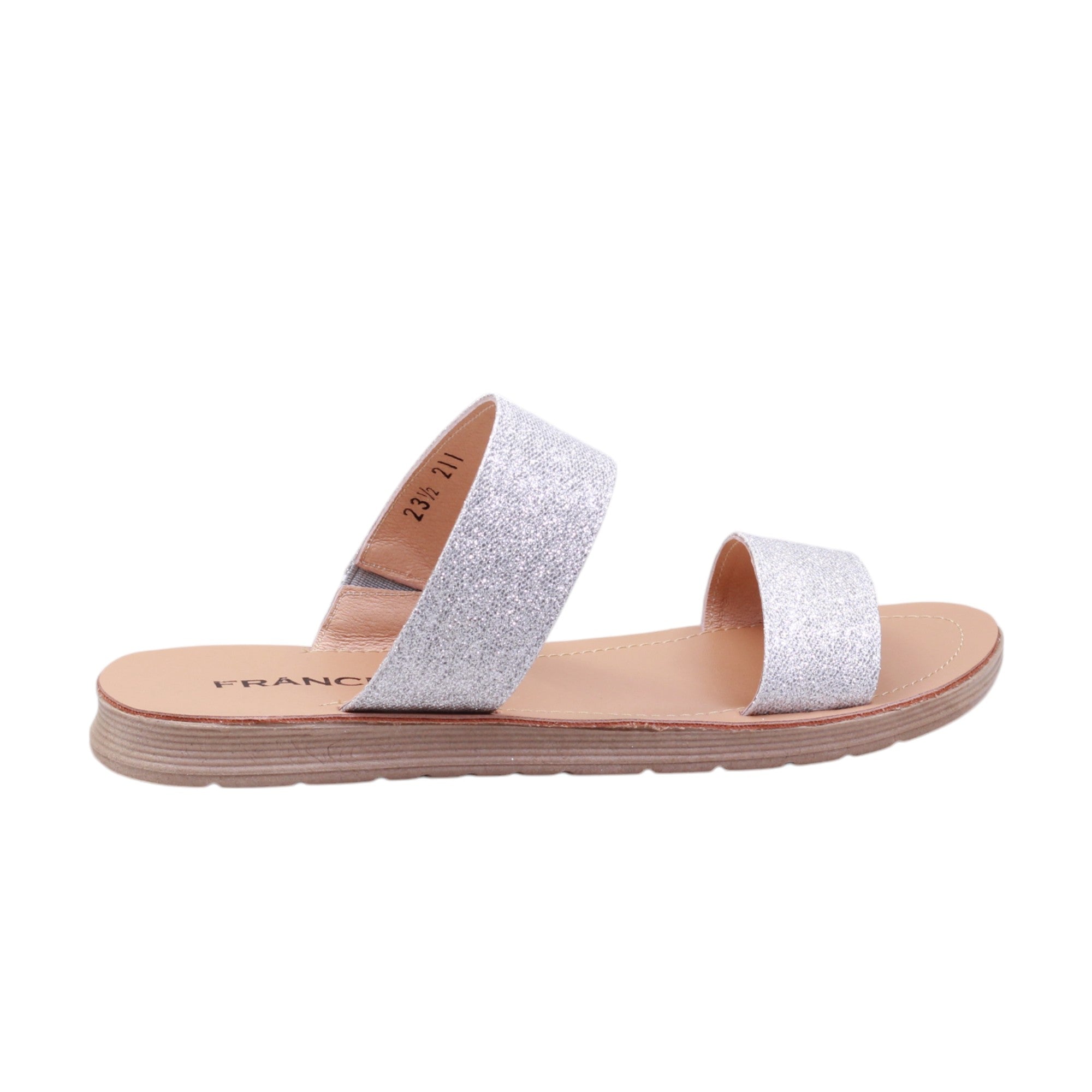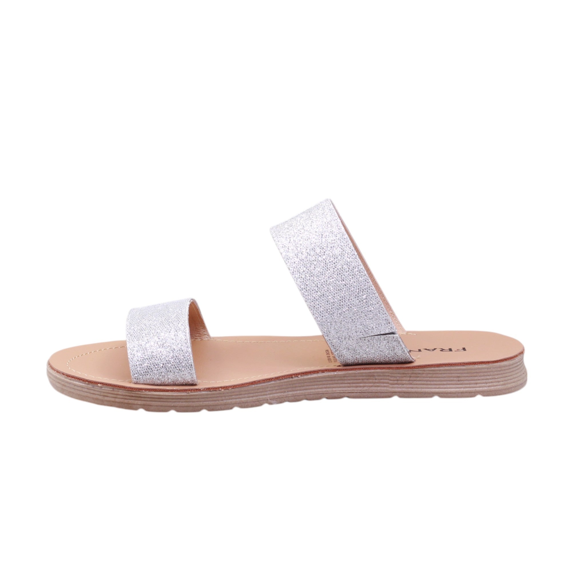 Sandalia para dama marca Francis en colores mercurio y plata. Este modelo cuenta con una suela corrida de 1.5 cm y doble tiras anchas, lo que lo hace ideal para su uso en casa o para caminatas. Brinda comodidad y soporte durante todo el día, mientras que su diseño versátil permite llevarlo en diferentes ocasiones.
