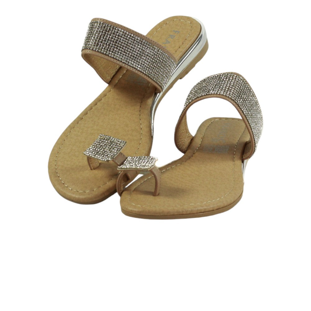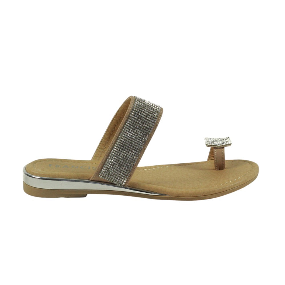 Zapatilla para dama marca Francis. Sandalia de descanso con estampado en pedreria. esta sandalia destaca por su plantilla de confort y su atractiva vista.