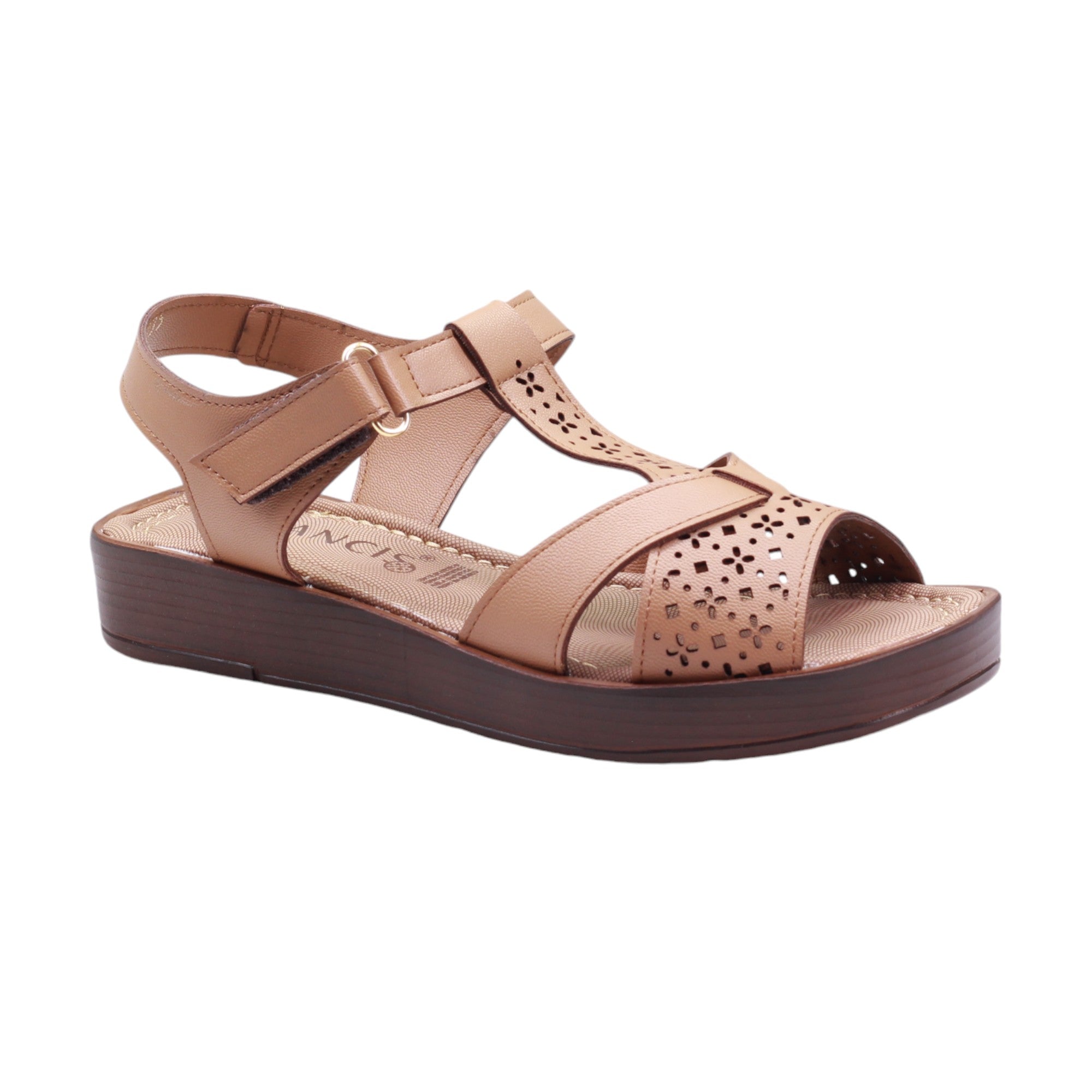 Sandalia para dama marca Francis en color avellana. Modelo con altura en la plataforma de 2.5 cm, ajuste con velcro y corte con perforaciones. Aumenta tu altura, asegura un ajuste cómodo y mantente fresco durante todo el día con nuestro modelo de plataforma. Hecho para el máximo confort y estilo.