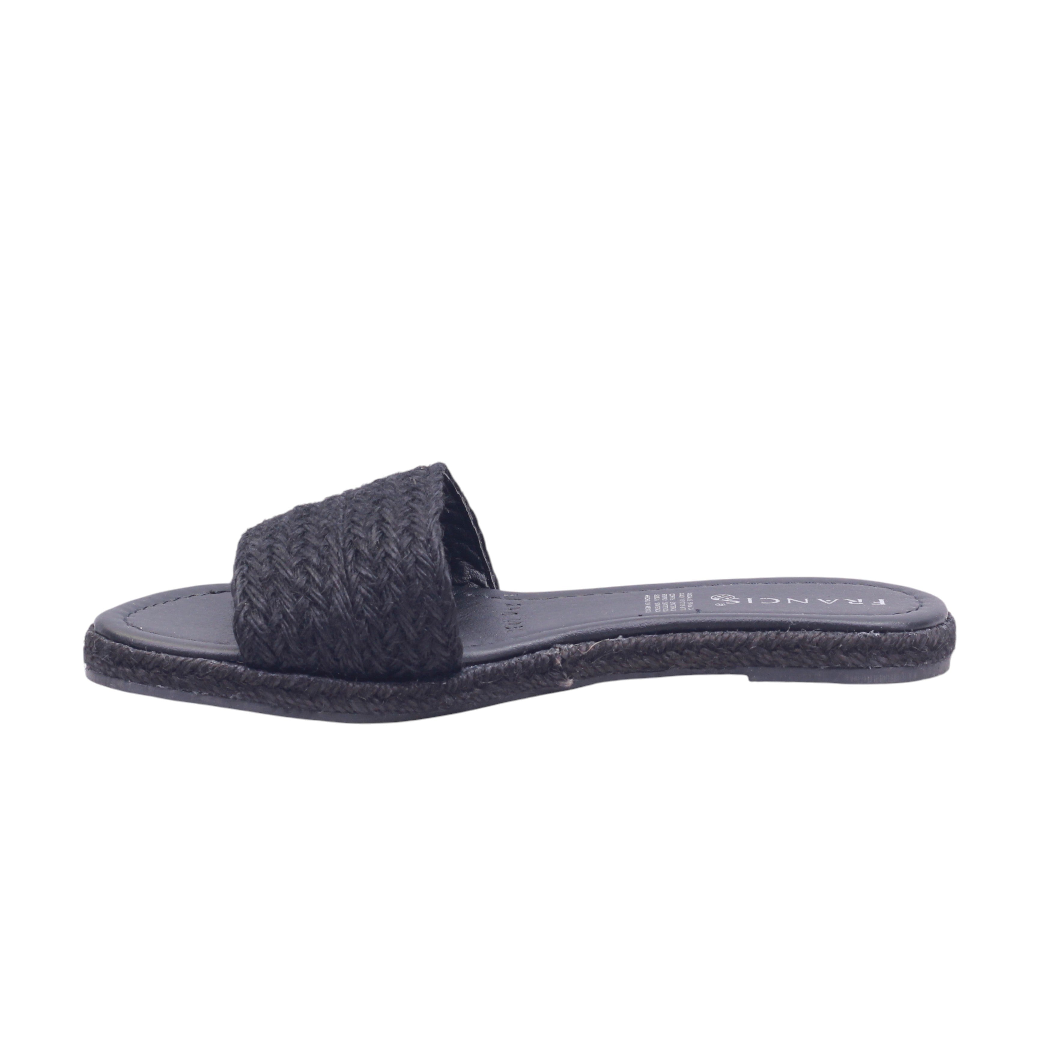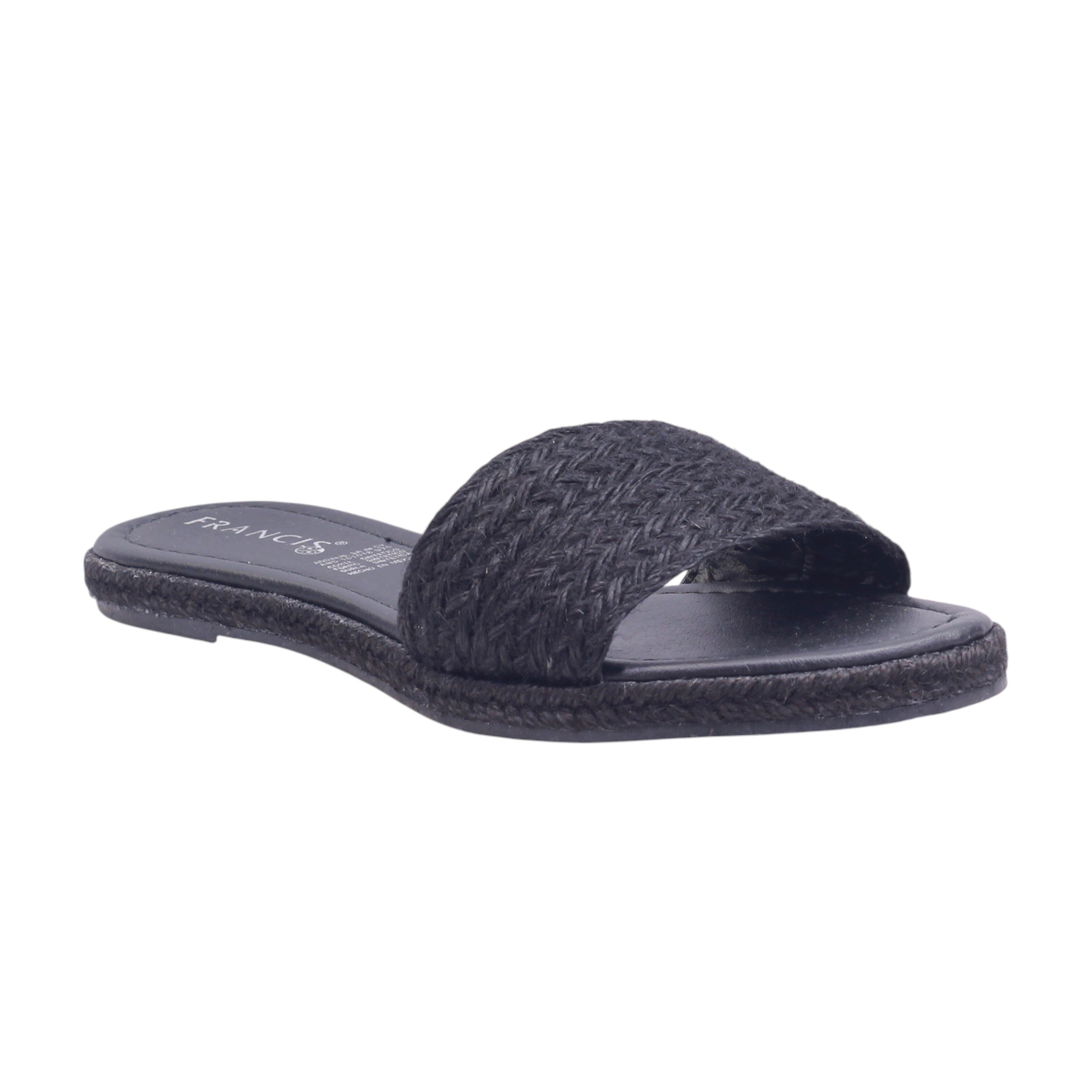 Sandalia para dama marca Francis en color maquillaje y negro. Sandalia de descanso con corte trenzado. Esta sandalia destaca por su plantilla acojinada y su atractiva vista.