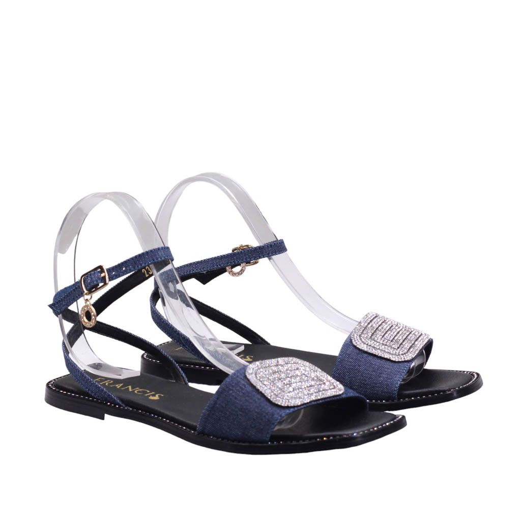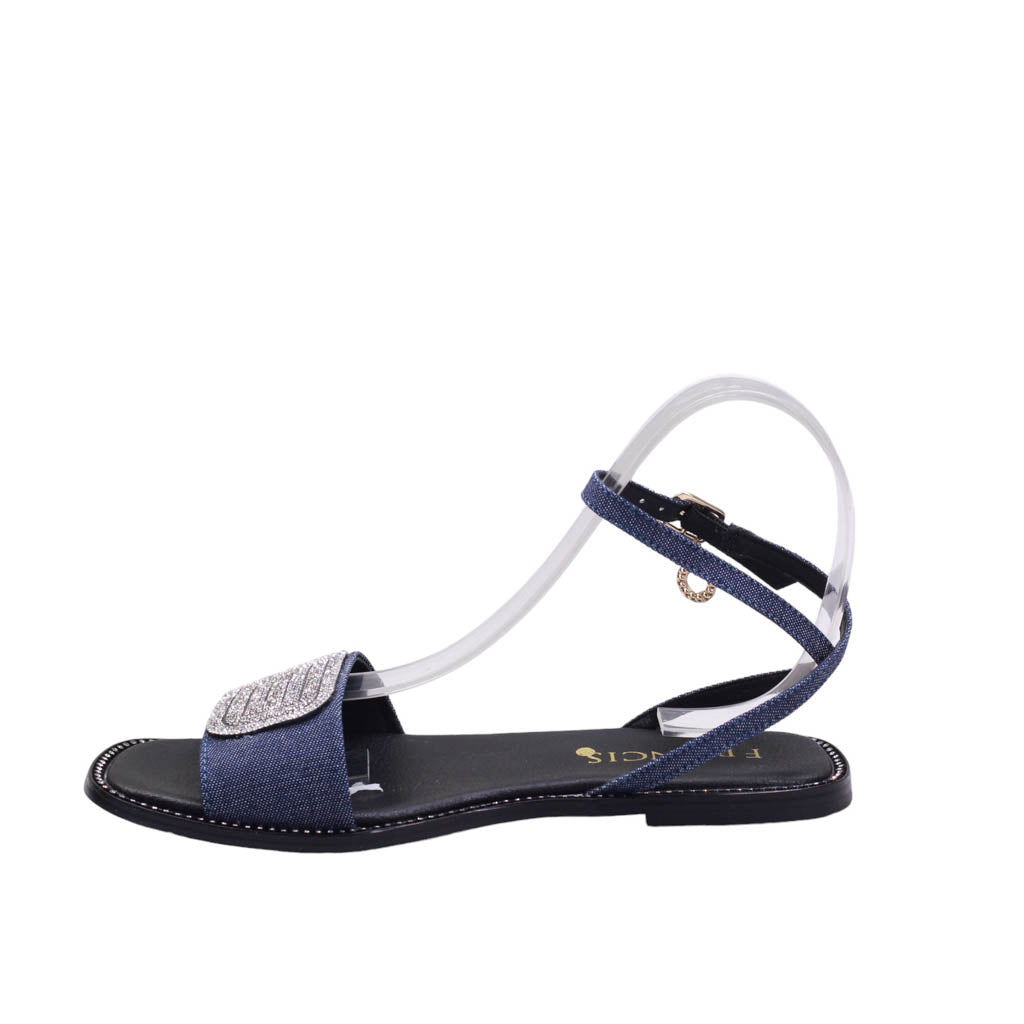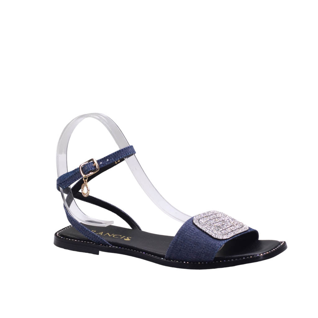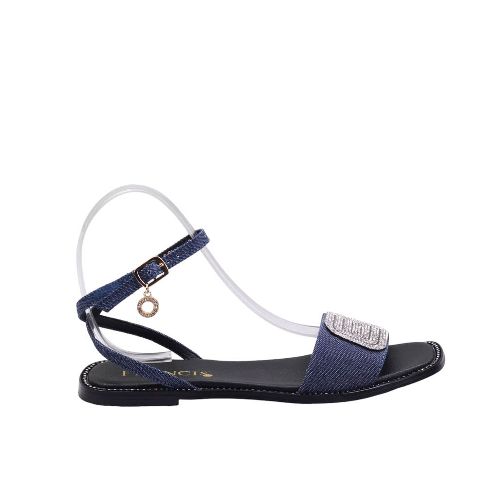 Sandalia para dama baja con ajuste al talón y adorno frontal