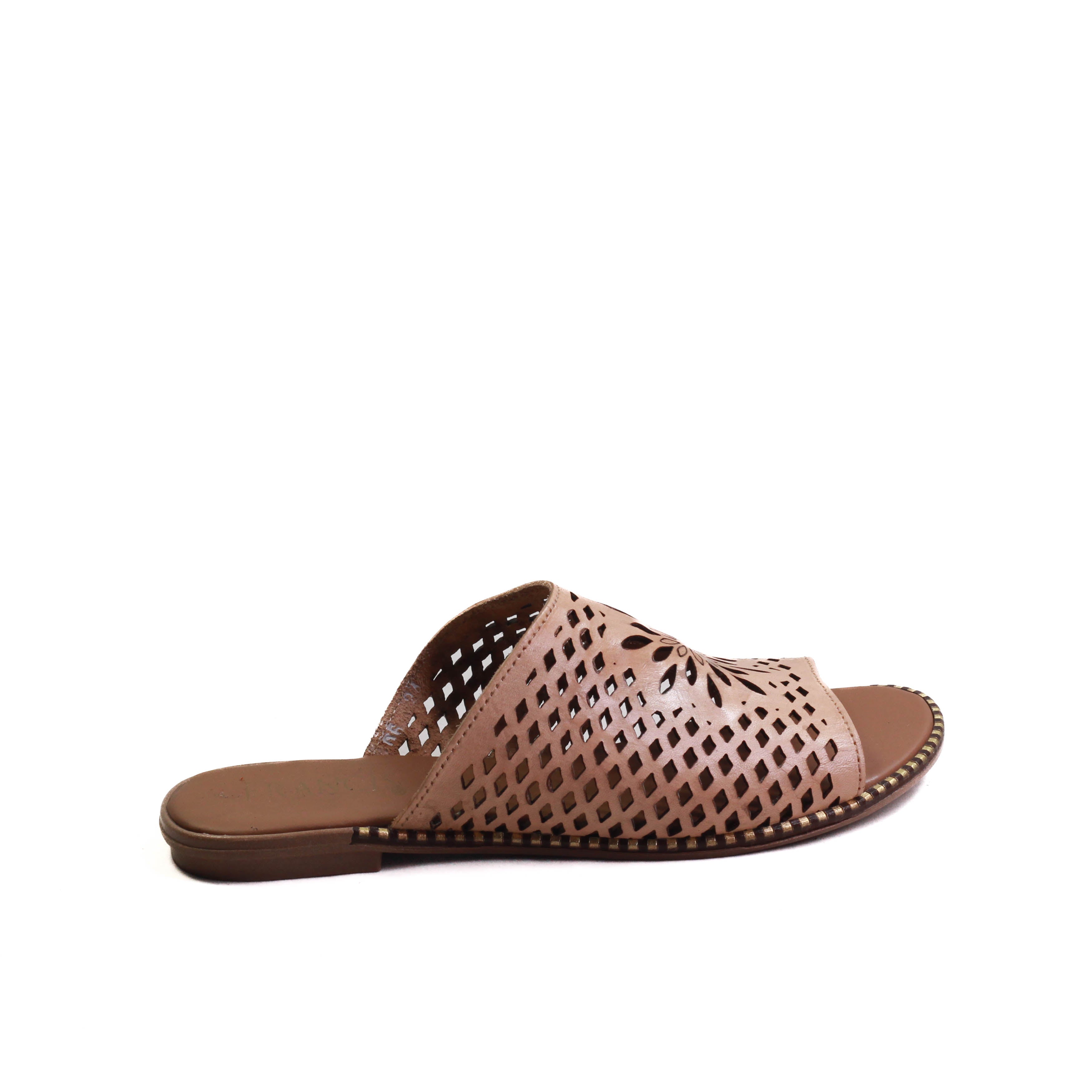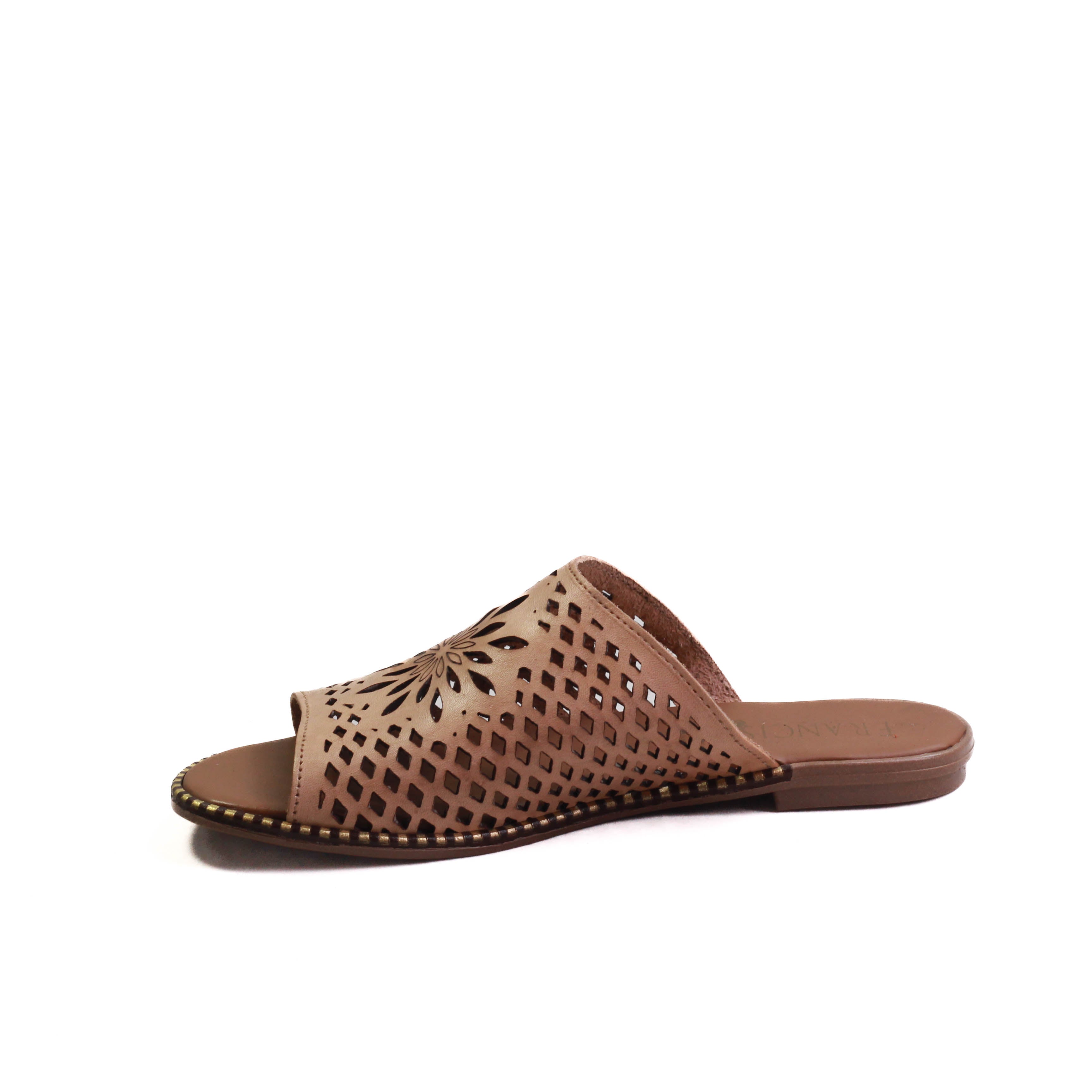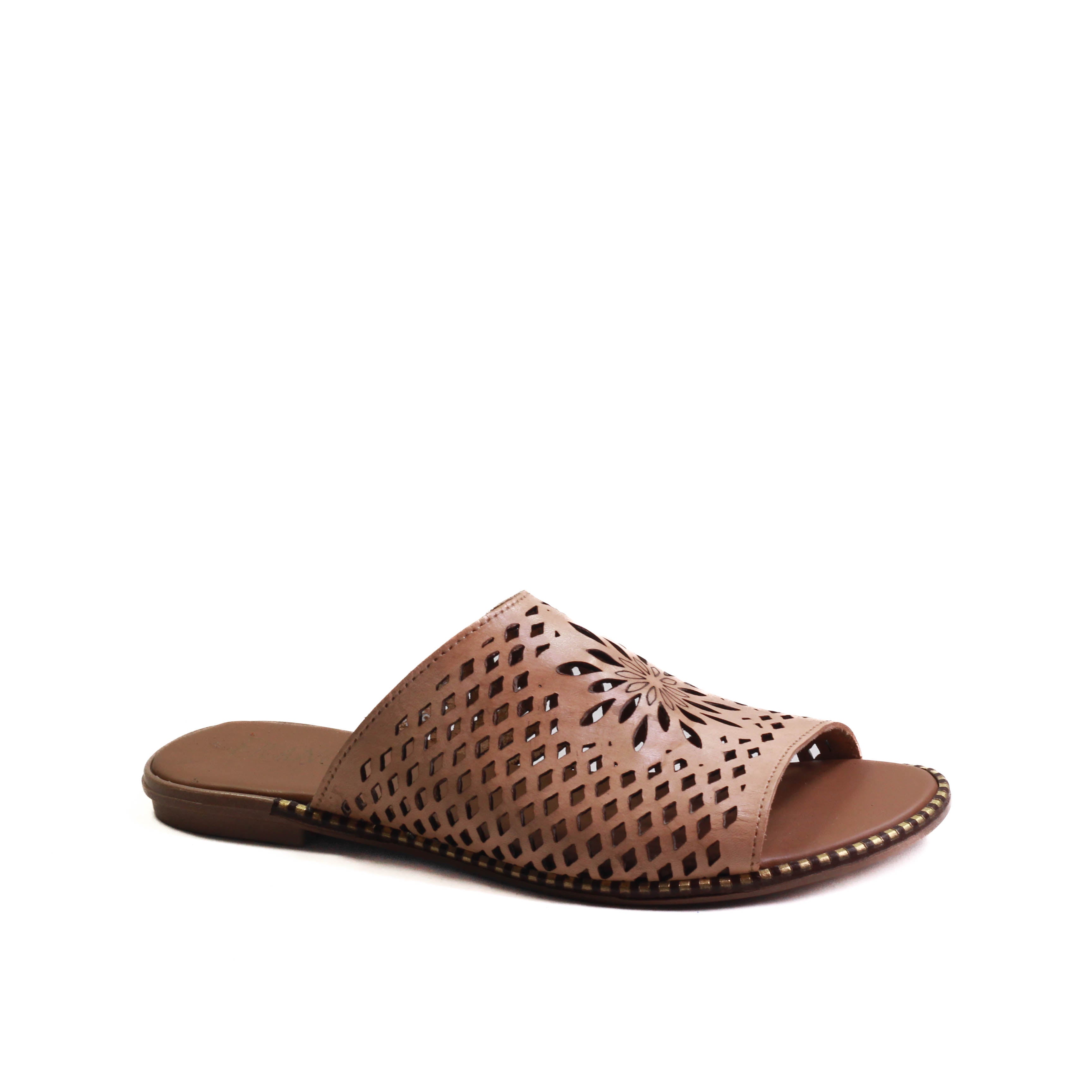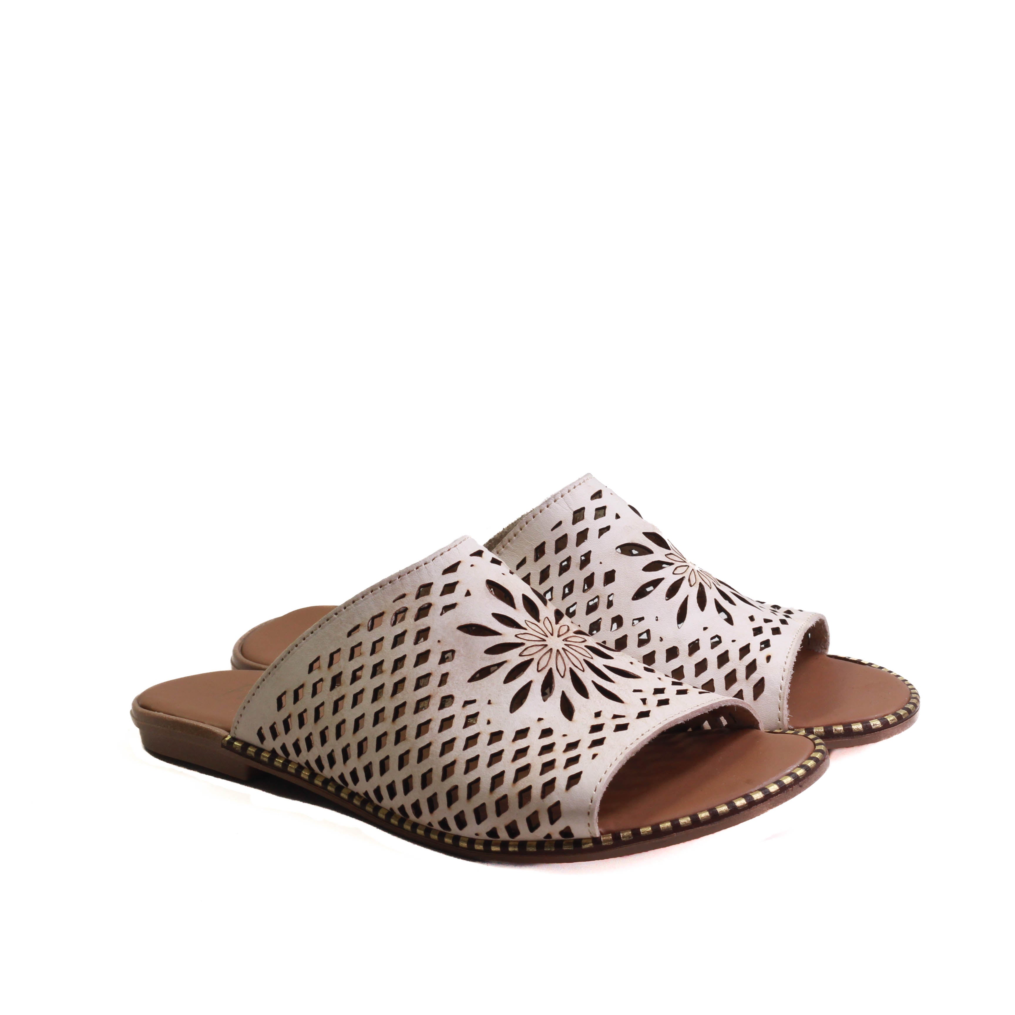 Sandalia para dama marca Francis en colores blanco y tan. Es una sandalia 100% de cuero con diseño en perforaciones en el corte con una flor en la parte media, cuenta con plantilla confortable para que tus caminatas sean agradables paso a paso.