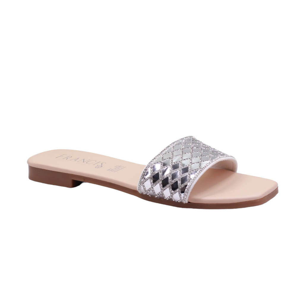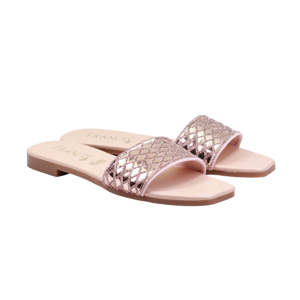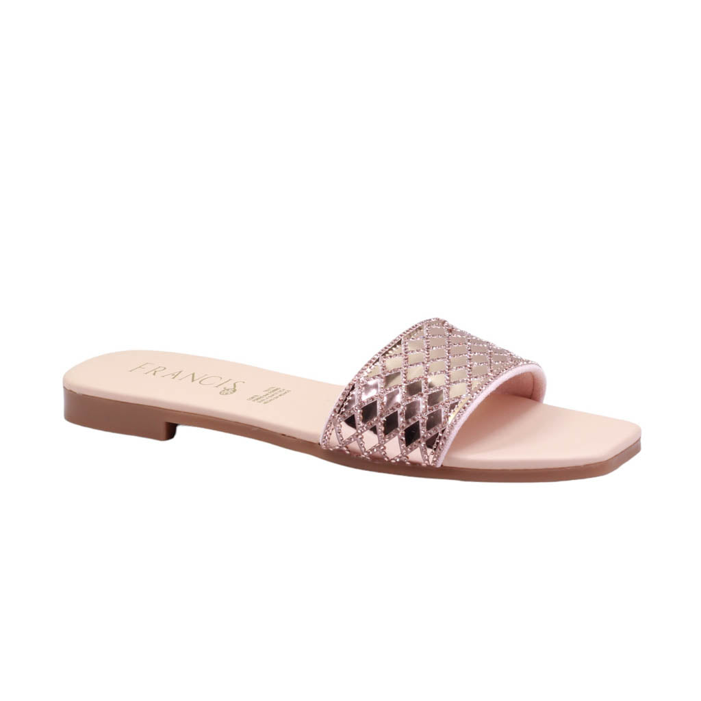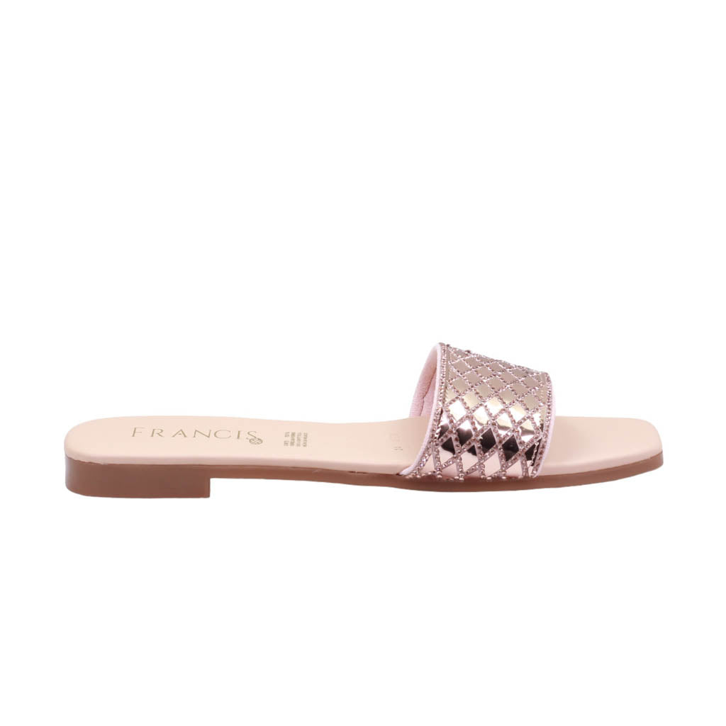 Sandalia para dama marca Francis en colores oro rosado y plata. Este modelo cuenta con corte adornado en pedrería, es una sandalia clásica, lo cual hace que no pase de moda, su tacón de 1.00 cm es adecuado para el uso diario. Perfectas para casa o playa. Modelo que no puede faltar en tu guardarropa.