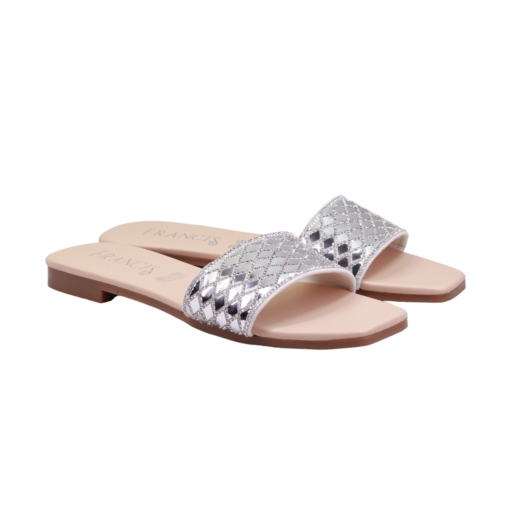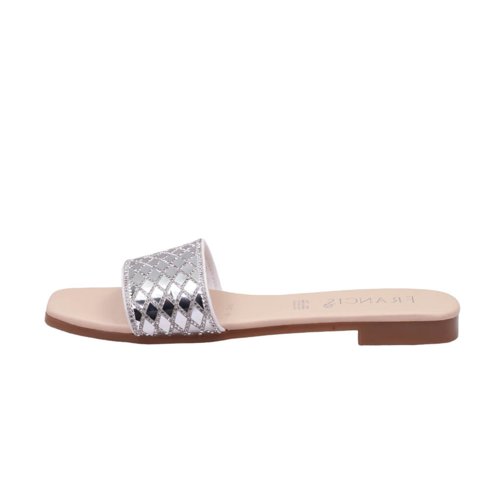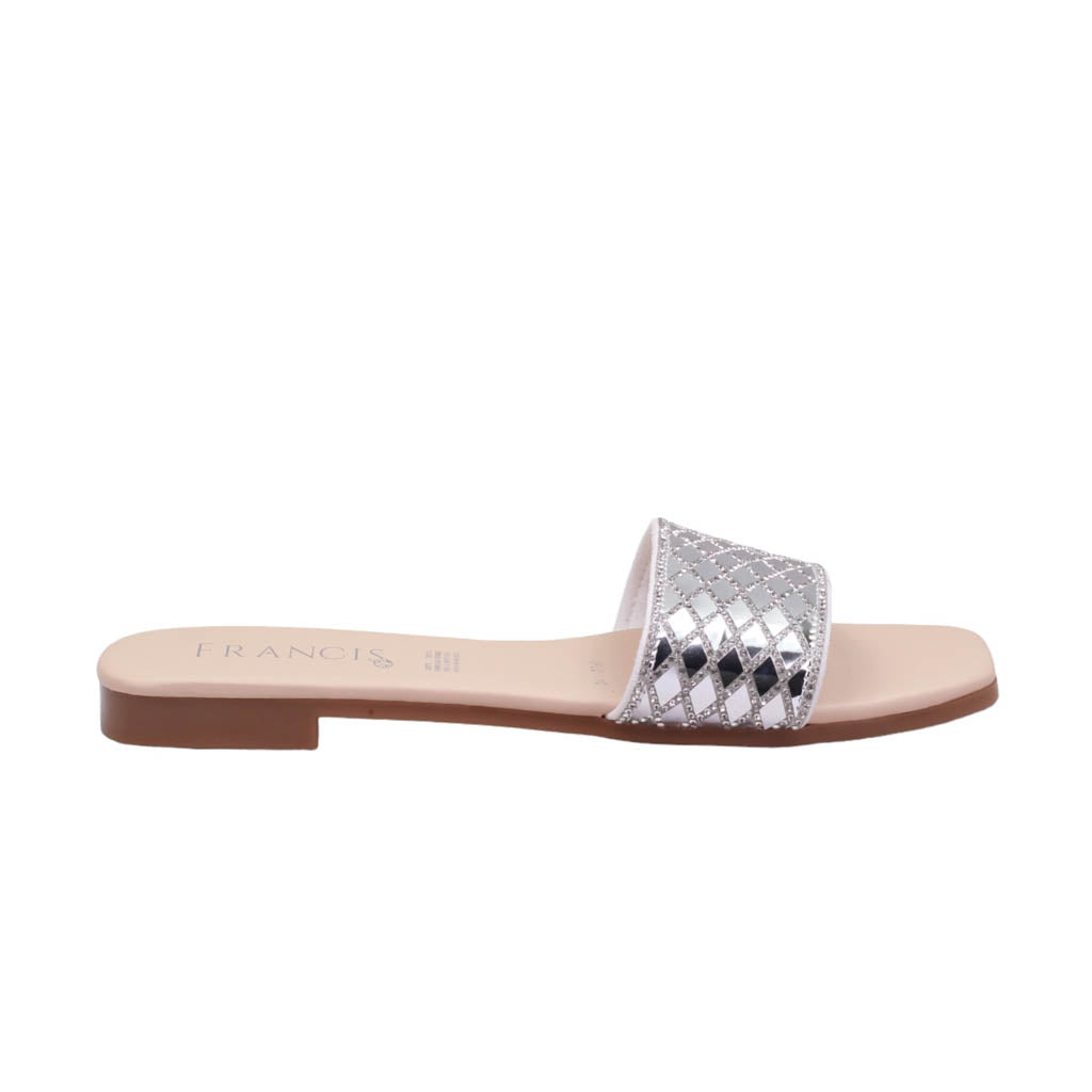 Sandalia para dama marca Francis en colores oro rosado y plata. Este modelo cuenta con corte adornado en pedrería, es una sandalia clásica, lo cual hace que no pase de moda, su tacón de 1.00 cm es adecuado para el uso diario. Perfectas para casa o playa. Modelo que no puede faltar en tu guardarropa.