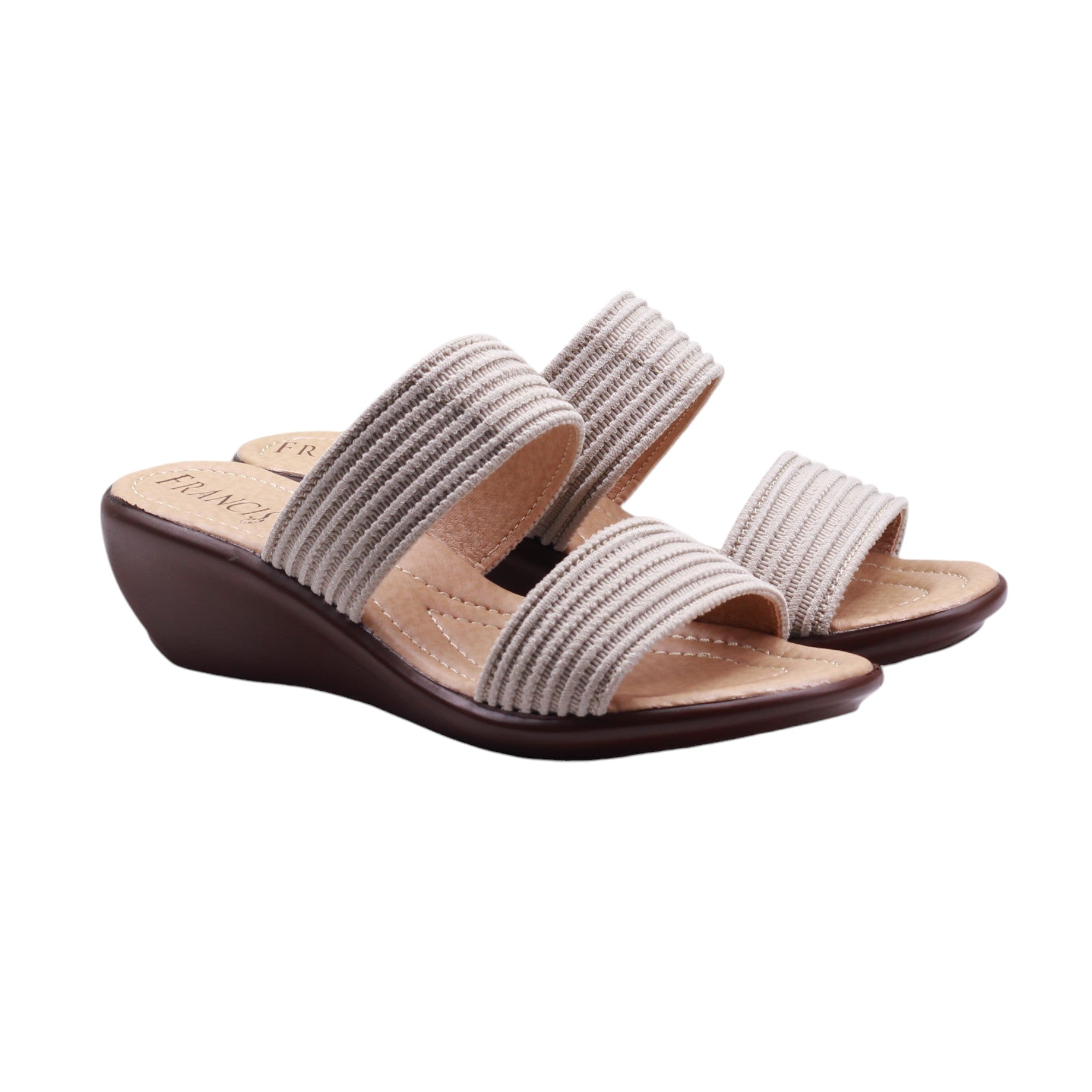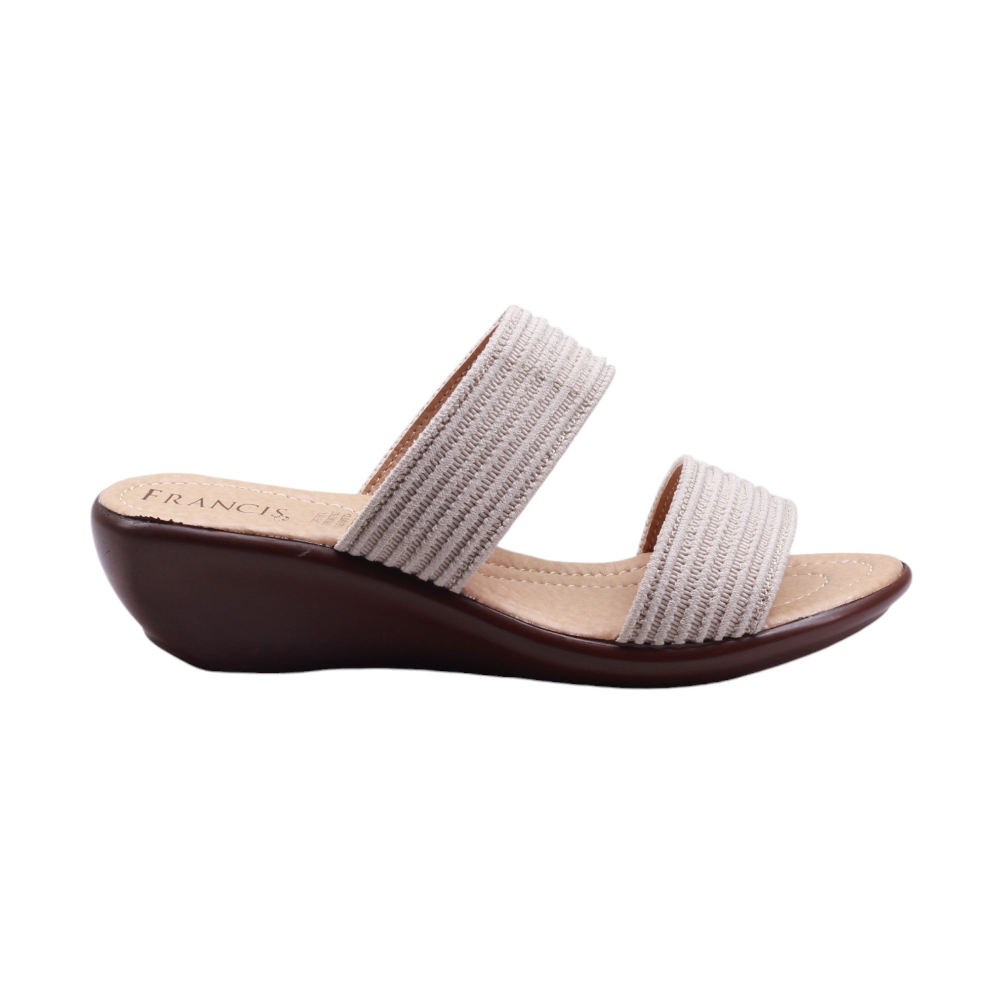 Sandalia para dama marca Francis en colores beige y negro. Este modelo presenta una doble tira de terminado en textil, brindando un diseño casual y cómodo. Además, cuenta con una plataforma con altura de 4.00 cm que proporciona una mayor comodidad y estilo a tu look. Perfecto para añadir un toque de moda a tu estilo diario.