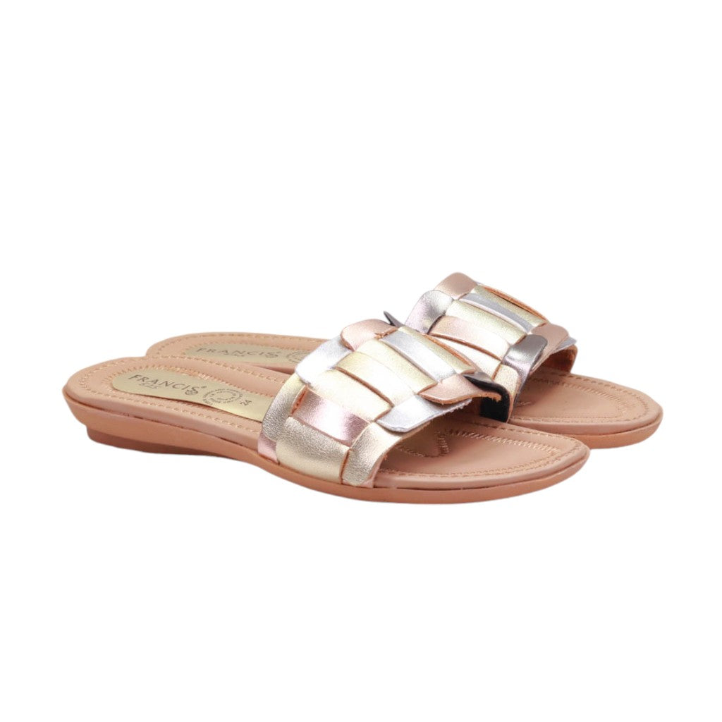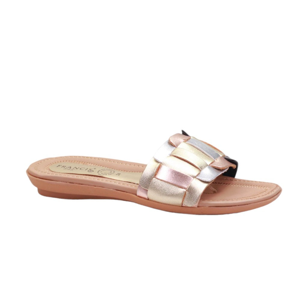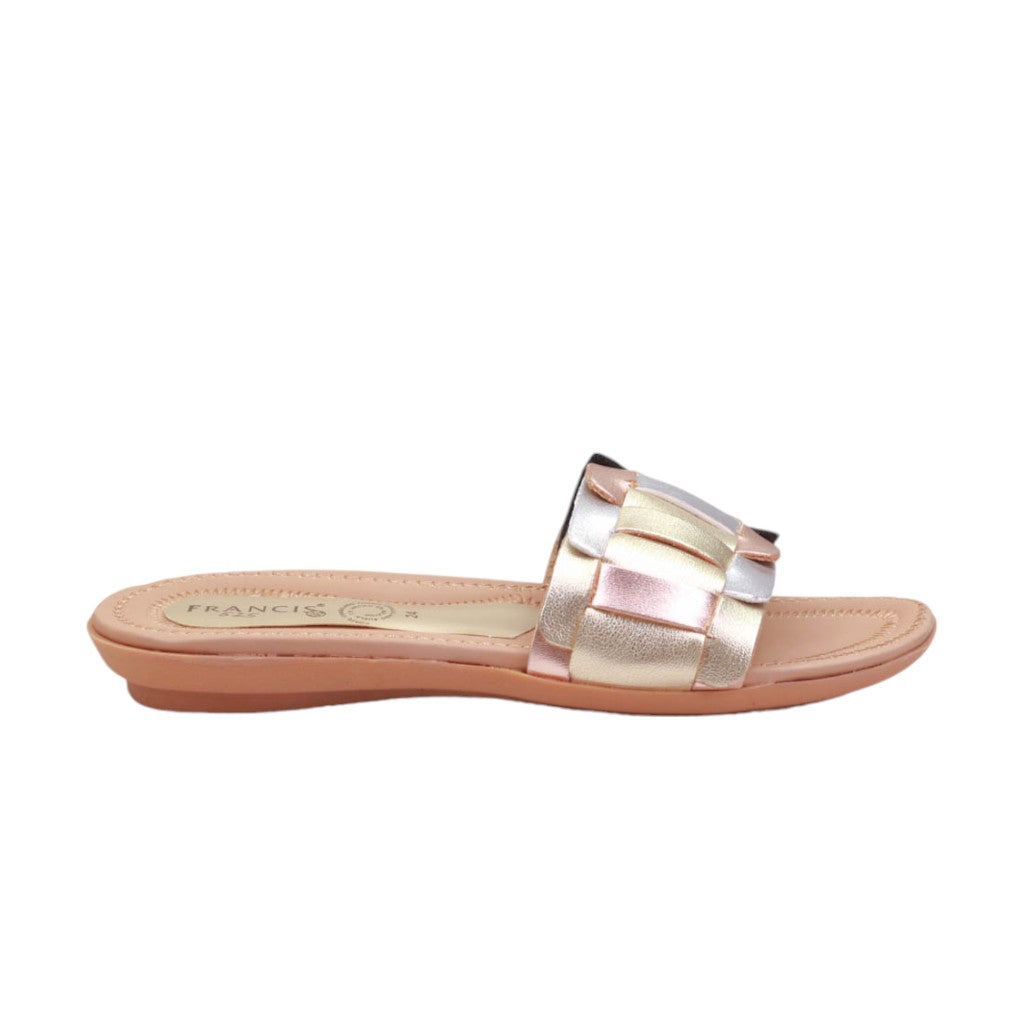 Sandalia para dama marca Francis en color oro. Este Modelo de plantilla de confort cuenta con una altura de 2.00 centímetros y un corte en diferentes tonos metalizados, lo que proporciona el máximo soporte y comodidad para tus pies. Además, su diseño te permite adaptarlas fácilmente. Camina con estilo y sin dolor con estas plantillas de calidad.