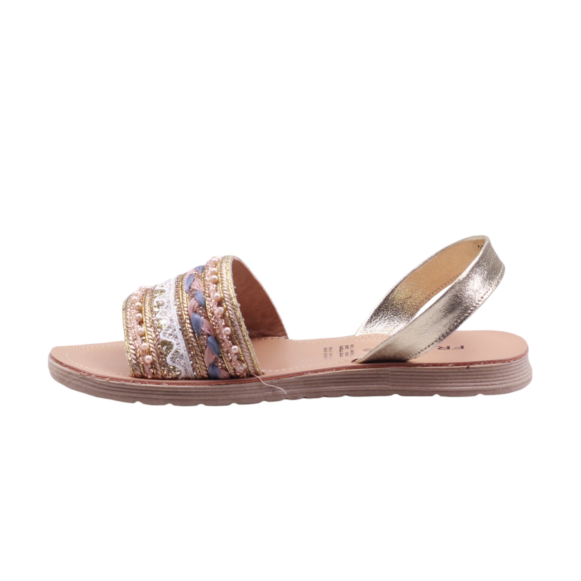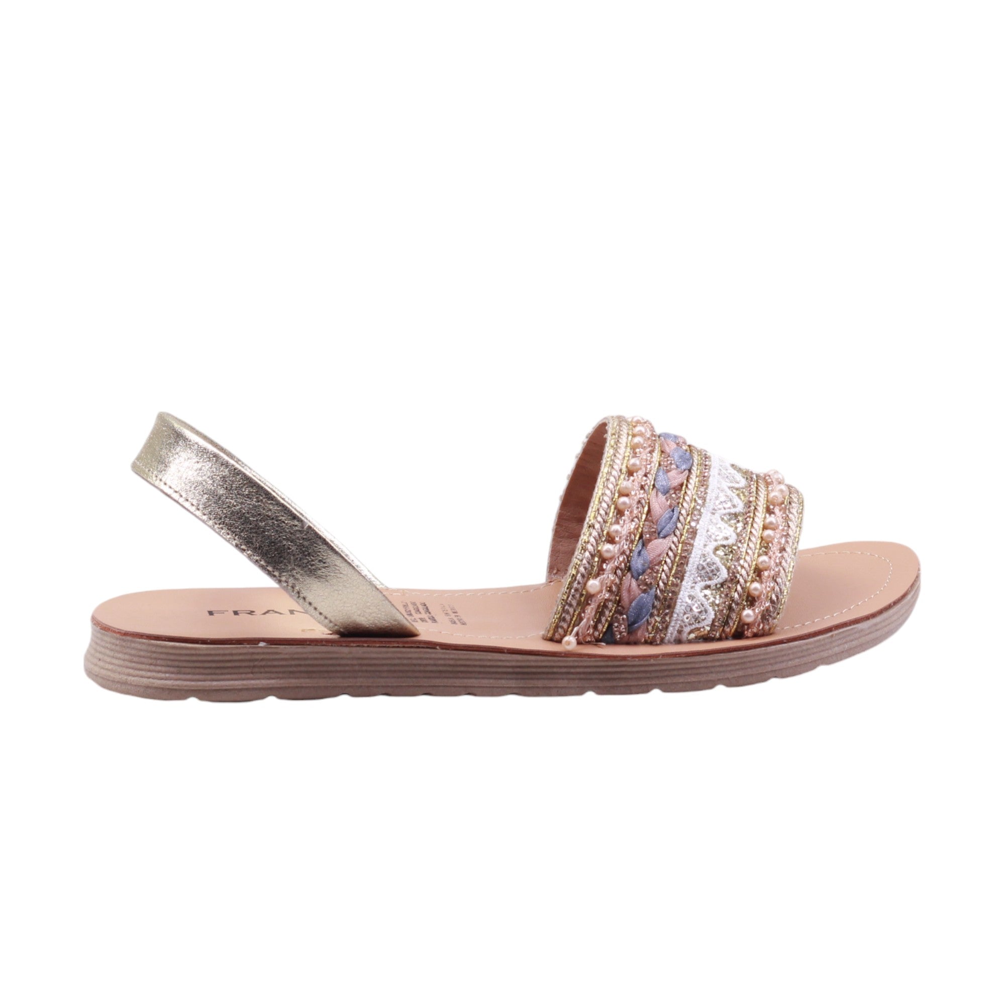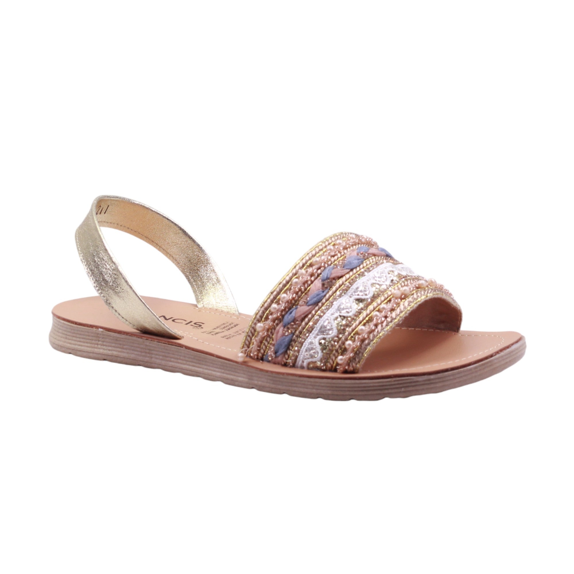 Sandalia para dama de tira trasera y corte con perlas y tejido
