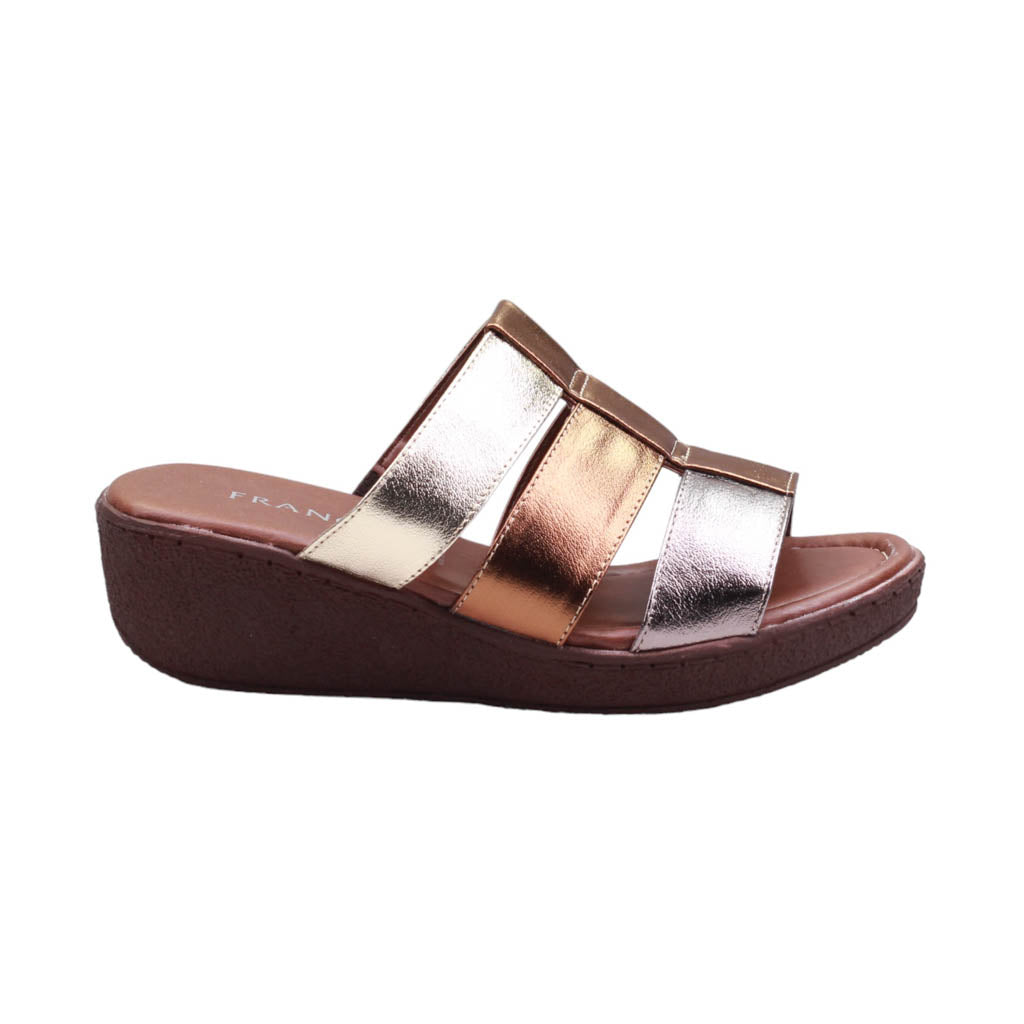 Esta sandalia para dama de la marca Francis en color multi. Este modelo cuenta con una plantilla de confort que proporciona mayor comodidad. Además, su altura de plataforma de 4.5 cm brinda una sensación de elevación y su triple tira en el corte en tonos metálicos le añade un toque de estilo y brillo a tu atuendo.