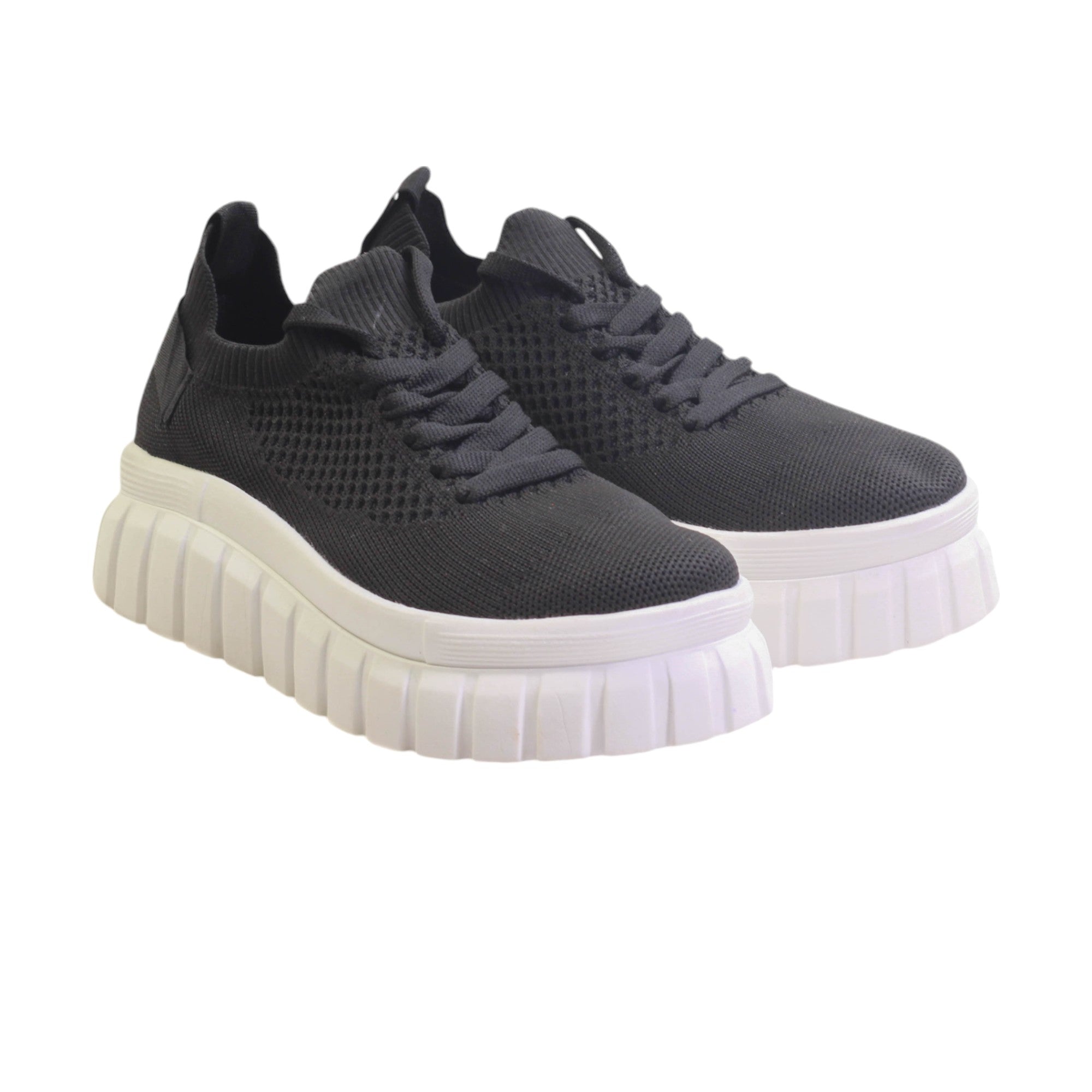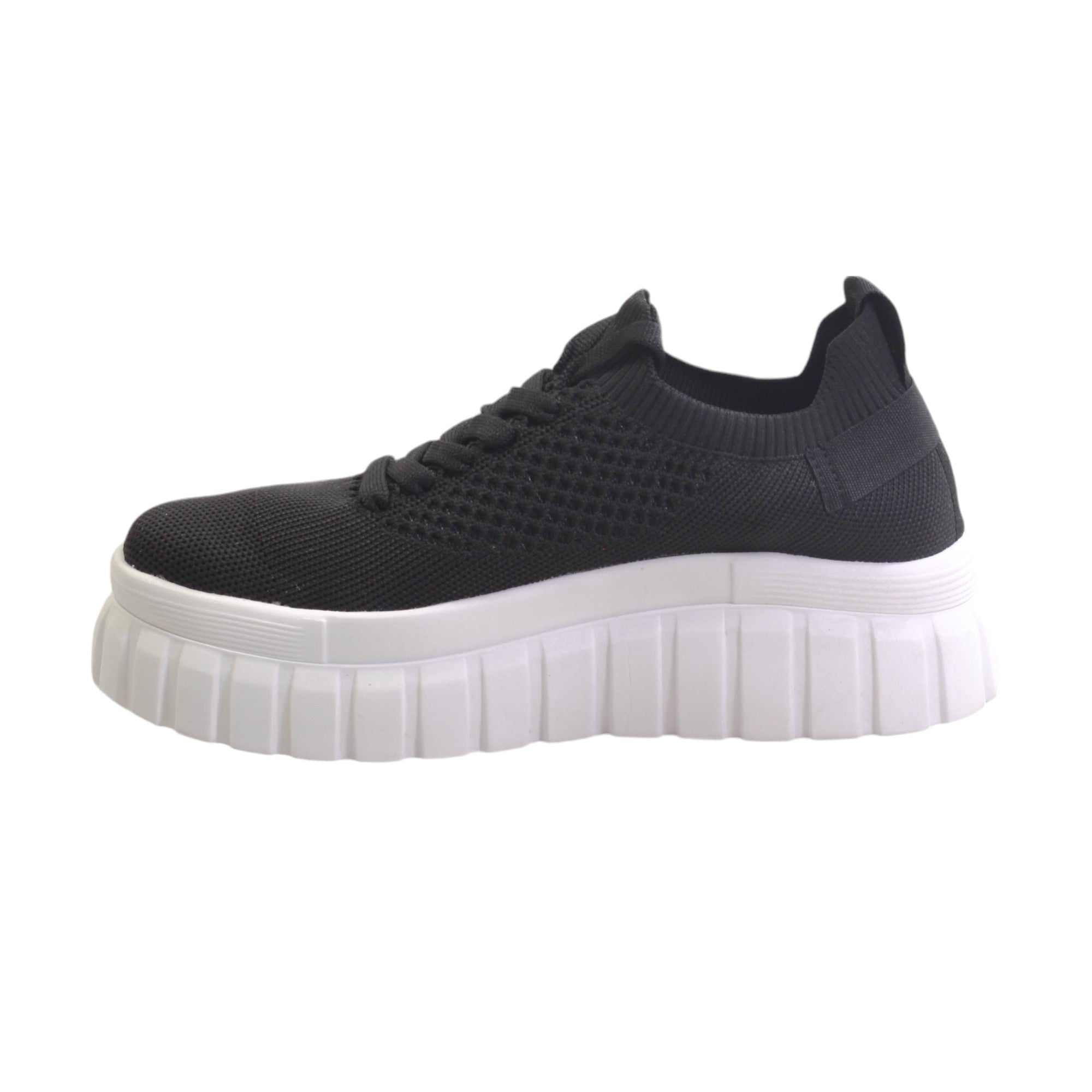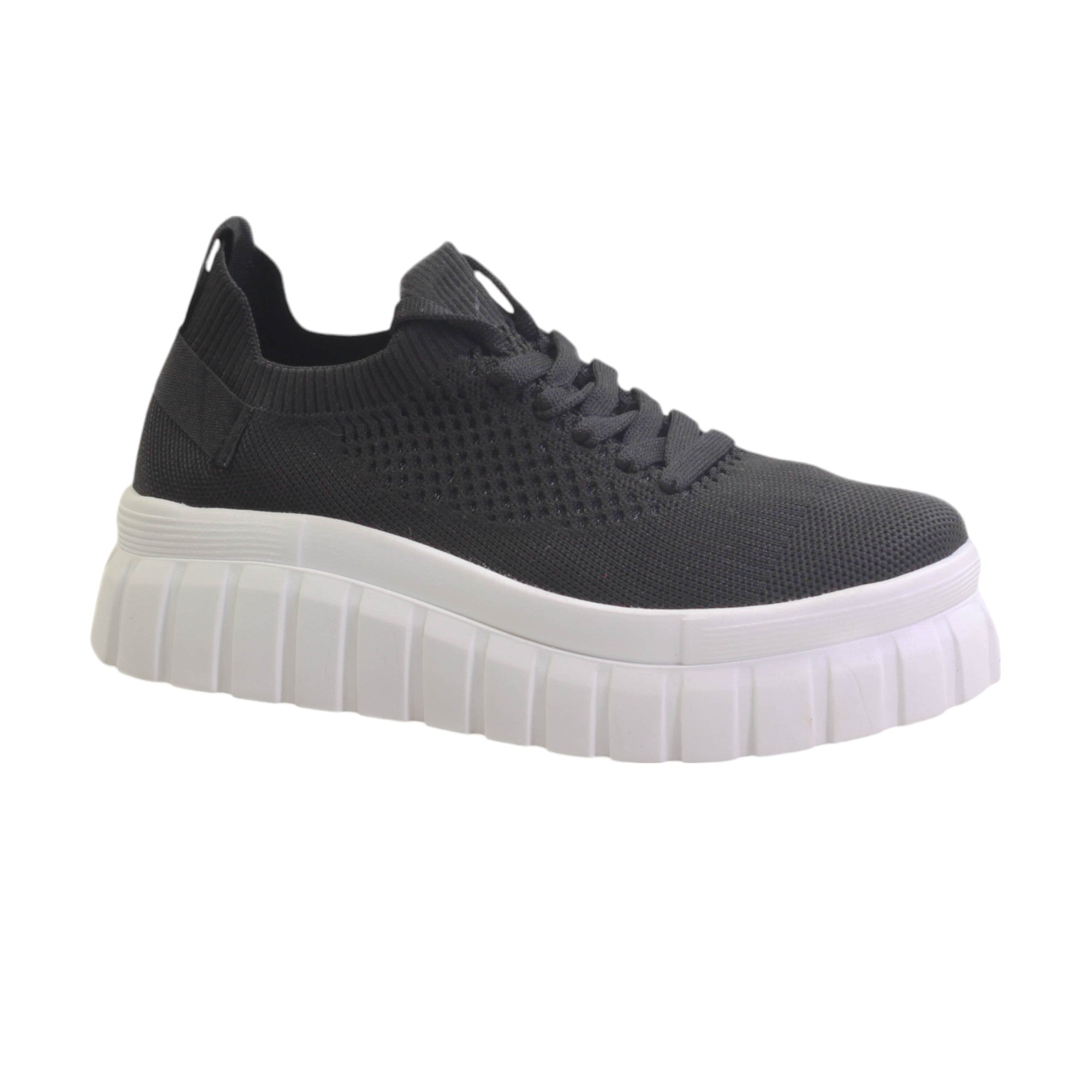 Tenis con plataforma alta para dama en color negro. Modelo super comodo gracias a su diseño, cuenta con ajuste de agujetas lo que hará que te veas increíble sin sacrificar tu comodidad y estarás en tendencia esta temporada. Es una sandalia ligera, lo cual brinda bastante comodidad.
