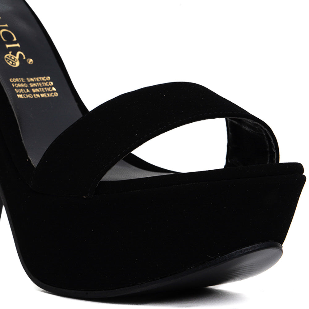 Zapatilla para dama marca Francis en colores circón y negro. Elegante modelo que cuenta con un  tacón  alto y  de 12.5 cm,  mas plataforma  de 4.00 cm para contrastar la altura. Cuenta con un forro en nobuck. Este tipo de zapatilla es ideal para cualquier ocasión que tengas, Cuenta con plantilla acojinada y tira ajustable en en tobillo.