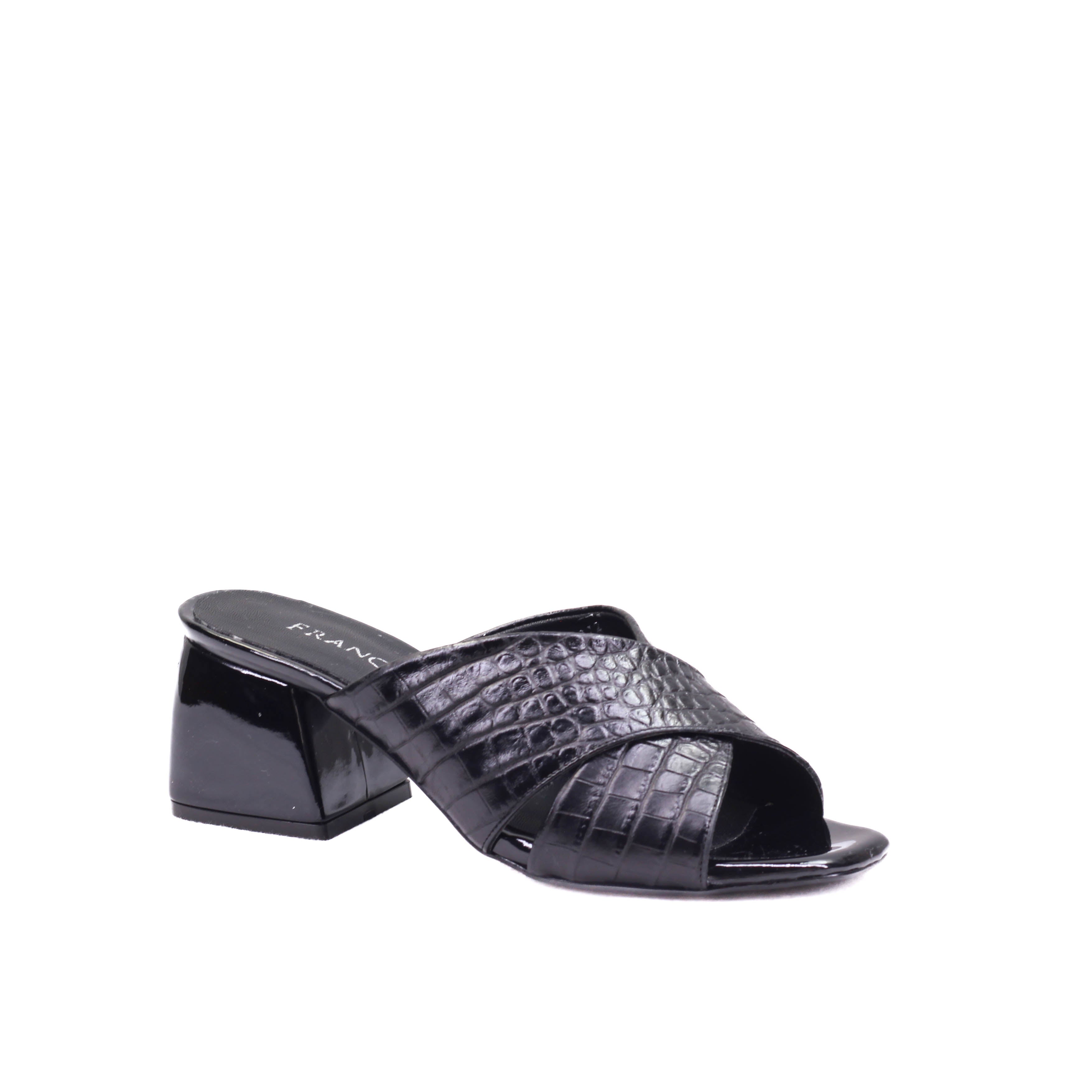 Zapatilla para dama marca Francis en colores negro. Modelo de tacón grueso cuadrado para dar una mayor comodidad y confiabilidad a cada paso. Es un calzado de término clásico que jamás pasa de moda. Calzado 100% mexicano de alta calidad.