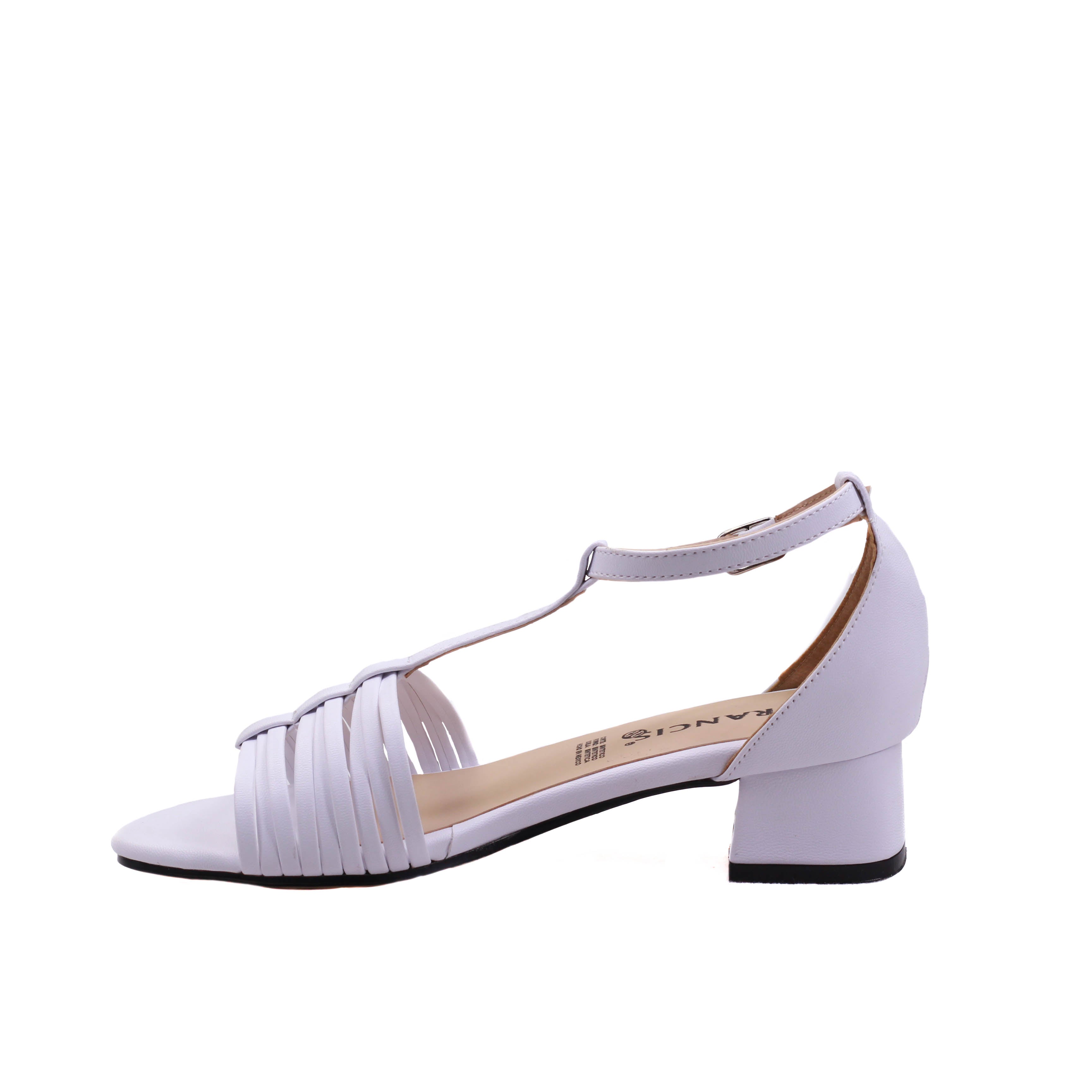 Zapatilla para dama de tacón ancho y triple tira en tres grupos