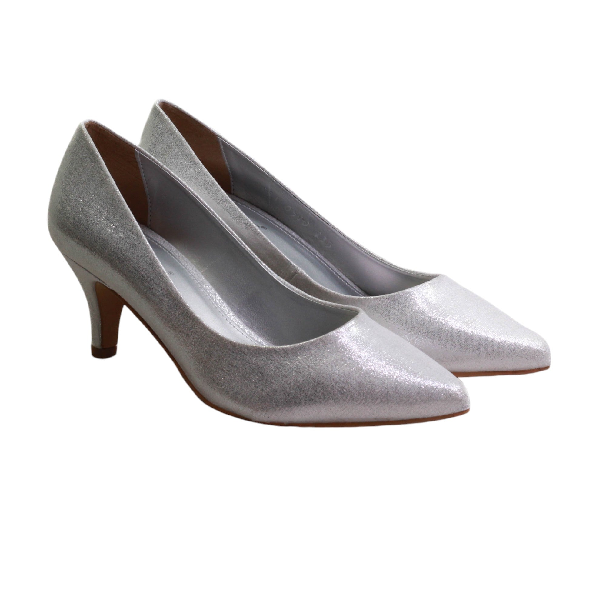 Zapatilla para dama marca Francis en colores plata. Es una zapatilla formal y vestir con un tacón delgado y lucidor. Este tipo de calzado es especial y refleja mucha originalidad, su diseño tiende a ser el más sofisticado de todos los zapatos de tacón. Usar un par de D'orsay heels es estar siempre a la moda, ya que sigue en tendencia año tras año sin llamar mucho la atención.