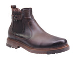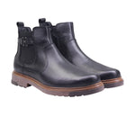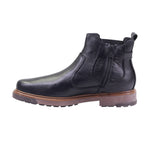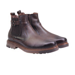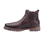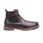 Bota para caballero marca Lobo solo en colores caoba y negro. Este botín casual está confeccionado en piel vacuna de excelente calidad, complementada con un forro porcino que brinda suavidad y confort interior. El lateral exterior destaca con un fajillo decorativo texturizado, que aporta carácter visual al modelo sin comprometer su funcionalidad. El tacón bajo de 3.00 cm proporciona una elevación sutil y cómoda, ideal para el uso diario. Las costuras visibles y el perfil robusto refuerzan la sensación artesanal del diseño, haciéndolo perfecto para entornos urbanos, estilos casuales y ocasiones donde se busca practicidad con distinción.