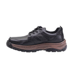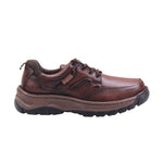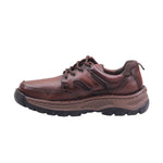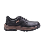 La suela trasera de 5.0 cm en goma de alta densidad ofrece excelente amortiguación y tracción, gracias a su diseño con dibujo profundo. Los cordones en tono café se ajustan mediante ojillos metálicos, reforzando el estilo rudo y funcional del modelo.