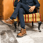 Bota para caballero con piel vacuna y suela resistente, ajuste en agujetas