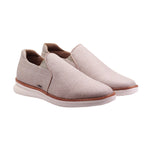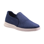 Calzado para caballero marca Jacks Andre en colores crudo y denim. Este modelo ofrece un estilo limpio y funcional, ideal para el día a día. Fabricado en material textil con superficie ligeramente texturizada, presenta un diseño tipo slip-on sin agujetas, lo que facilita el calce rápido. La suela corrida blanca tiene una altura trasera de 3.00 cm, proporcionando amortiguación ligera y estabilidad. El interior amplio sugiere comodidad prolongada.