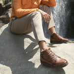 Bota para caballero con piel vacuna y suela resistente, ajuste en agujetas