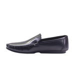 Calzado para caballero marca Gino Cherruti en colores negro y tan. Este mocasín de vestir está confeccionado con corte y forro en materiales sintéticos, ofreciendo una apariencia pulida y resistente al uso diario. Su punta definida aporta estructura al diseño, mientras que la costura tipo mocasín en la parte frontal realza el contorno con un acabado artesanal y elegante. Un pequeño aplique metálico en el lateral añade un detalle sutil pero distintivo. La suela de goma con patrón de tracción proporciona estabilidad y comodidad en cada paso. Ideal para ocasiones formales o semi-formales, este modelo combina estilo clásico con funcionalidad moderna.