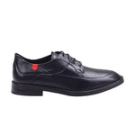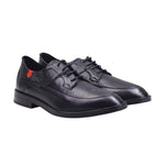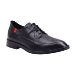 Calzado para caballero marca Jacks Andre en colores negro y sierra. Zapato casual en tono negro con acabado semi-brillante, ideal para uso diario con un toque formal. Su corte y forro son de materiales sintéticos que ofrecen ligereza y fácil mantenimiento. El diseño presenta una punta ligeramente afinada que estiliza el perfil, mientras el ajuste en agujetas permite un calce seguro y adaptable. Detalles de costura visibles en los laterales aportan carácter al modelo, y el pequeño acento en rojo cerca del cuello añade un contraste sutil y moderno. Tacón bajo que brinda comodidad sin perder presencia.