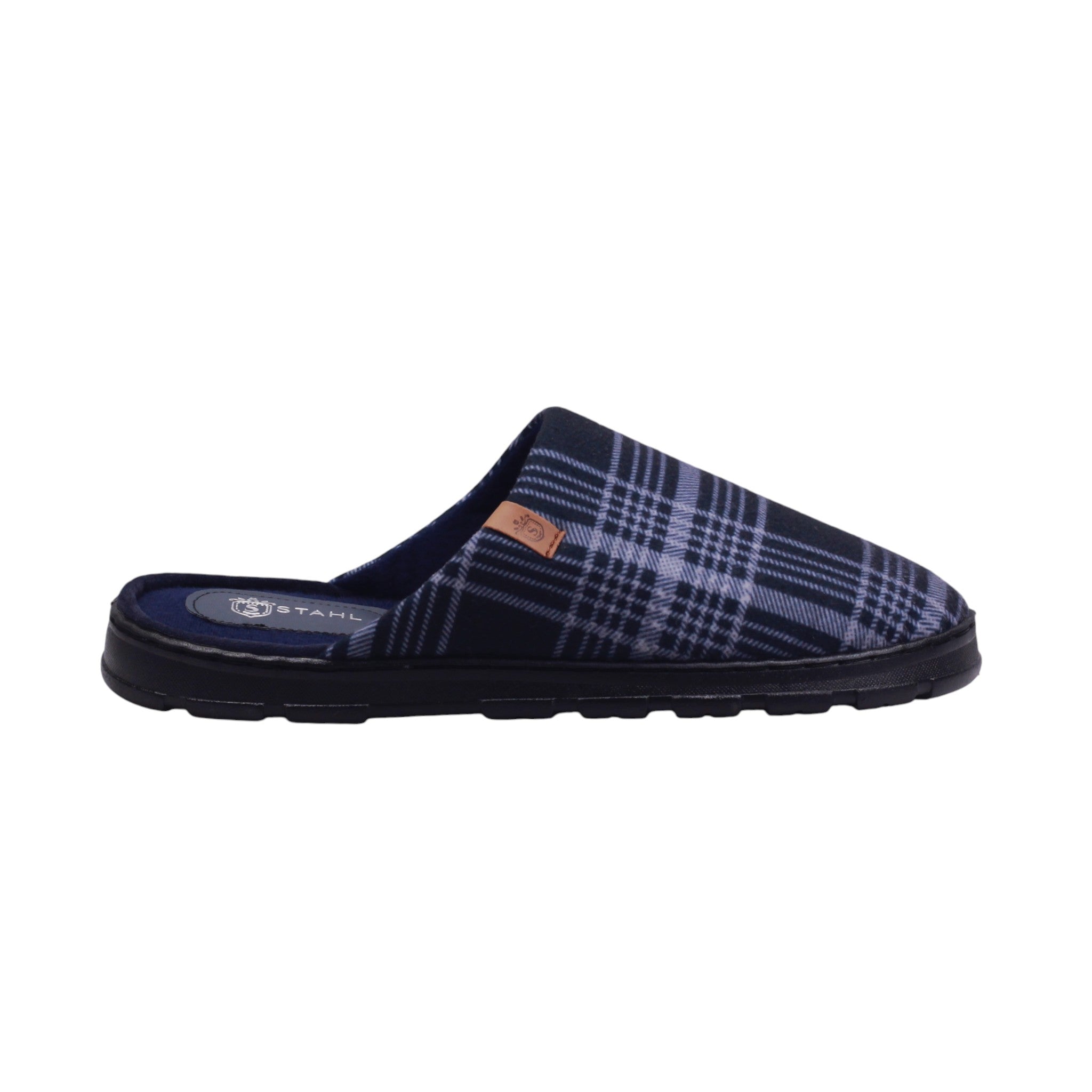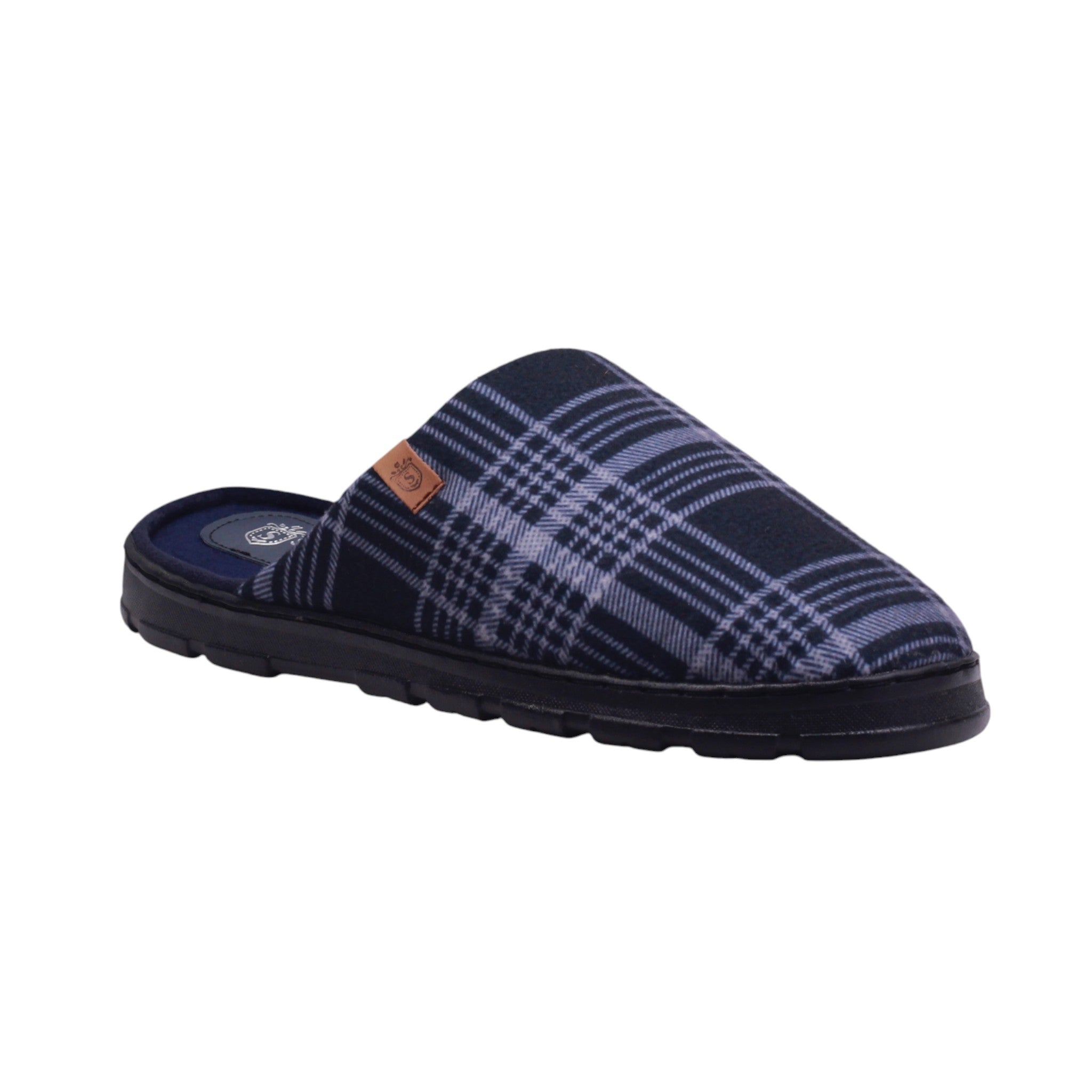 Pantufla para caballero color gris con cuadros en la plantilla