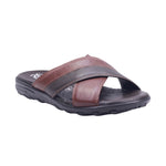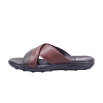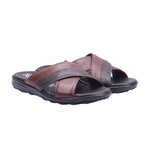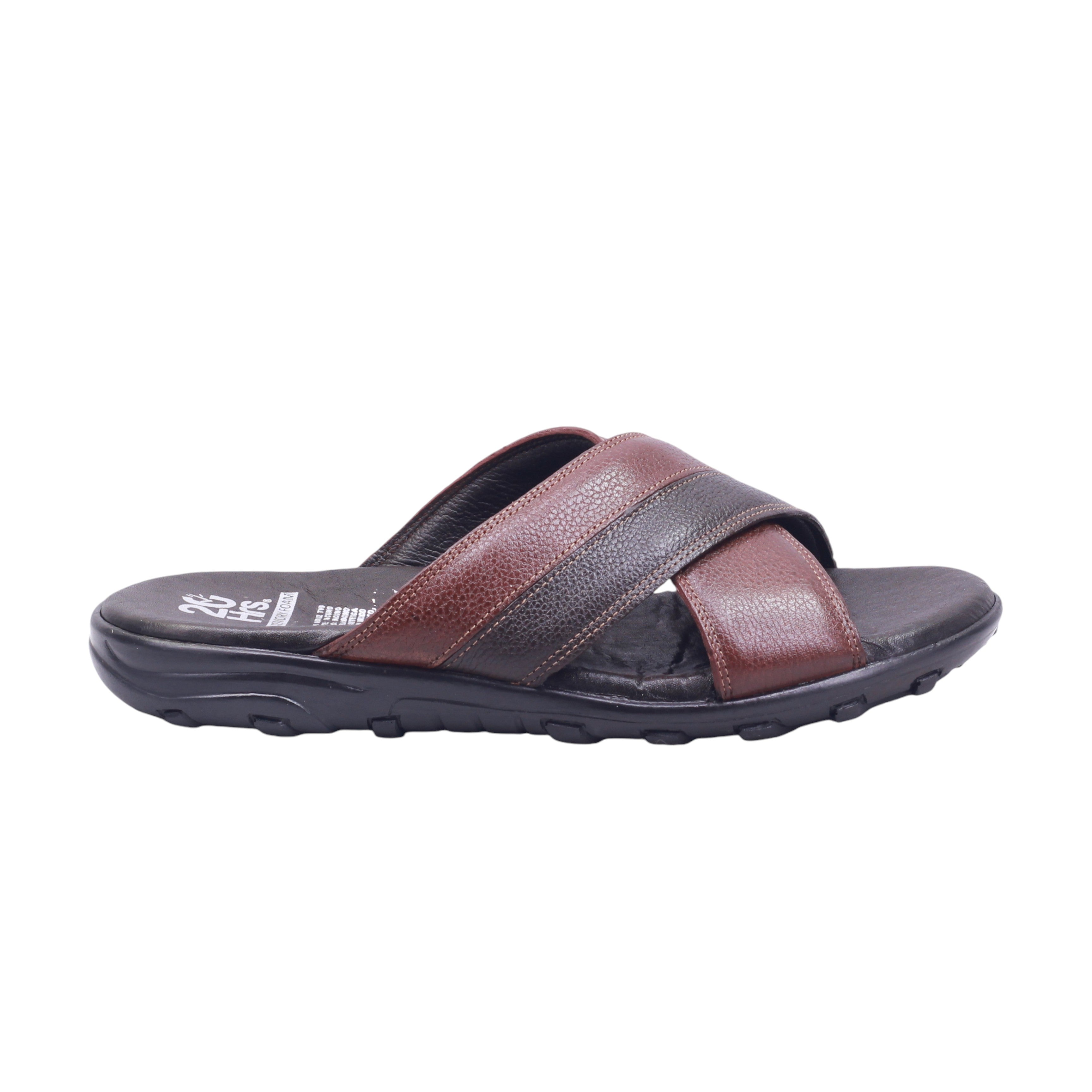 Sandalia para caballero marca 20 Horas en color café. Sandalia para hombre elaborada en piel vacuna en corte, forro y plantilla, ideal para uso diario. Su diseño de tiras anchas en cruce brinda un ajuste cómodo y moderno, mientras que la suela negra de 2.5 cm ofrece estabilidad y confort en cada paso. Disponible en tonos marrón y chocolate, perfecta para combinar con looks relajados o semi-formales.