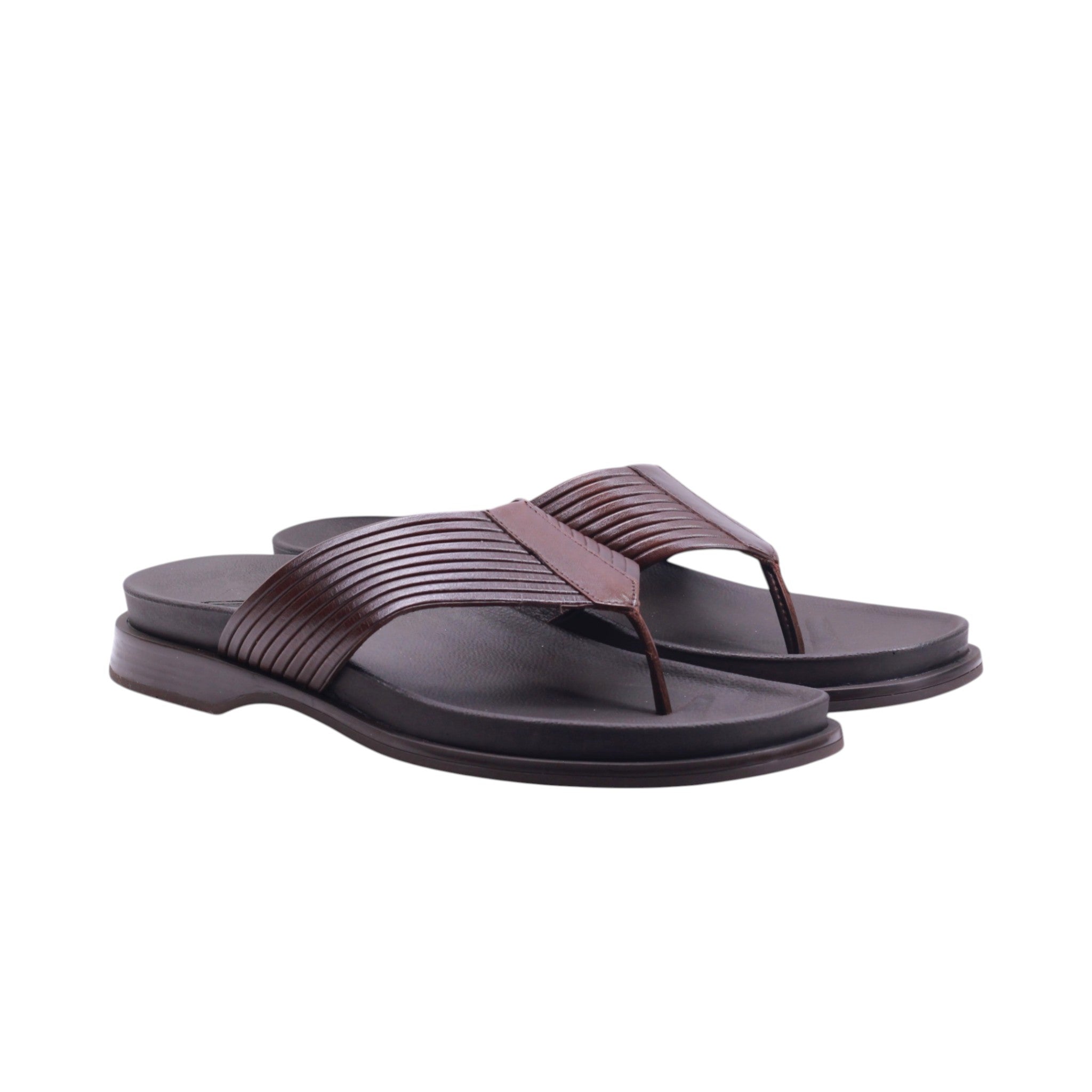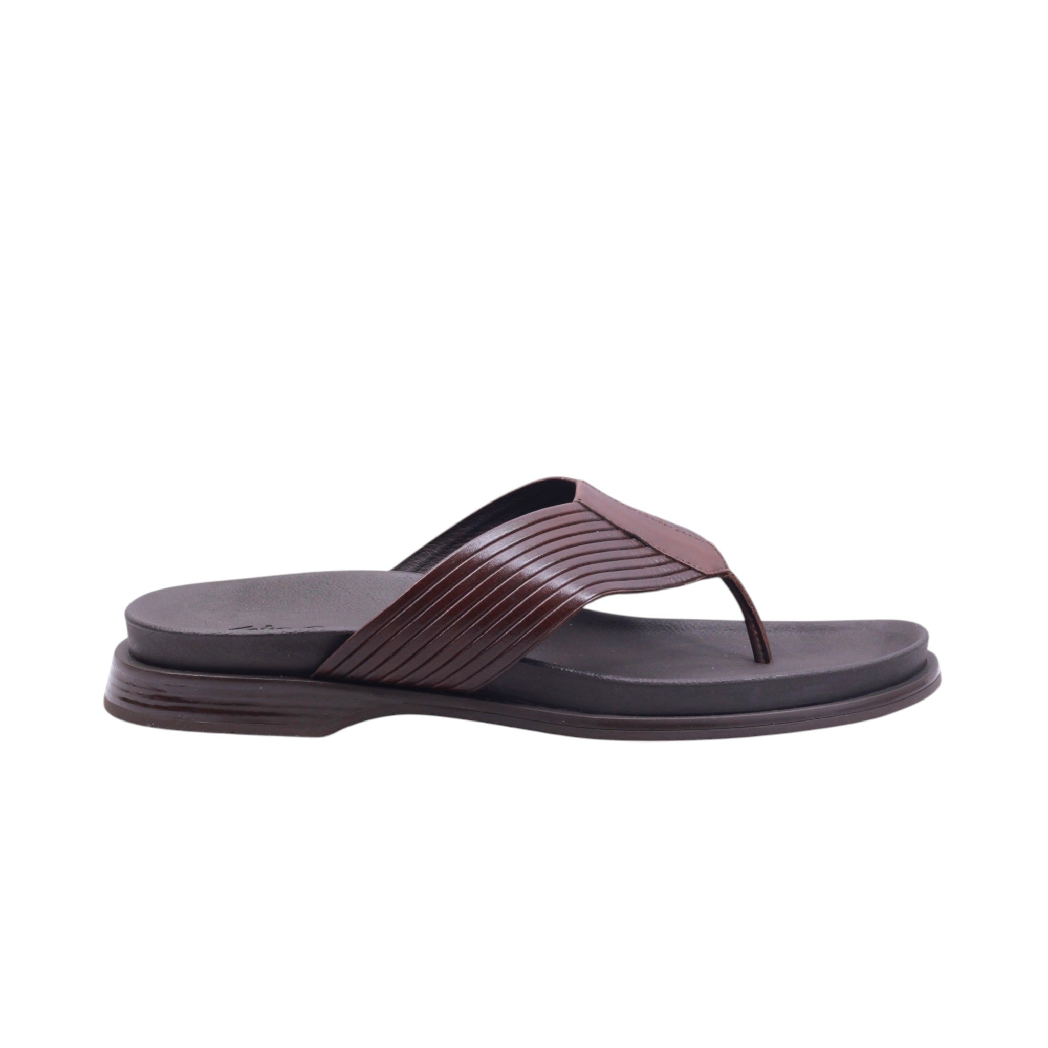 Sandalia de caballero elaborada con corte en piel vacuna y forro porcino, disponible en color canela. Cuenta con altura de 2.0 cm que aporta comodidad y estabilidad. Es un modelo abierto tipo flip-flop con tira superior texturizada que brinda soporte y estilo, además de un diseño sencillo y funcional. La suela presenta acabado en contraste con ligera elevación en el talón, ofreciendo buena tracción y resistencia. La plantilla acolchada garantiza confort prolongado, convirtiéndola en una opción práctica y fresca para uso casual y diario.