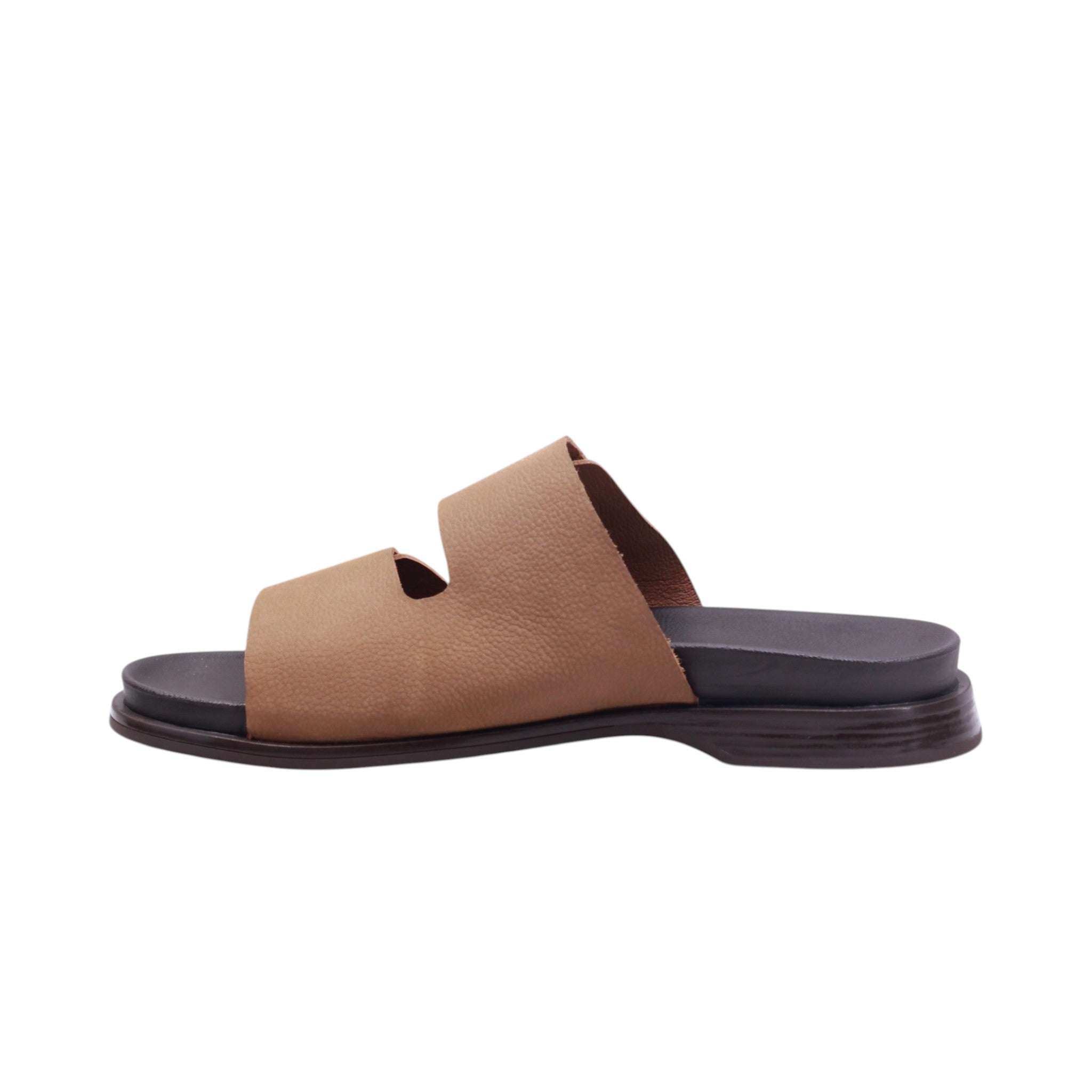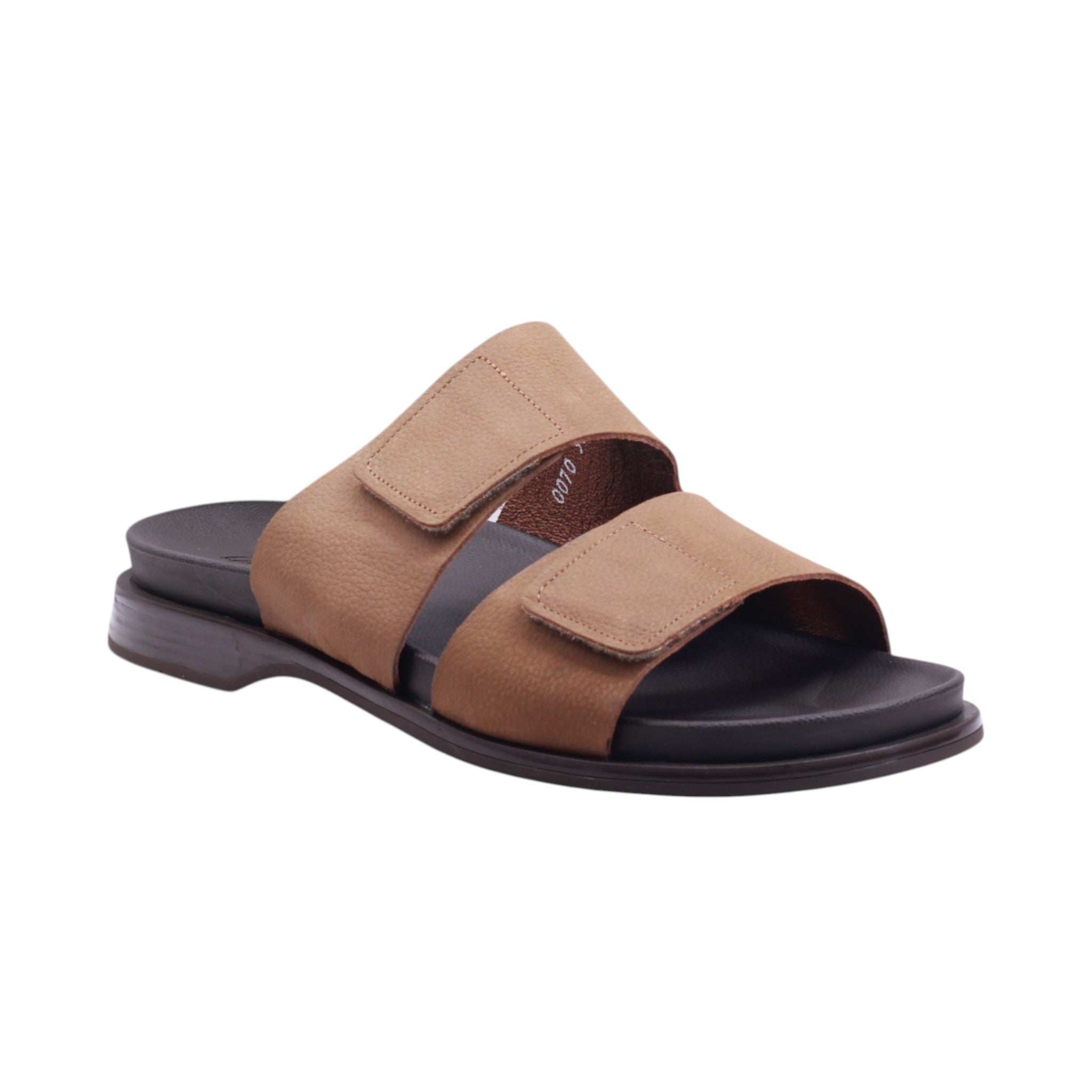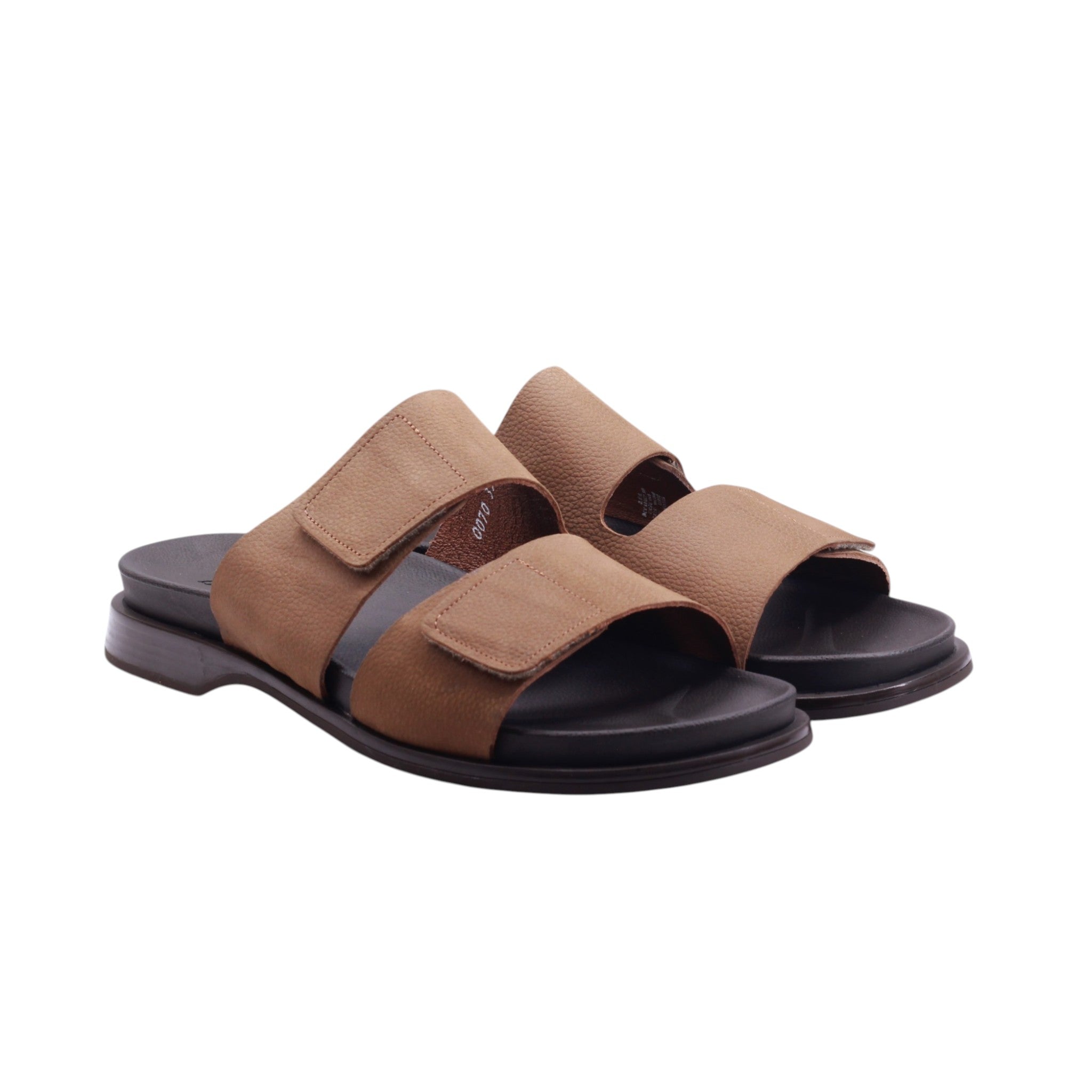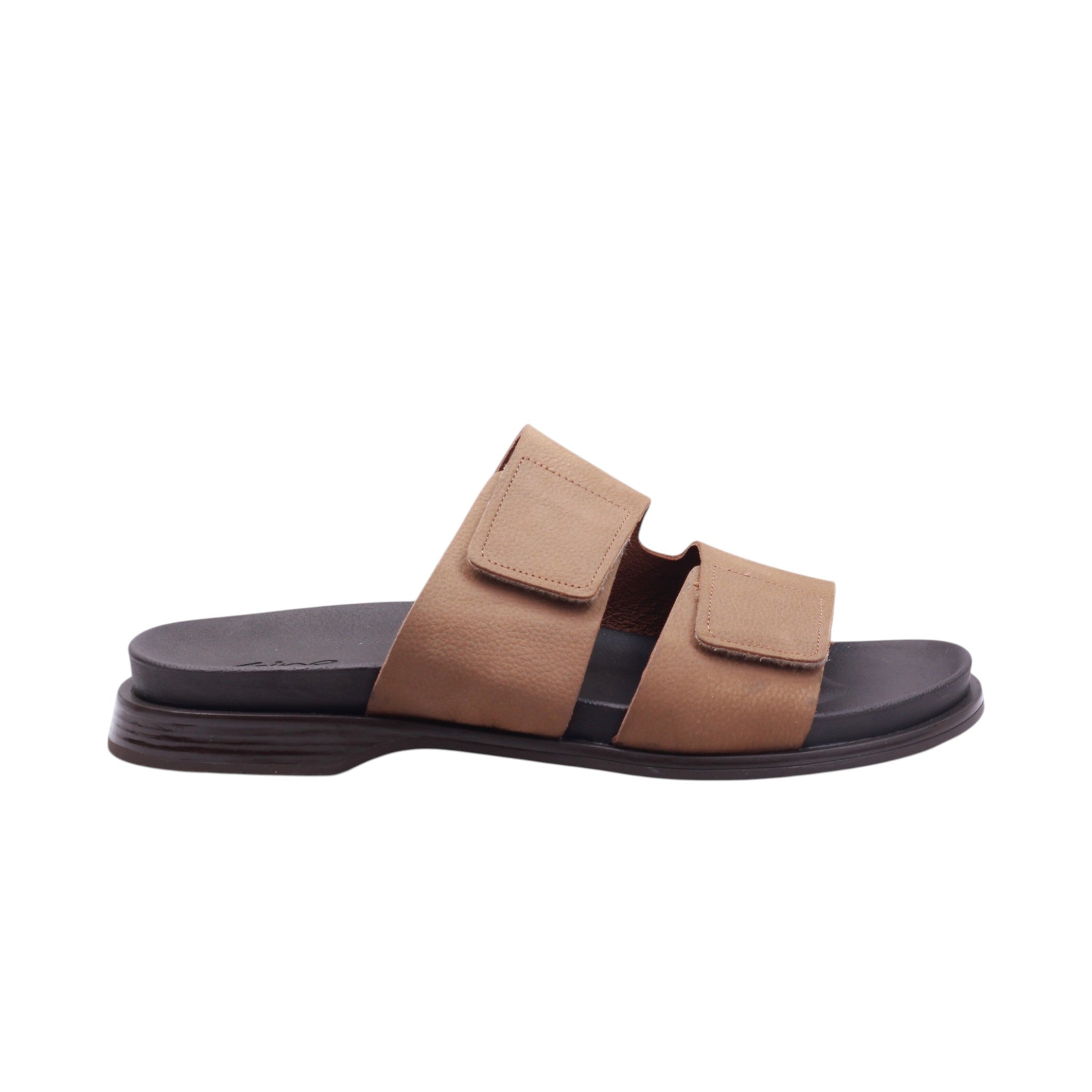Sandalia de caballero elaborada con corte en piel vacuna y forro porcino, disponible en colores arena y negro. Cuenta con altura de 2.0 cm que aporta comodidad y estabilidad. Su diseño incorpora doble tira ajustable con velcro que permite un calce práctico y seguro, además de un empeine abierto que brinda frescura. La suela presenta acabado texturizado con costuras visibles que refuerzan la durabilidad, mientras que la plantilla acolchada garantiza confort prolongado. Es un modelo versátil, ideal para uso casual y diario, que combina resistencia con un estilo sencillo y funcional.
