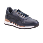 Calzado tipo tenis para caballero marca Fabian Arenas en colores tan y marino. Fabricadas con una suela blanca de 4.00 cm, este modelo ofrece un ajuste cómodo gracias a su plantilla de confort. Su diseño en piel grabada y lisa, así como su sistema de ajuste en agujeta, lo hacen una opción versátil para cualquier ocasión.