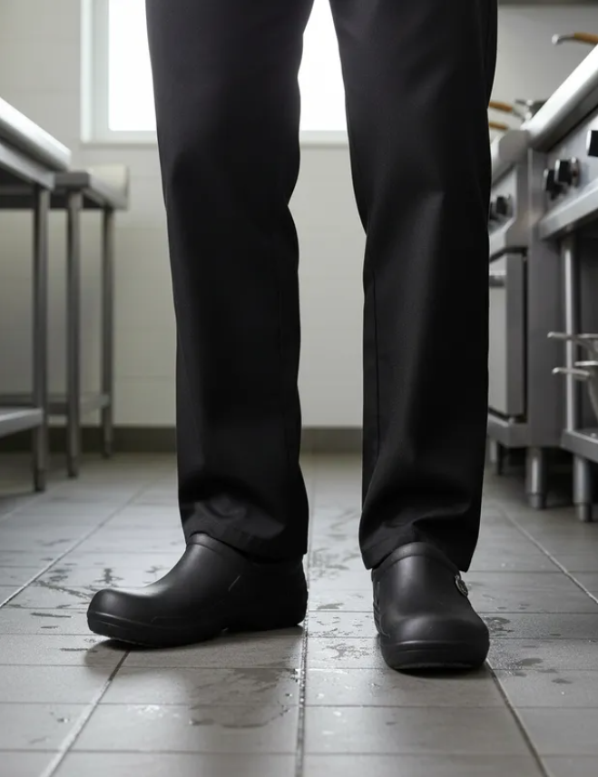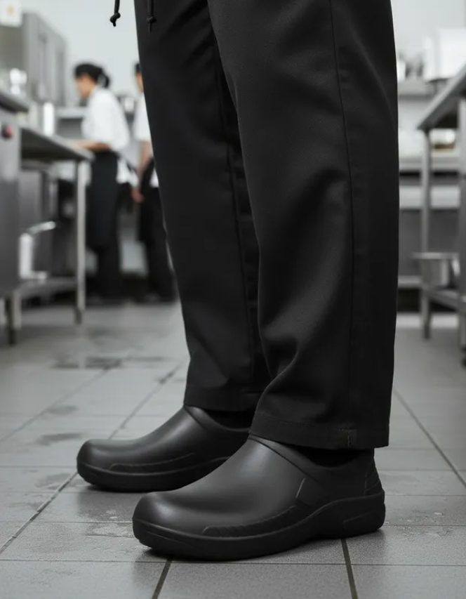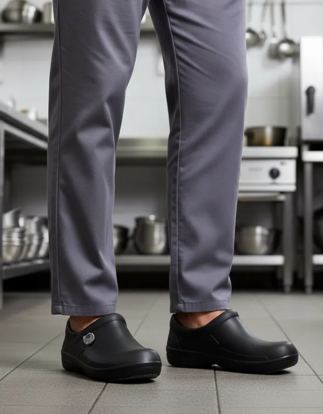 Este modelo es apto para chef, personal de cocina o profesionales que requieren un calzado funcional, cómodo y duradero.