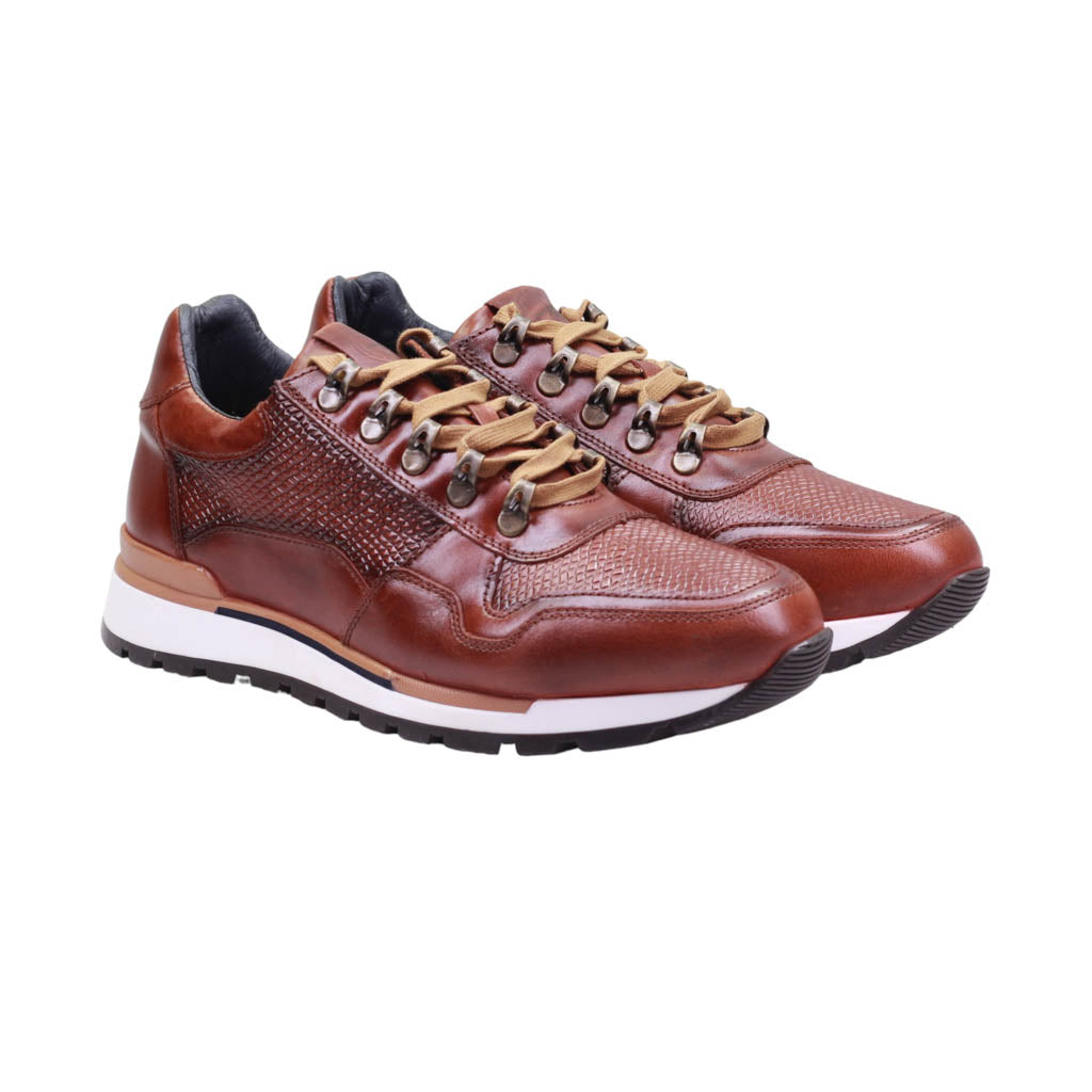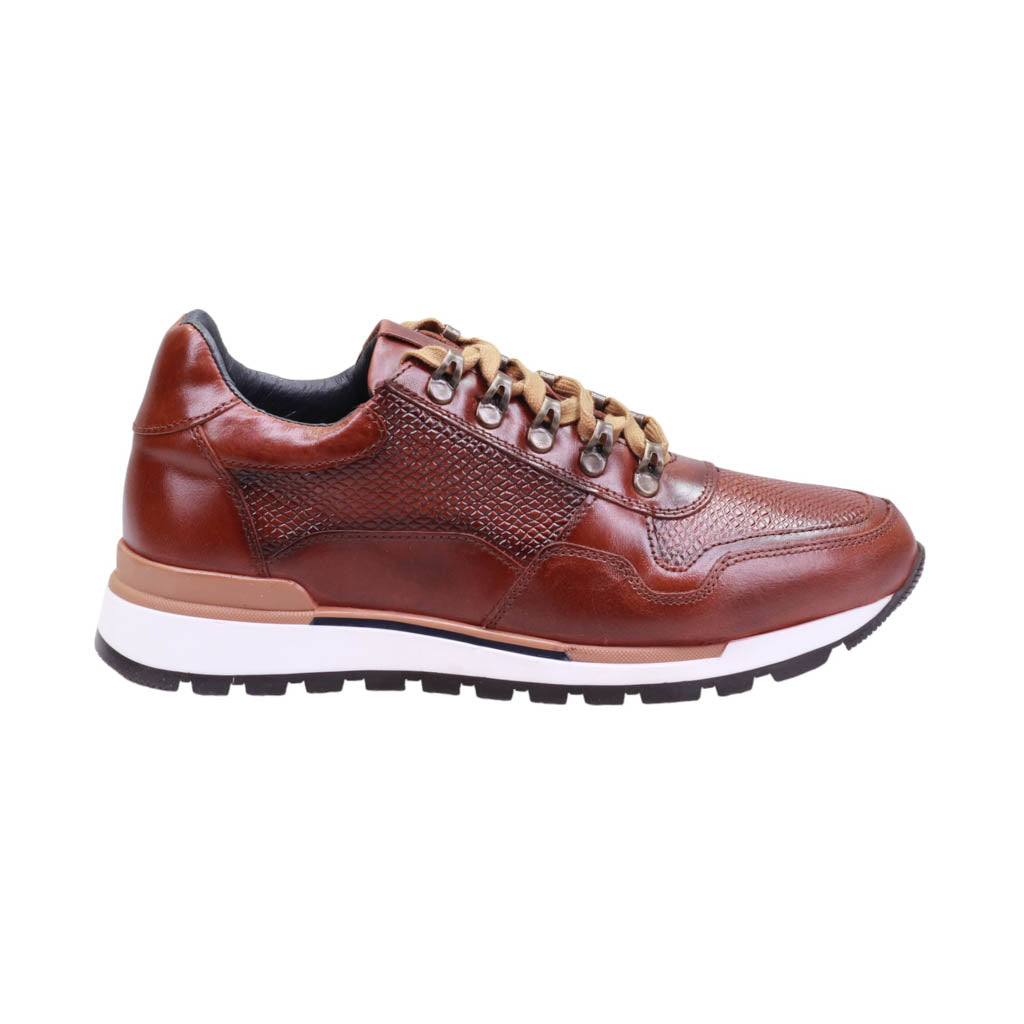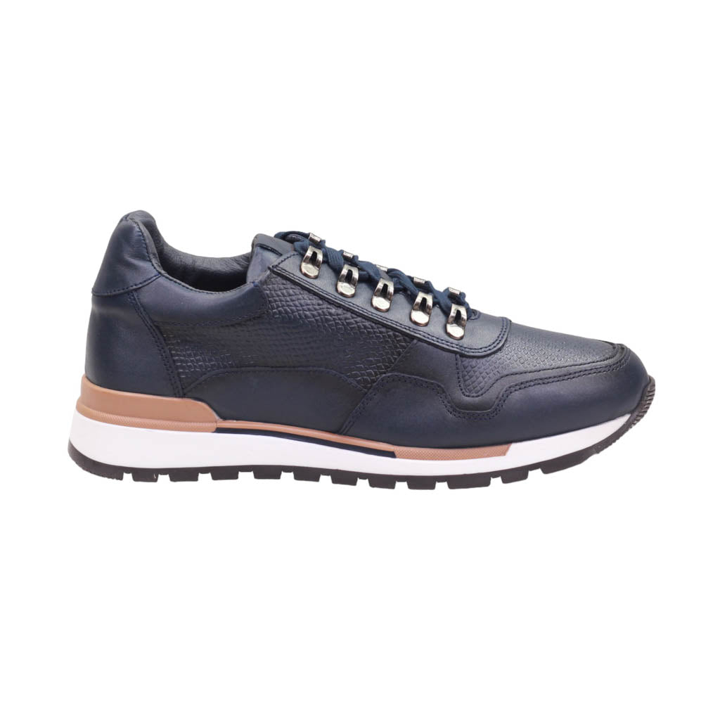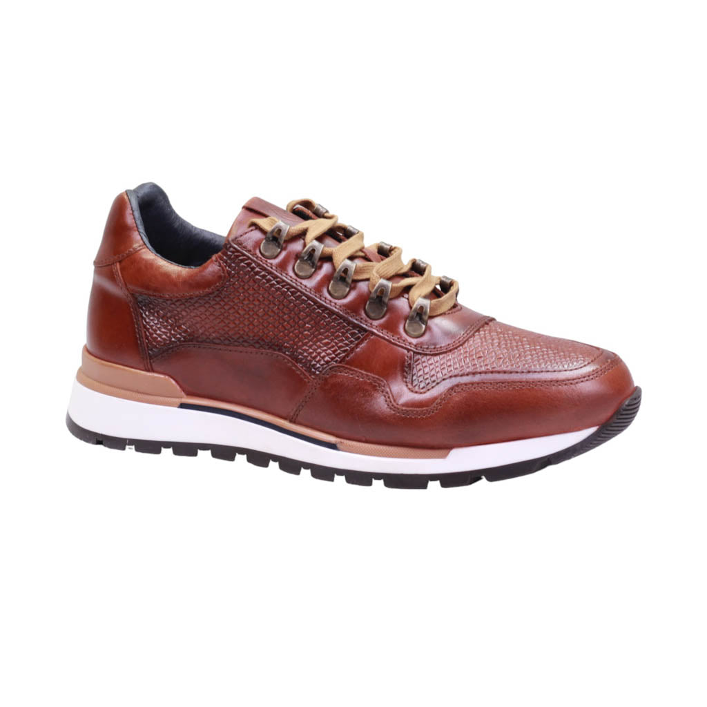 Calzado tipo tenis para caballero marca Fabian Arenas en colores tan y marino. Fabricadas con una suela blanca de 4.00 cm, este modelo ofrece un ajuste cómodo gracias a su plantilla de confort. Su diseño en piel grabada y lisa, así como su sistema de ajuste en agujeta, lo hacen una opción versátil para cualquier ocasión.