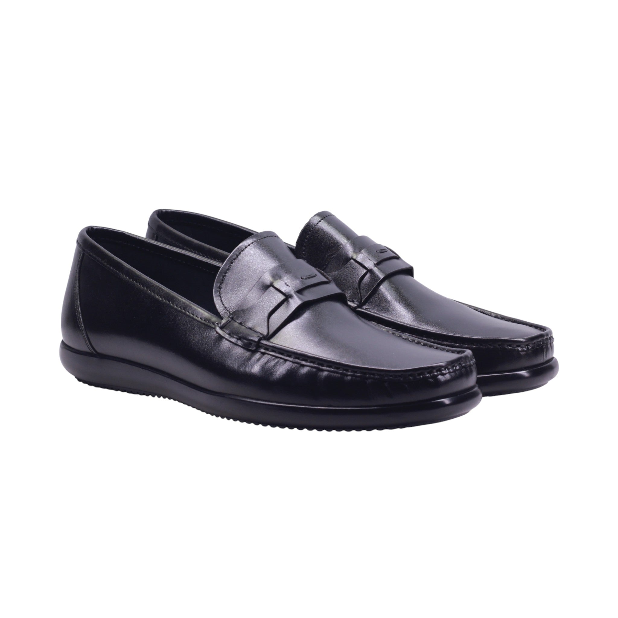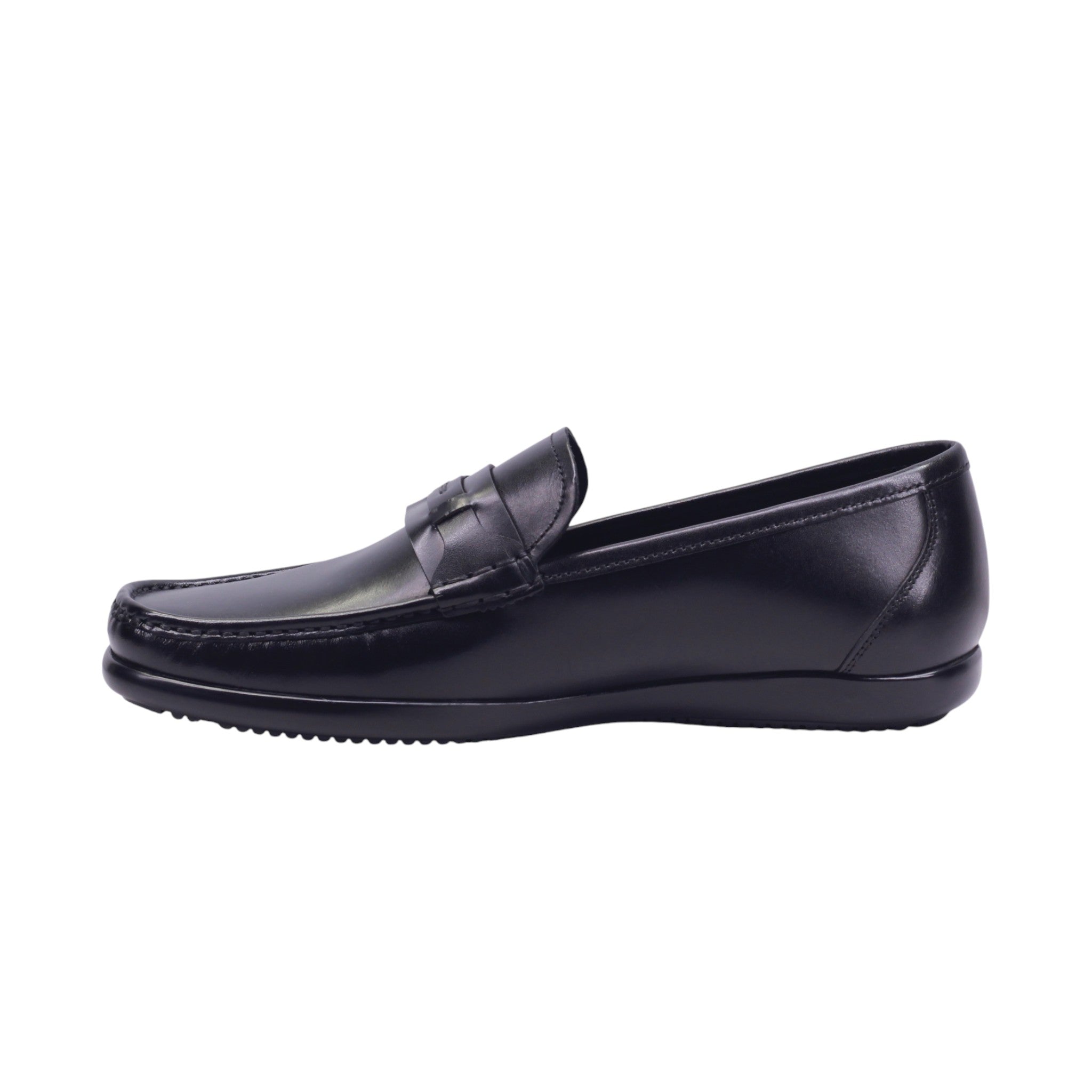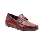 Mocasín de caballero elaborado con corte de piel vacuna y forro de piel porcino, disponible en colores miel y negro. Su diseño clásico con punta redonda presenta costura tipo mocasín en la parte frontal y una traba decorativa sobre el empeine que aporta elegancia discreta.