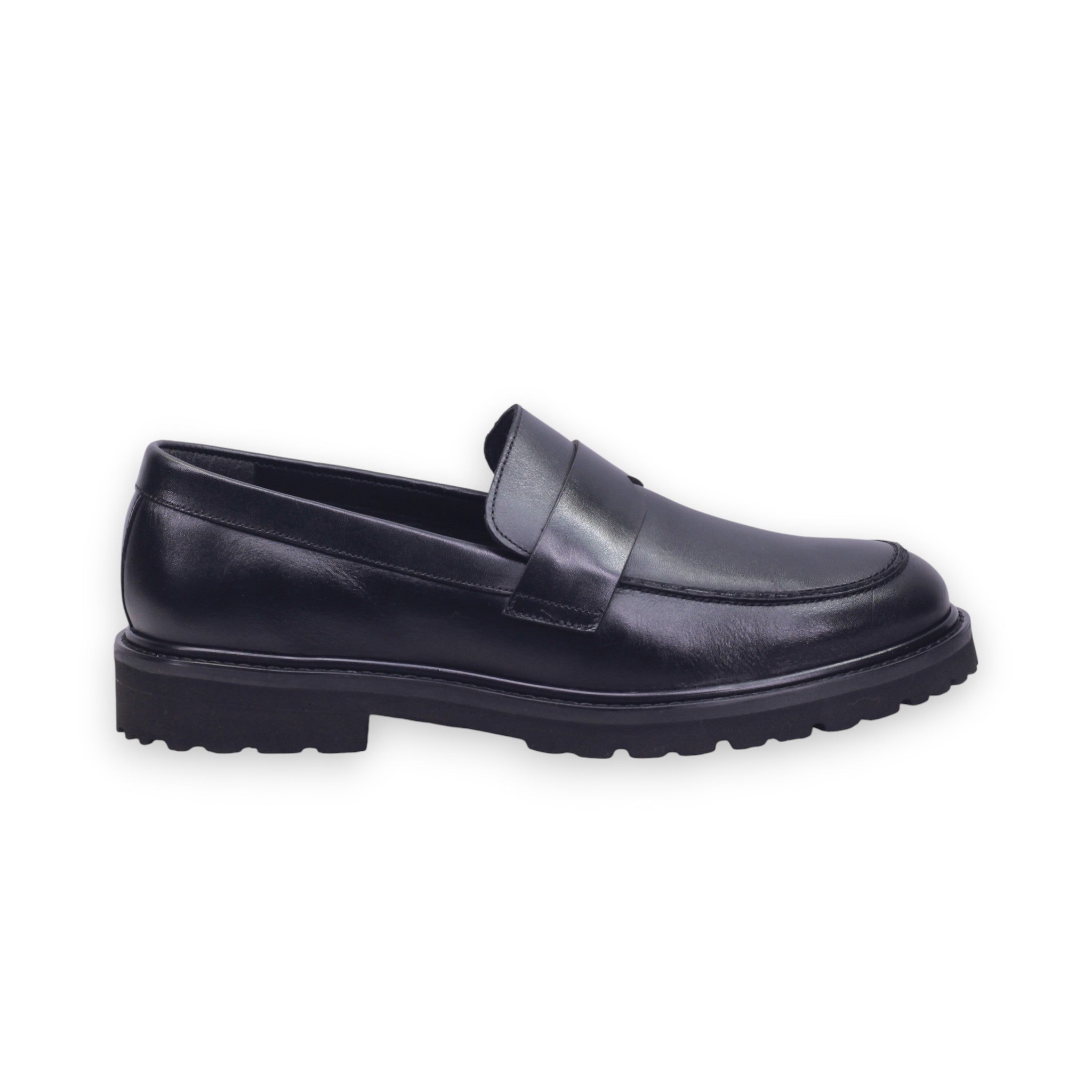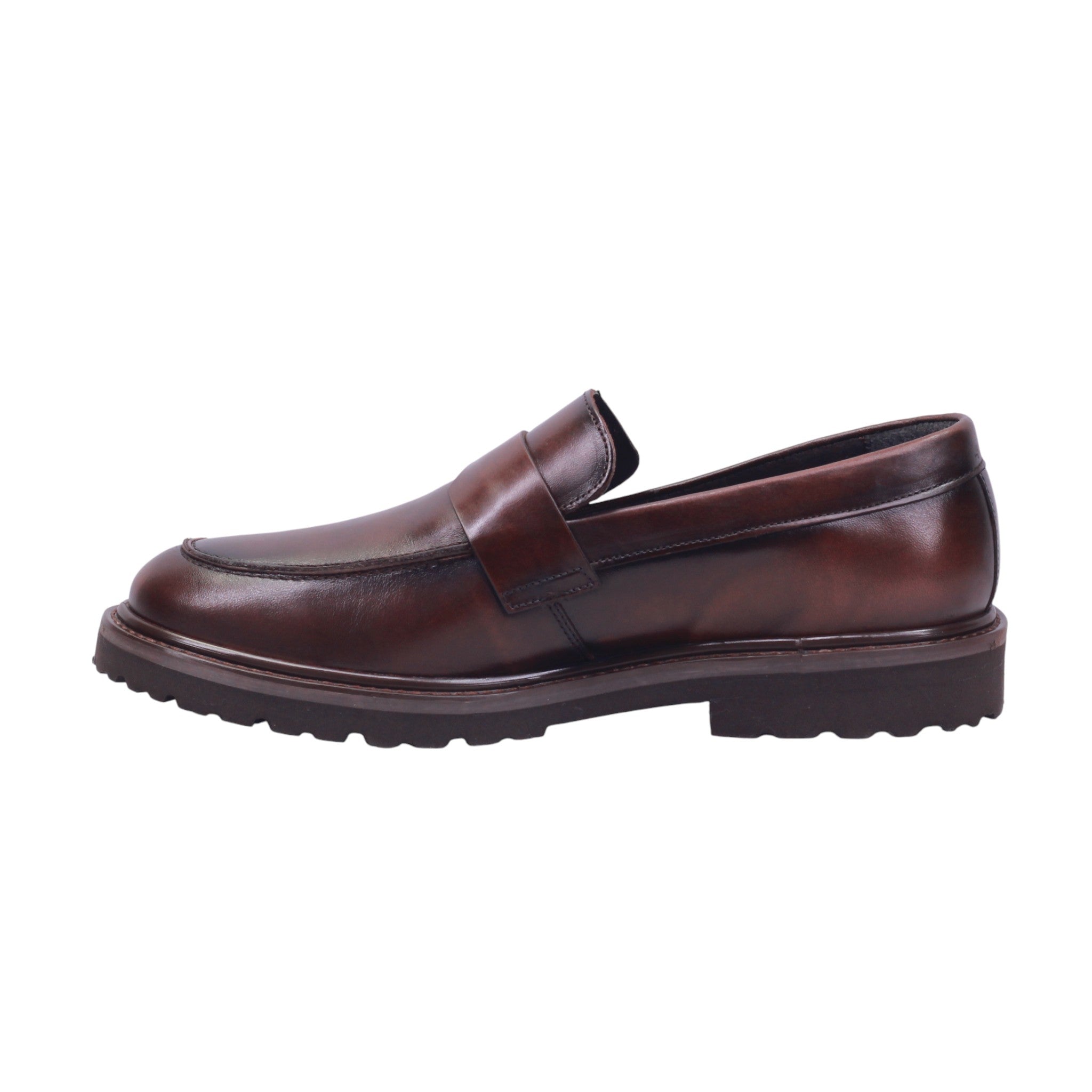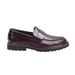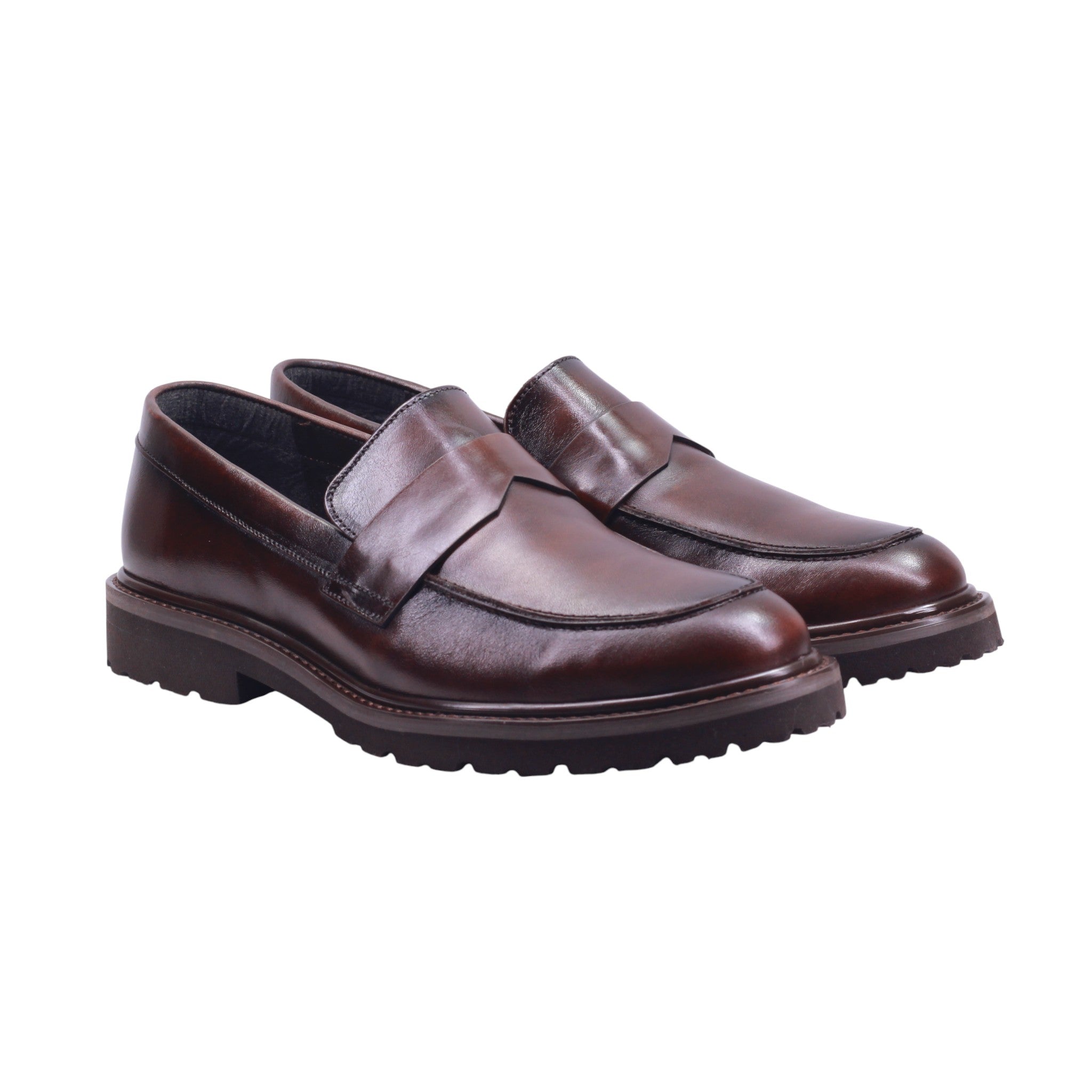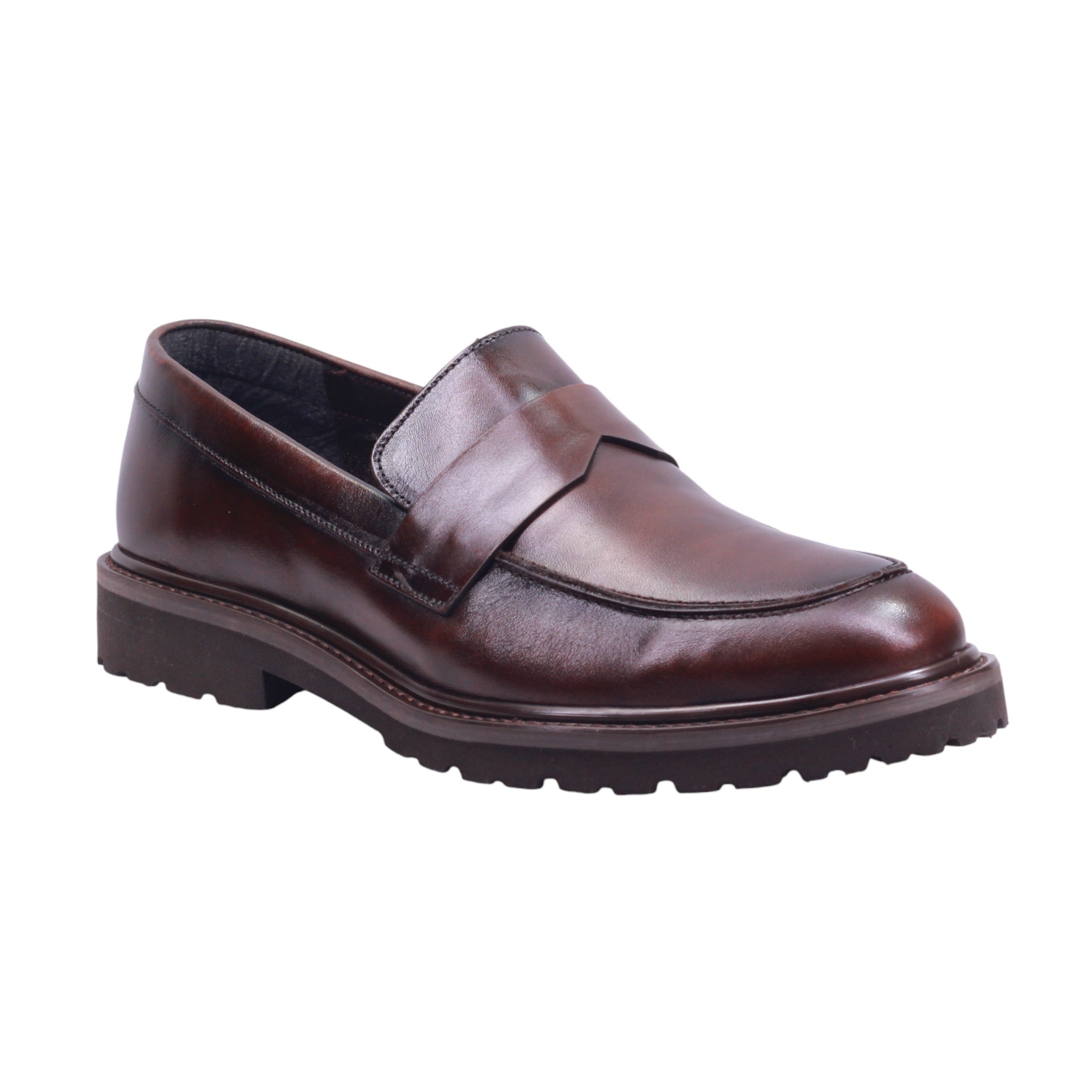Mocasín de caballero elaborado con corte de piel vacuna y forro de piel porcino, disponible en color cafe y negro. Su diseño clásico de metedera con punta redonda presenta una tira decorativa sobre el empeine tipo penny loafer, que aporta elegancia discreta.