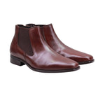 Botín de vestir para caballero marca Gino Cherruty en colores choco y negro. Este modelo de piel lisa ofrece una vista elegante y cómoda. Con su elástico lateral y tacón de 2.5 cm, brinda un ajuste perfecto y una altura ideal para caminar. Además, cuenta con una plantilla de confort que garantiza soporte y comodidad en todo momento.