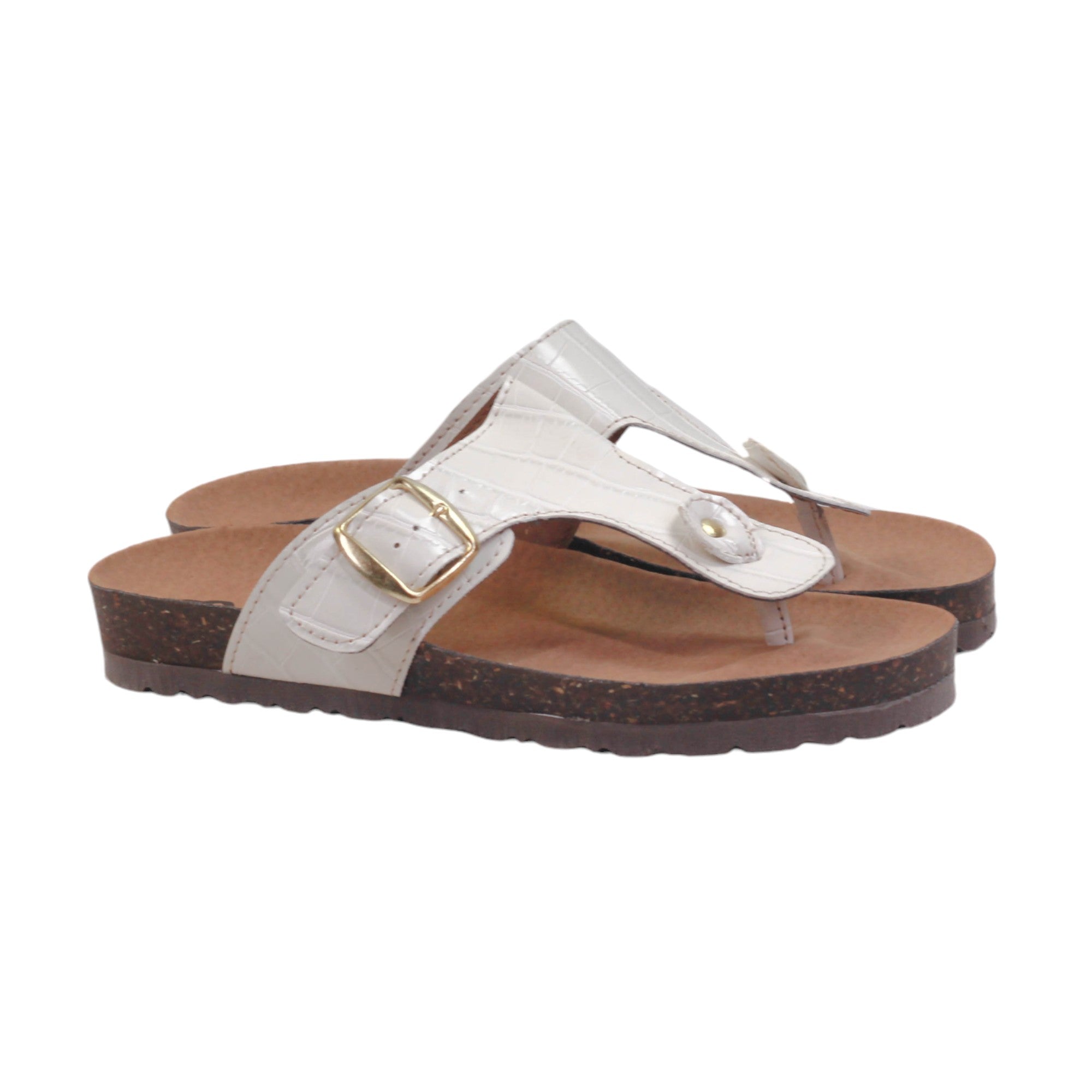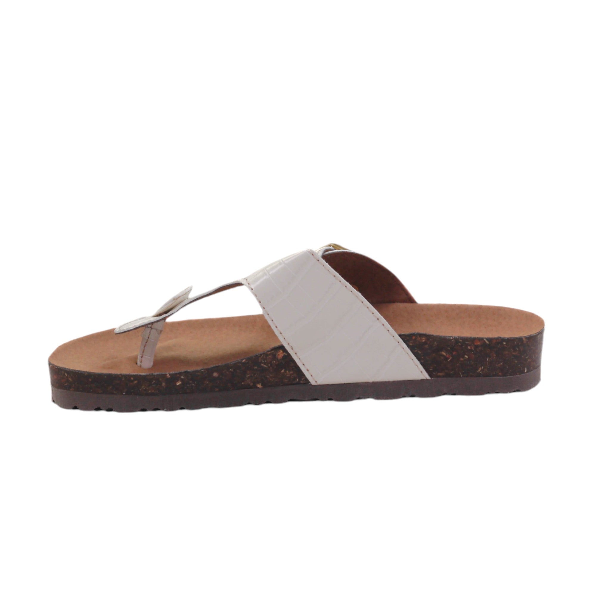 Sandalia para dama marca Nomadas en colores blanco. Modelo de plataforma tipo corcho. Es una sandalia de Confort y plantilla ergonómica que te proporciona una altura de 2,00 cm con un calce perfecto y te brindará comodidad y estilo en cada paso.