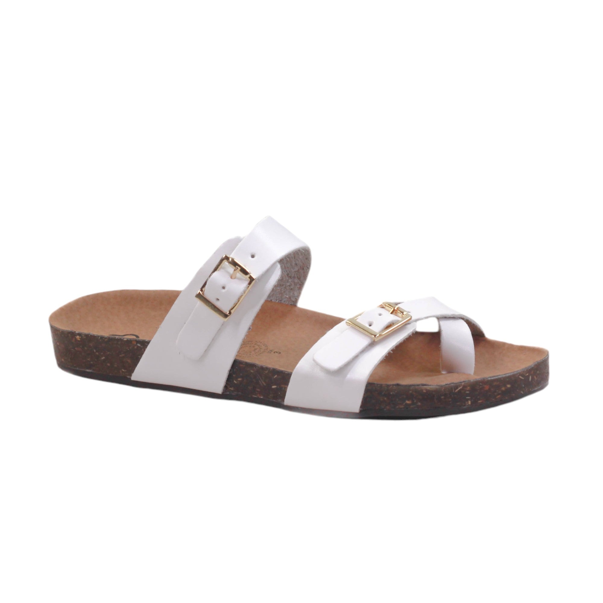 Sandalia para dama marca Nomadas en colores blanco. Modelo de plataforma tipo corcho. Es una sandalia de Confort y plantilla ergonómica que te proporciona una altura de 2,00 cm con un calce perfecto y te brindará comodidad y estilo en cada paso.