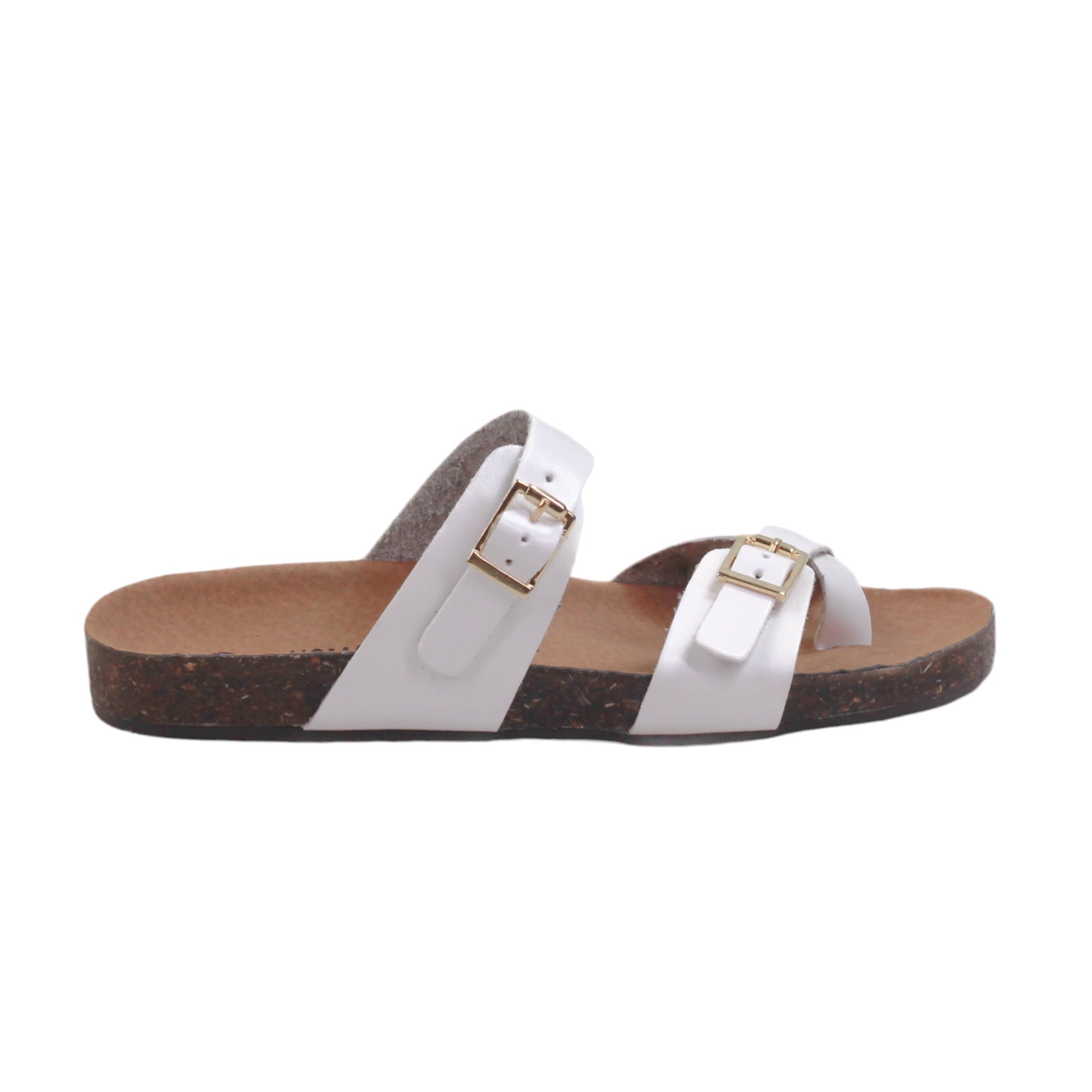 Sandalia para dama con doble tira de ajuste con hebilla