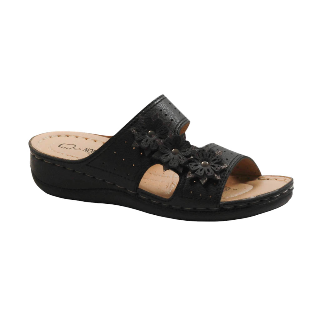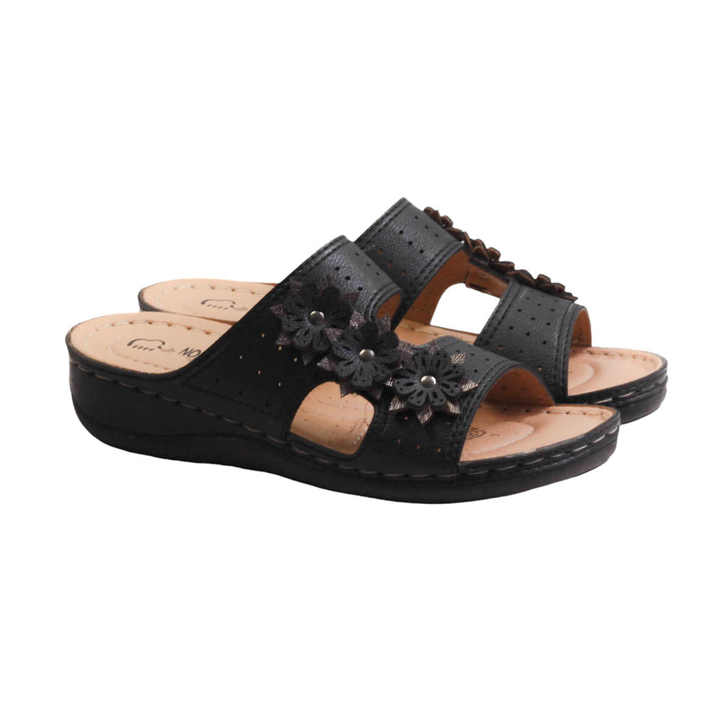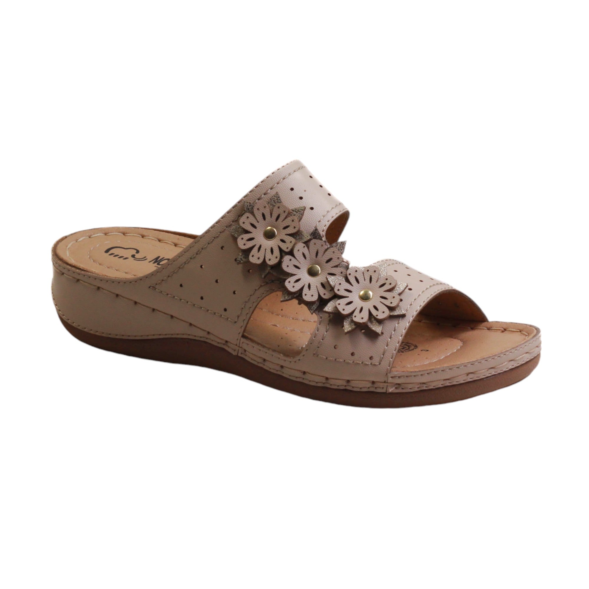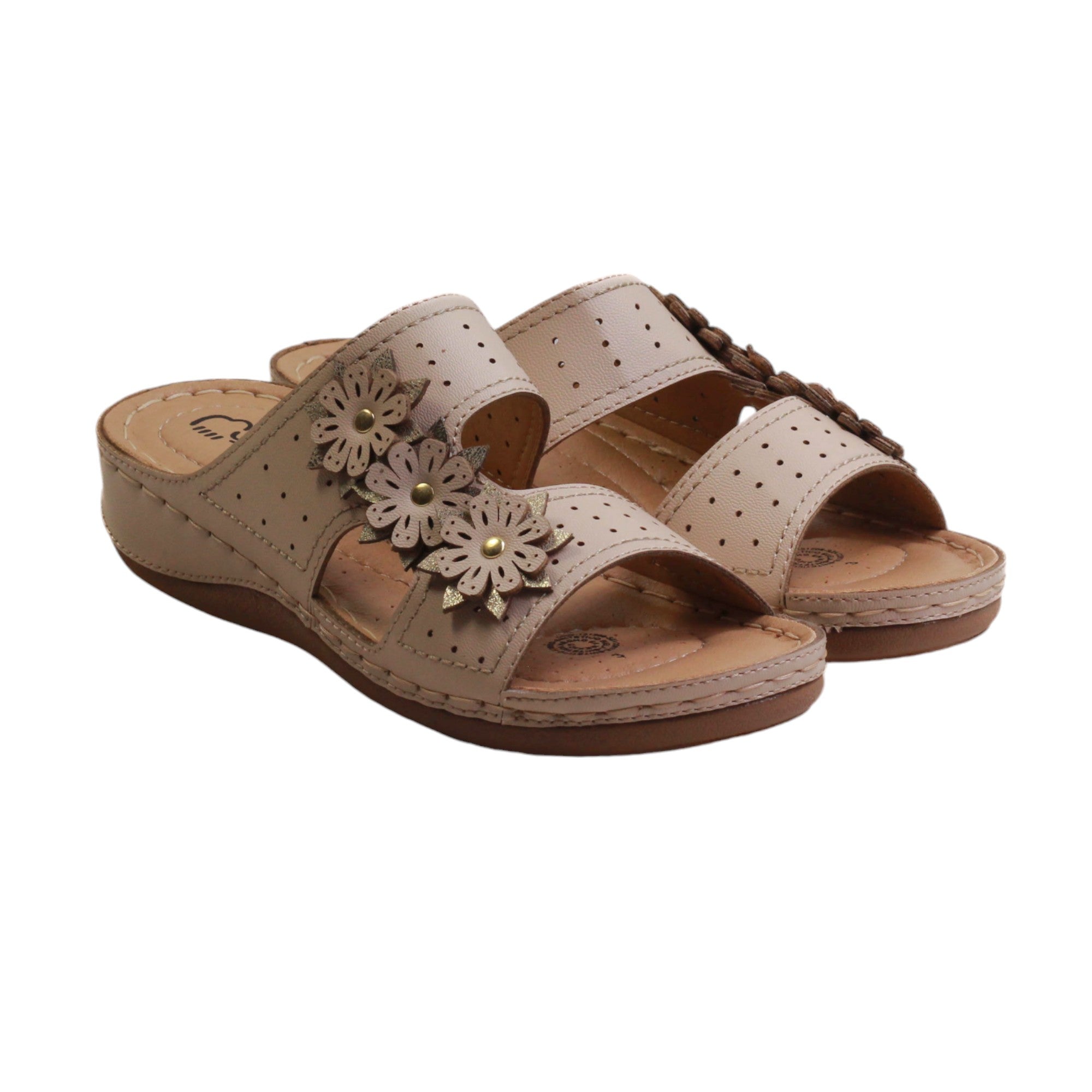 Sandalia para dama con plantilla acojinada y flores laterales de adorno