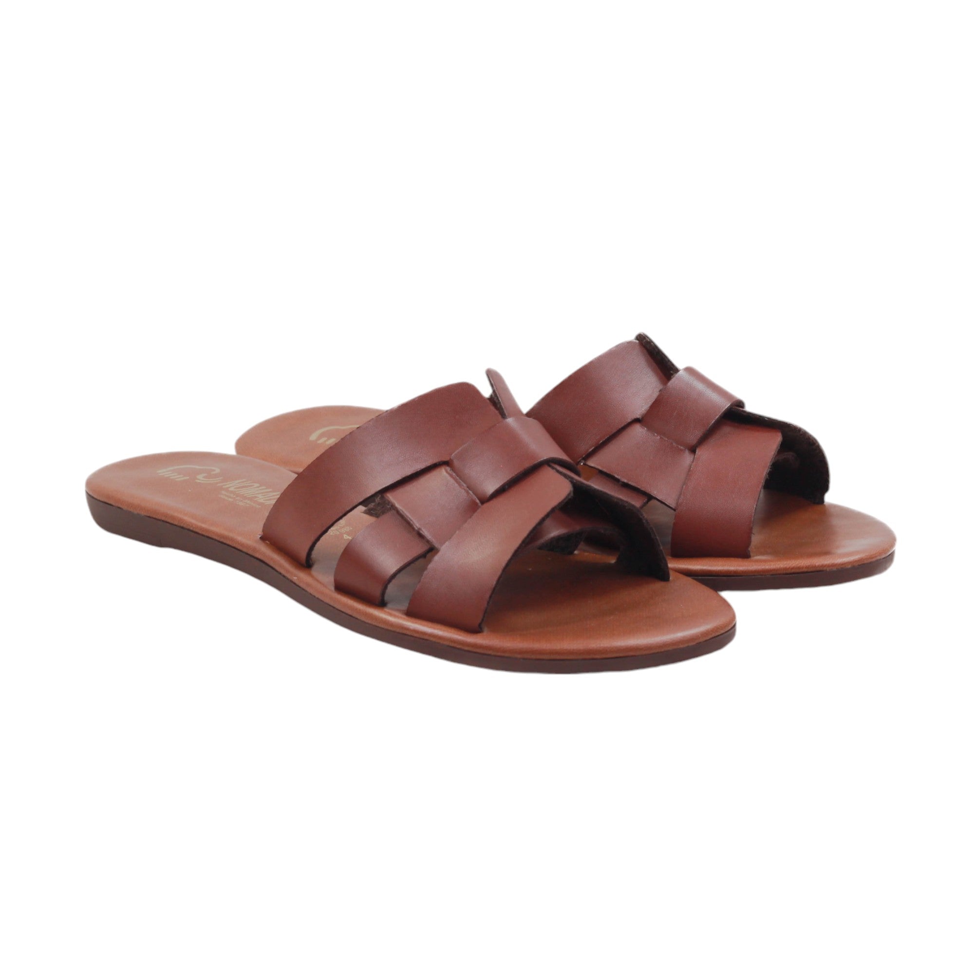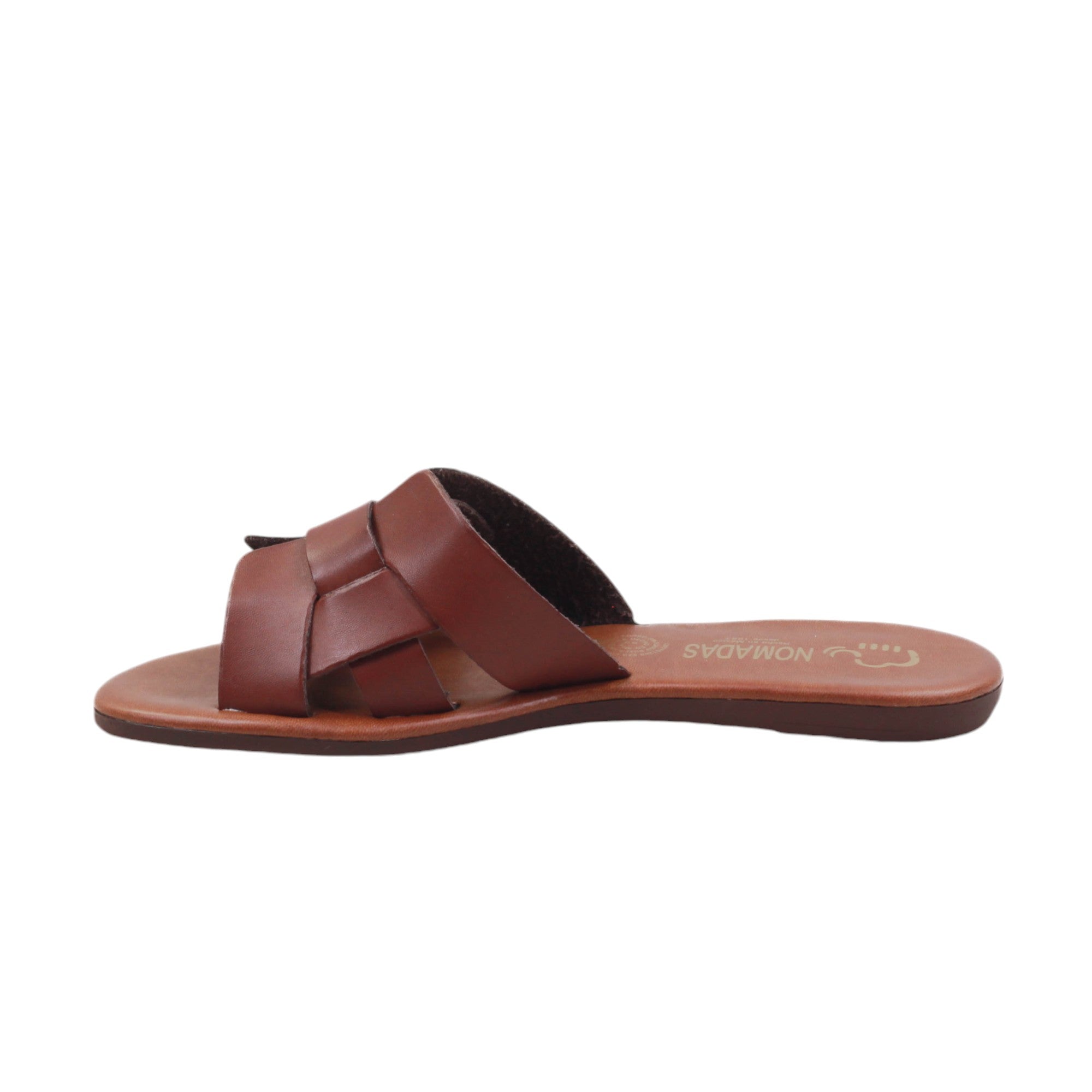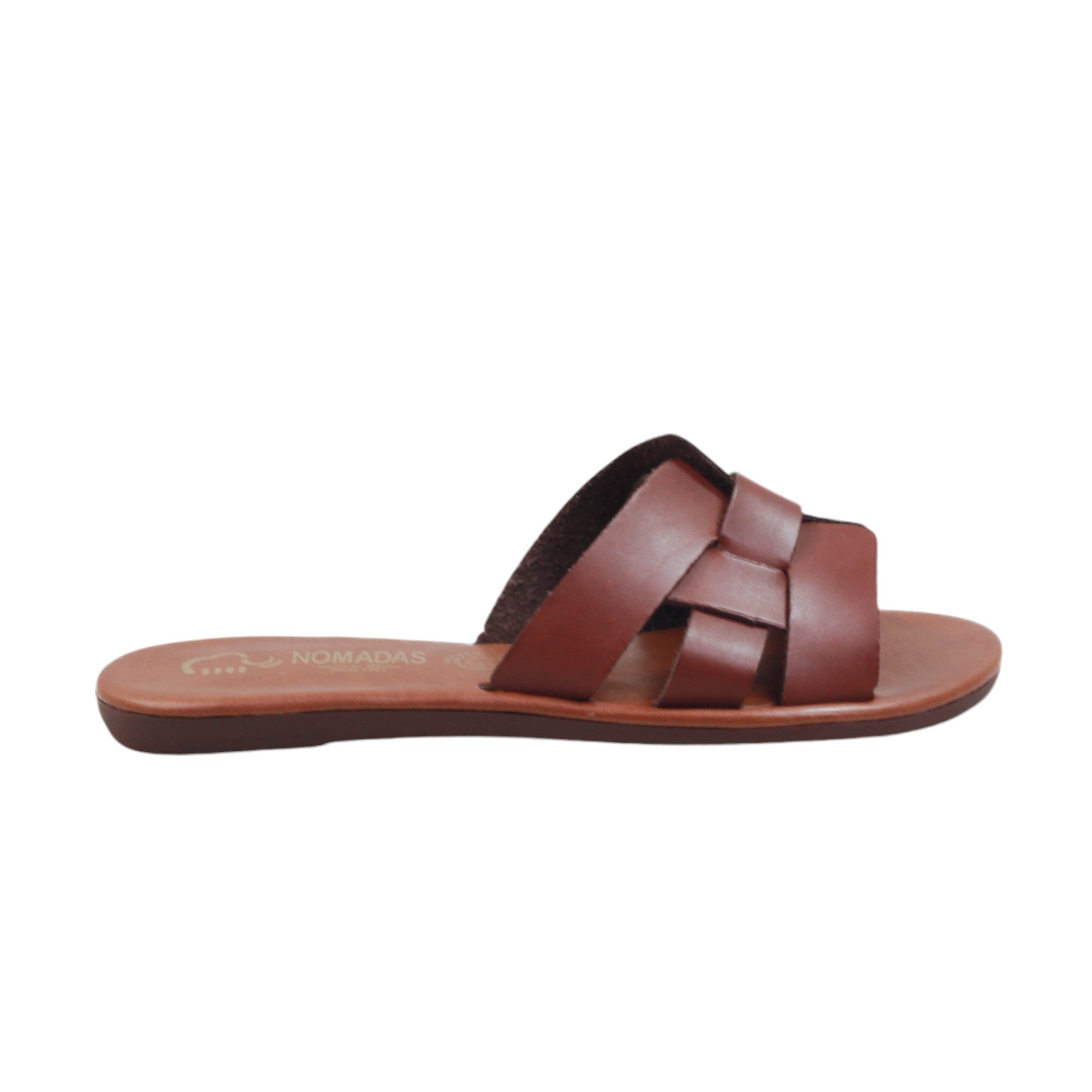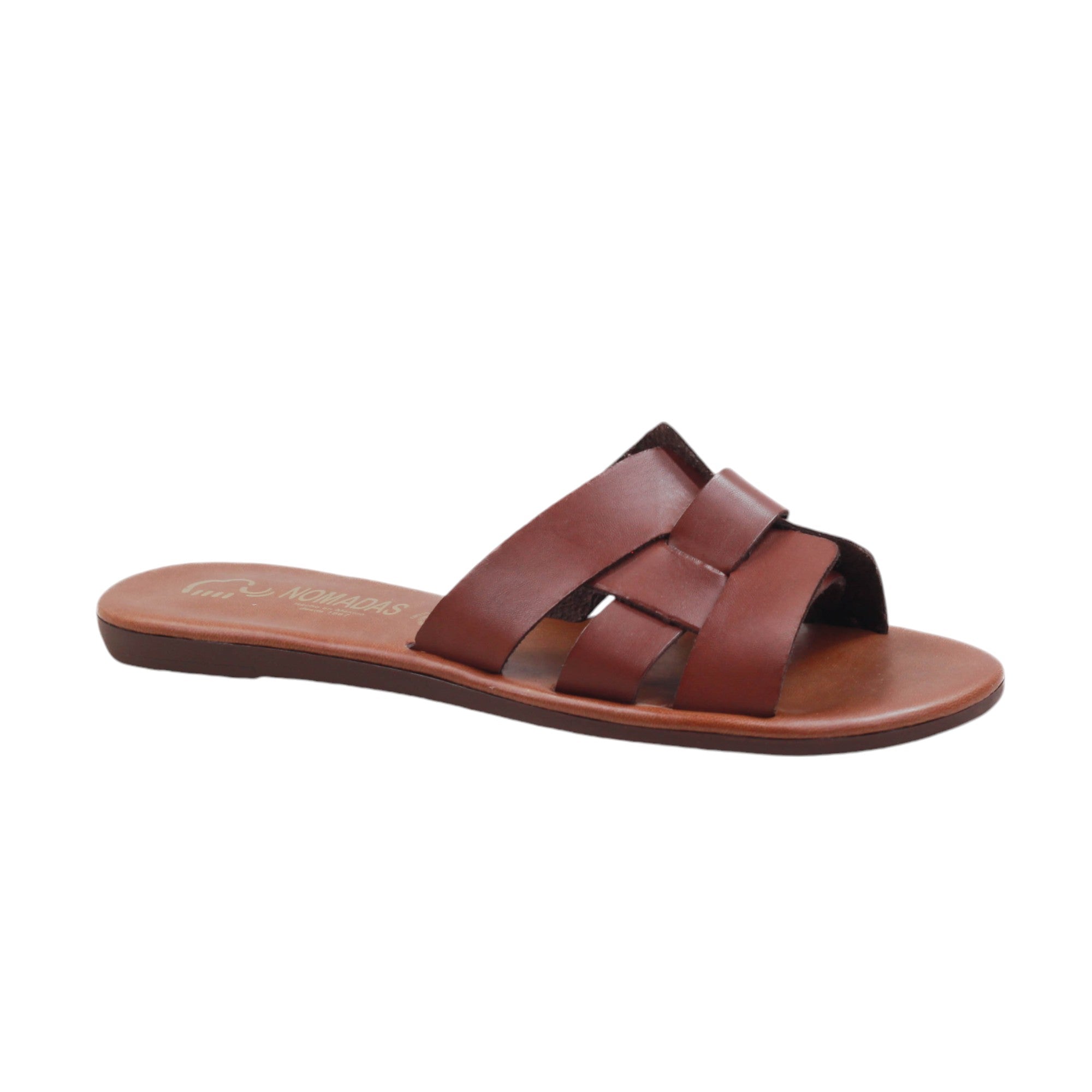 Sandalia para dama marca Nomadas en color tan. Diseño de doble corte unidos con una tira entre lazada para un aspecto atractivo. Su ligera plataforma permitirá que esté cómoda a cada paso.