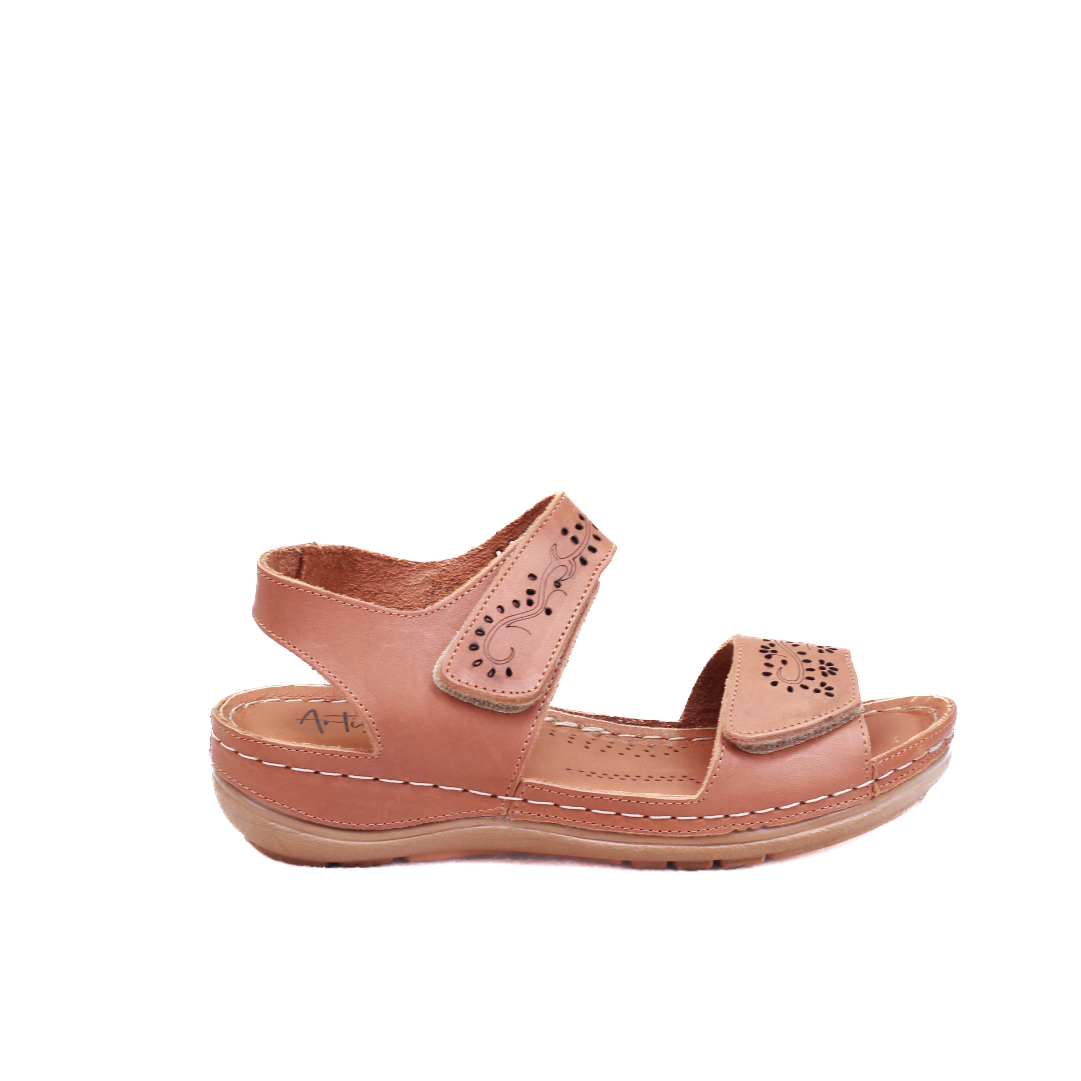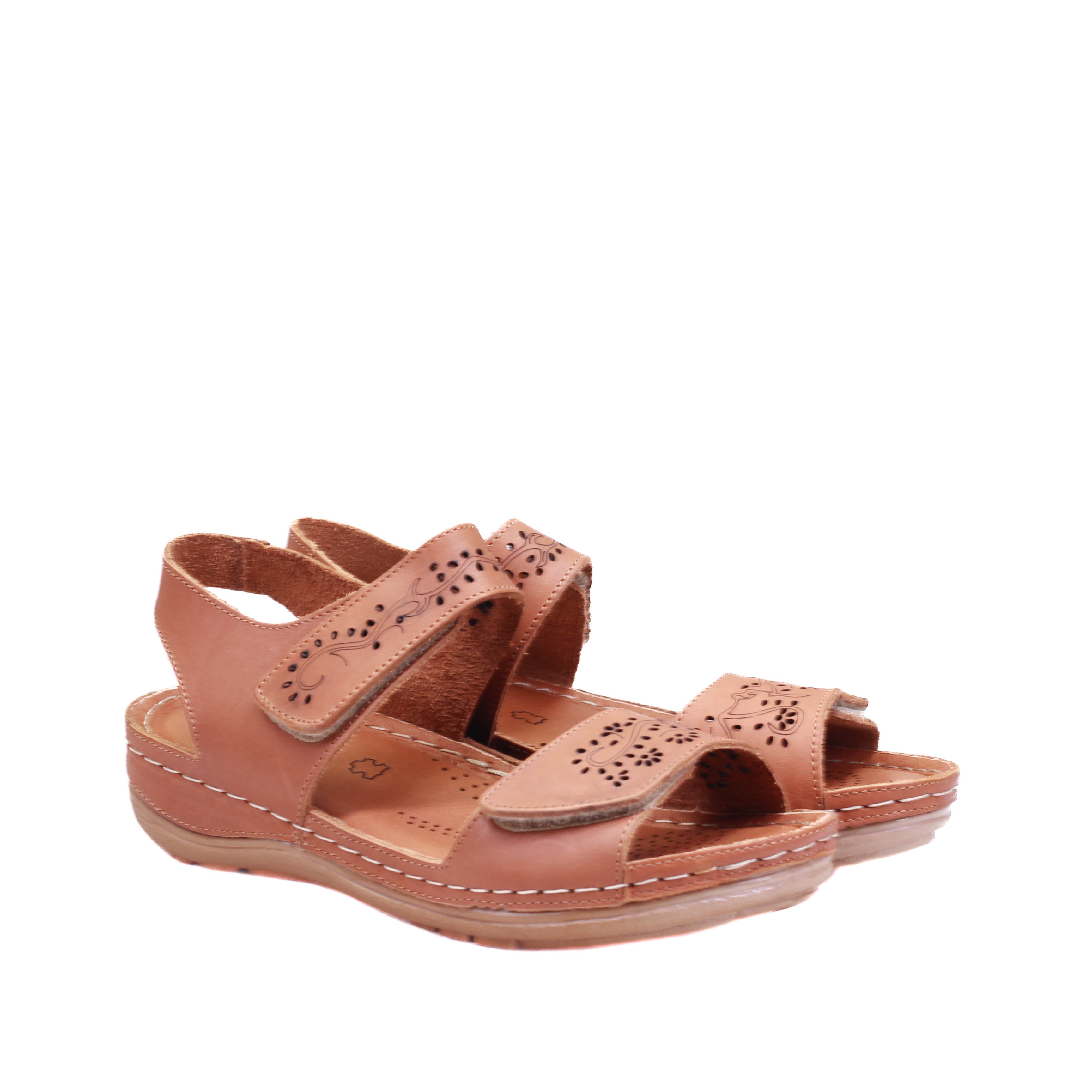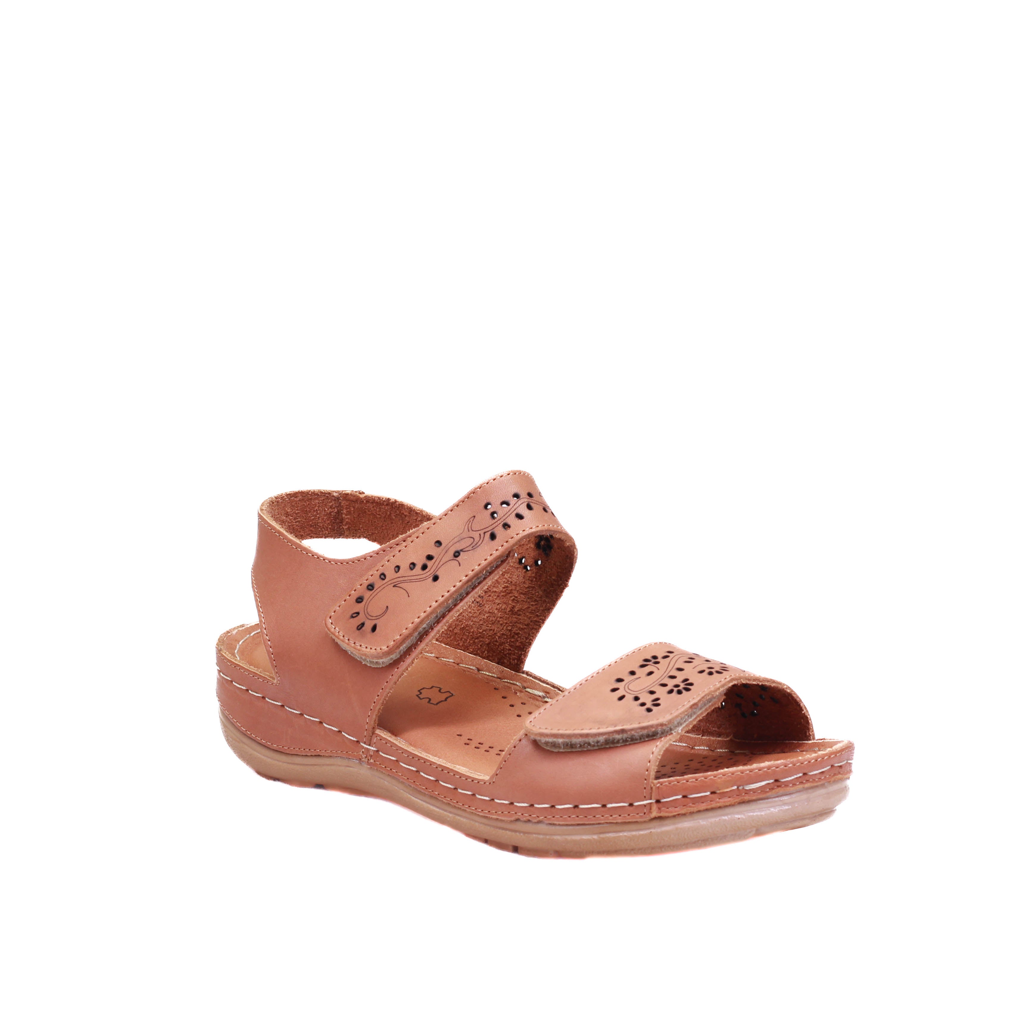Sandalia para dama con tiras de ajuste con velcro y perforaciones en el corte