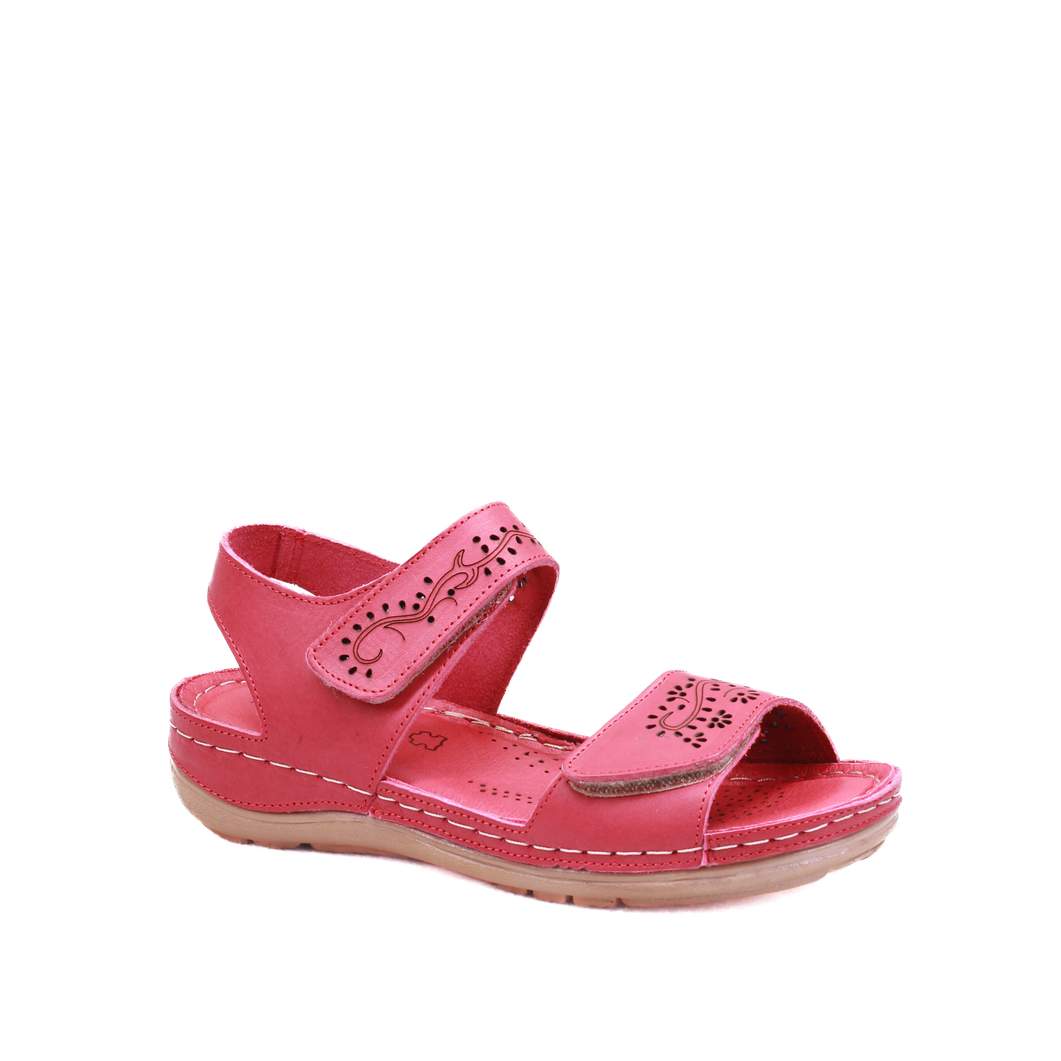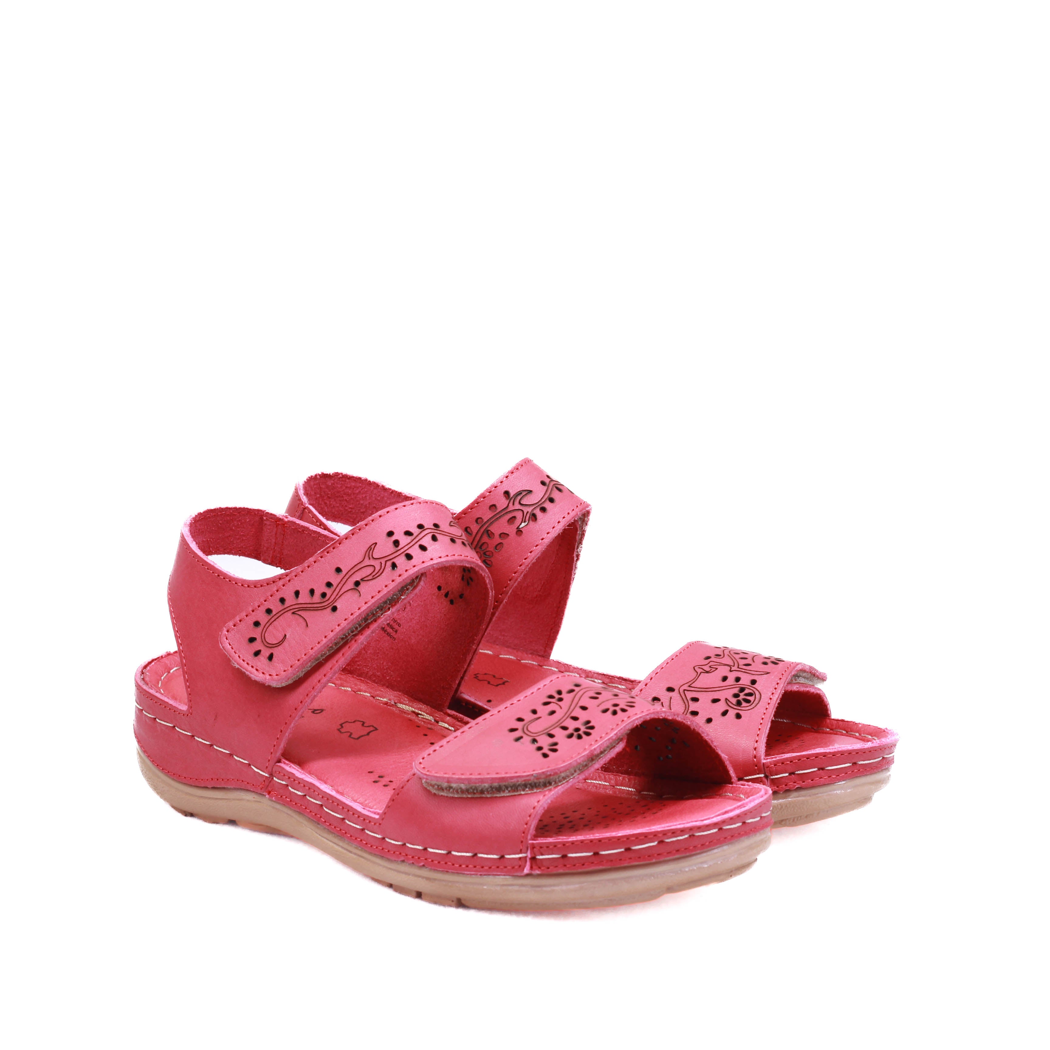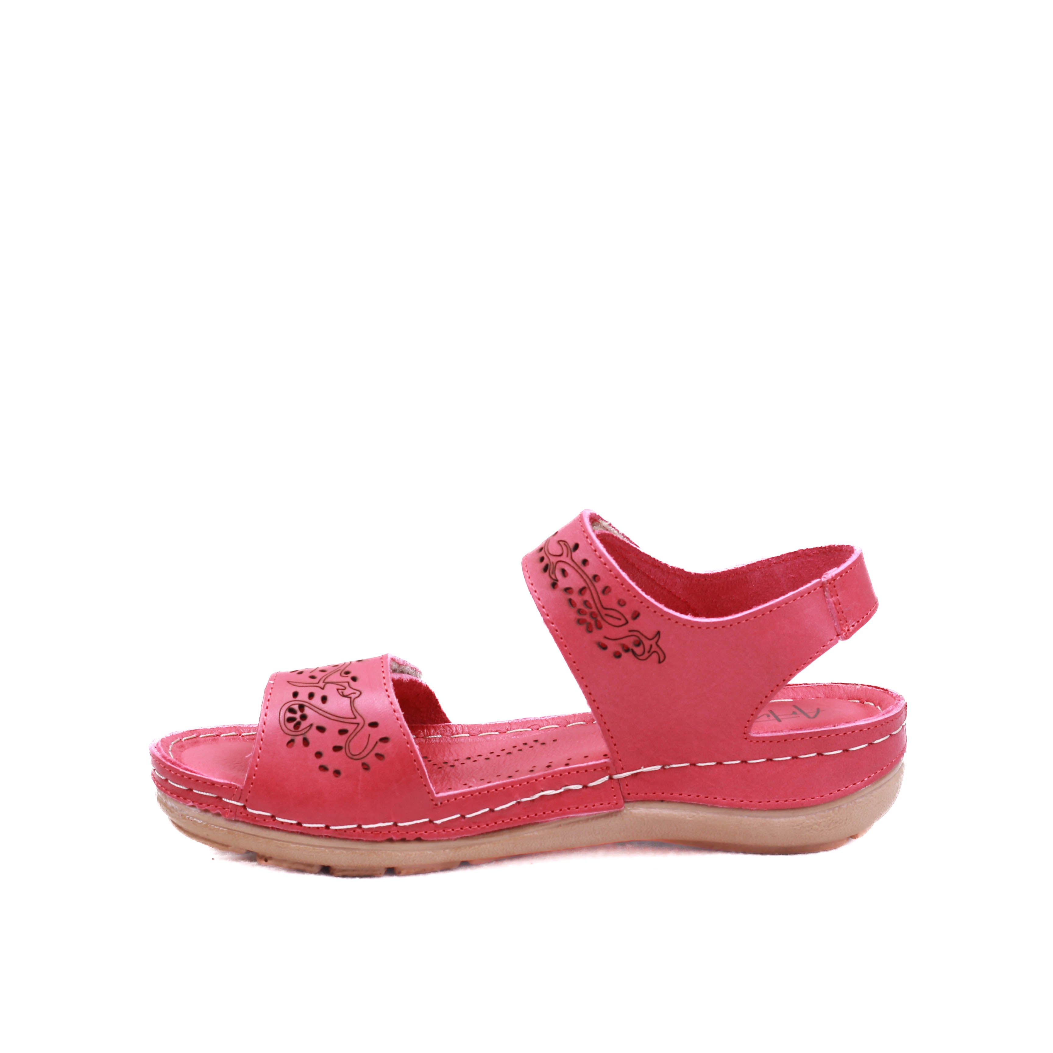 Sandalia para dama marca Tmy en colores camel y rojo. Cuenta con tiras con perforaciones y ajuste con velcro, corte con perforaciones y plantilla de confort. Este tipo de sandalia es especial y refleja mucha originalidad, su plataforma de 4.00 cm de altura te da un confort y suavidad paso a paso.
