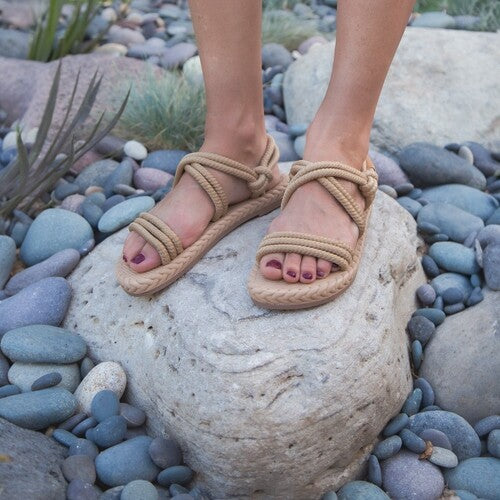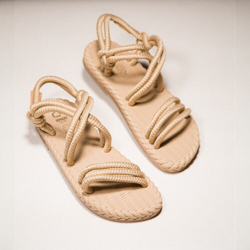Sandalia para dama marca Nómadas en color Negro, beige. Es un modelo con tiras delgadas de tipo tejido y suela ergonómica de super confort. Este modelo destaca por la suavidad que te dará paso a paso.