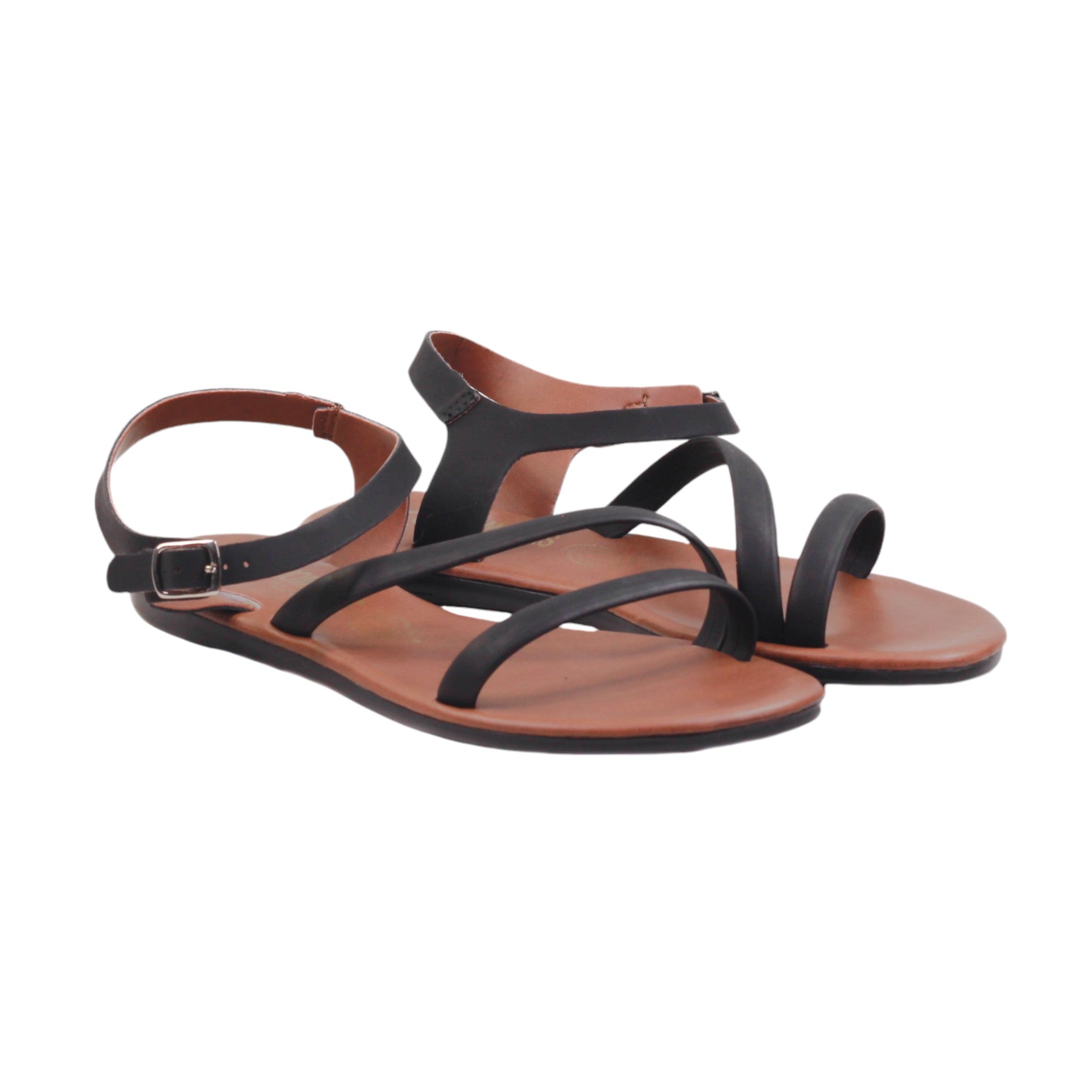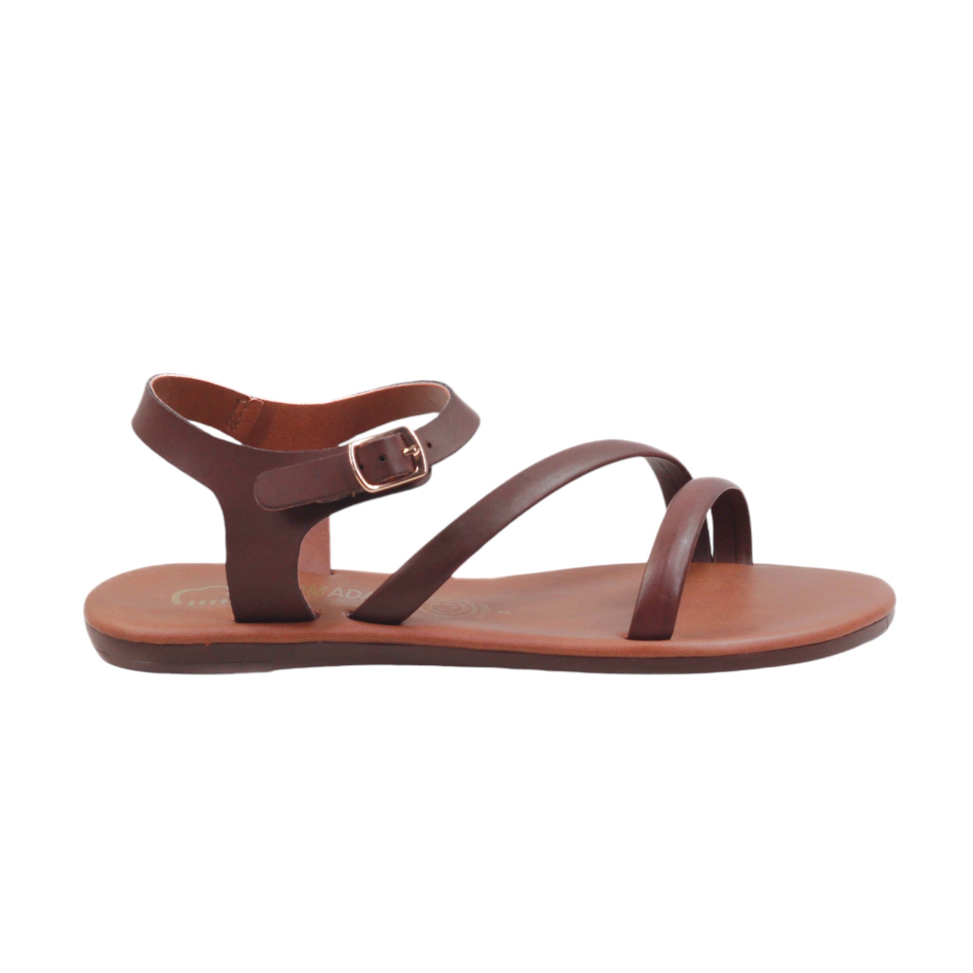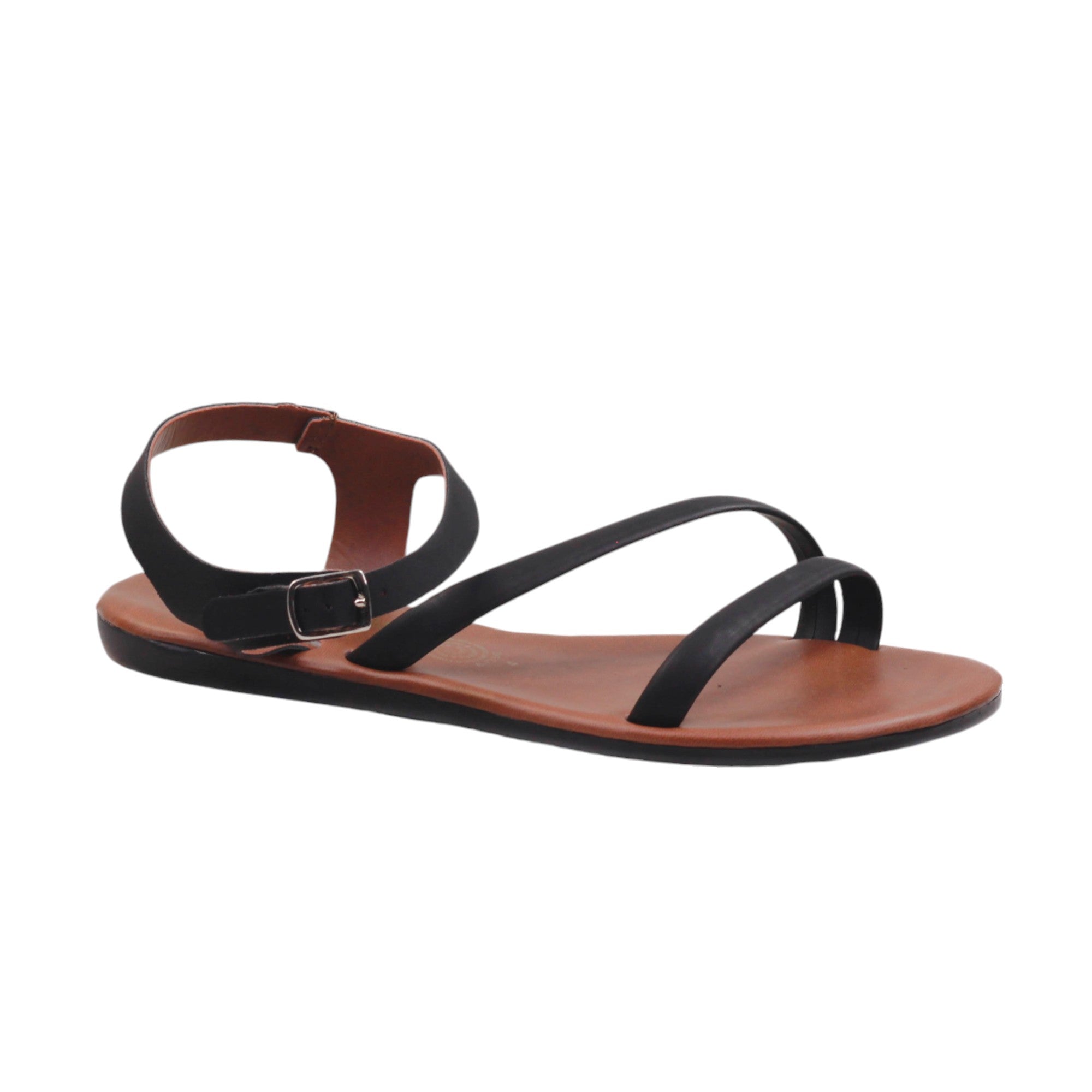 Sandalia para dama marca Nomadas en colores cogñac y negro. Es un modelo con doble tira delgada, plantilla de confort. Este modelo destaca por la suavidad que te dará paso a paso.